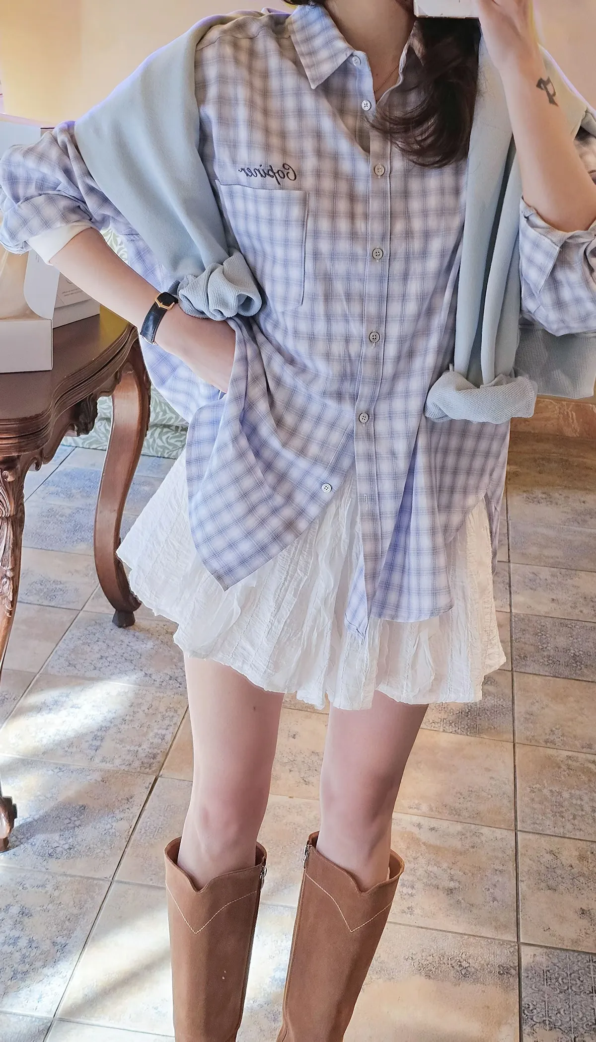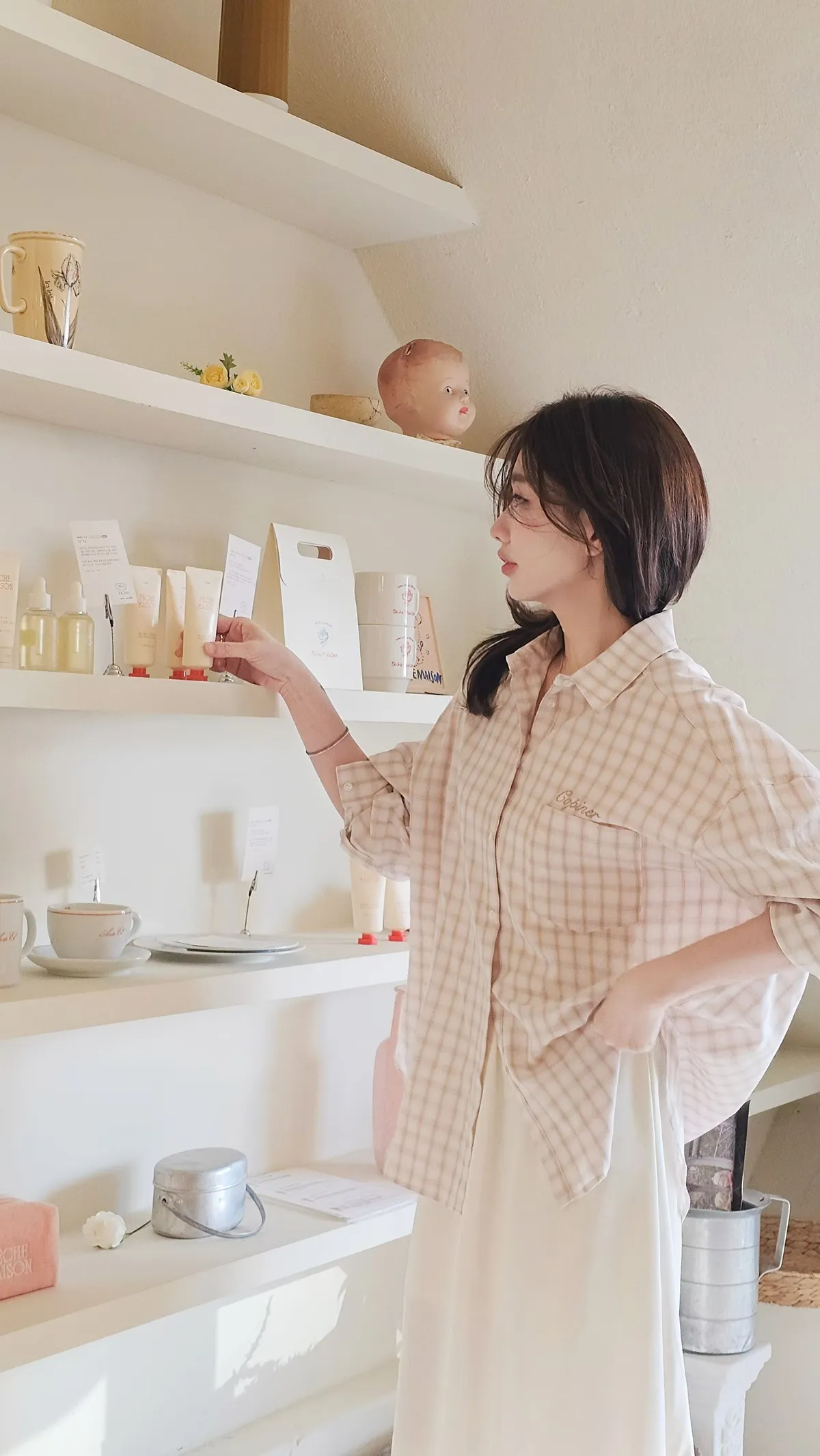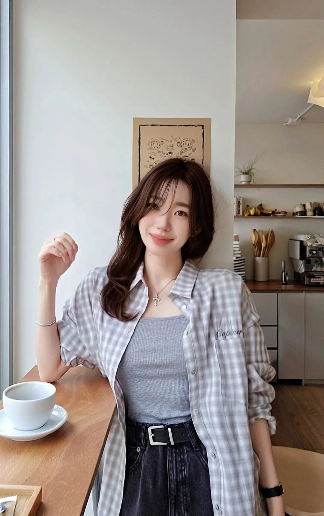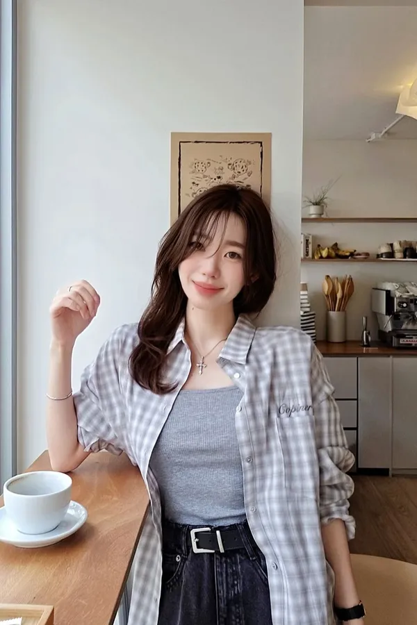 C200漂亮歐膩韓里韓氣的格紋襯衫