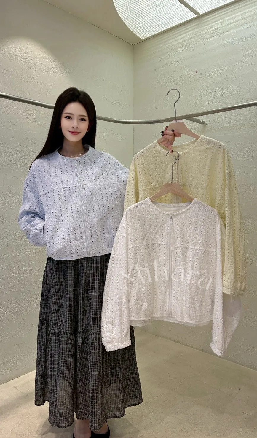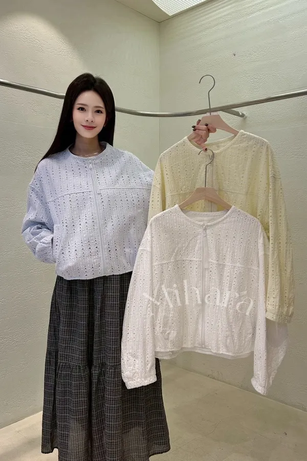 A23 0301高檔W外套家簍空布蕾絲圓領外套3色