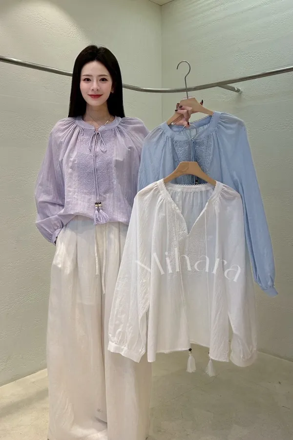 A24 0301高檔W外套家拼接蕾絲抓褶圓領上衣3色