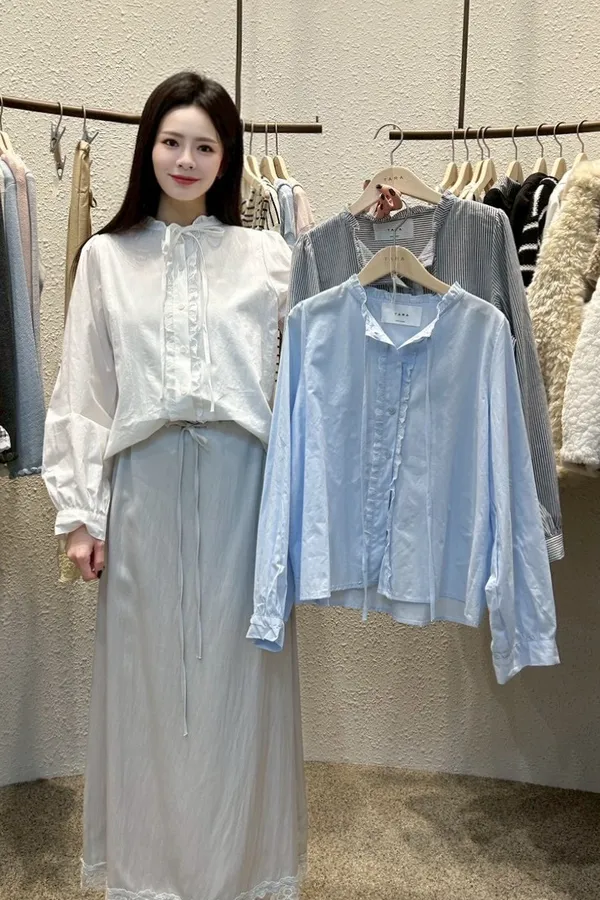 A32 0301CP新廠家拼接布蕾絲綁帶上衣3色