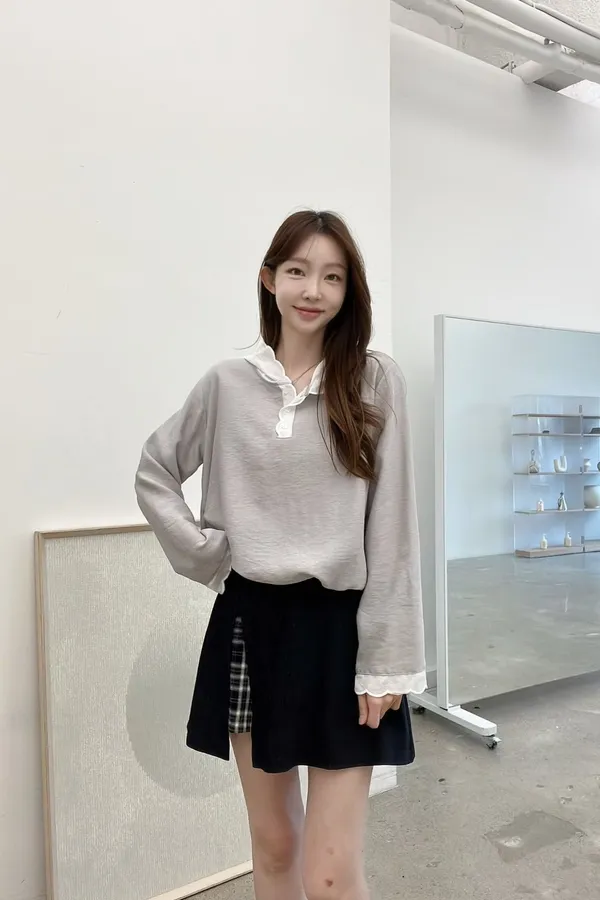 C113仙女歐膩小花釦波浪帽上衣