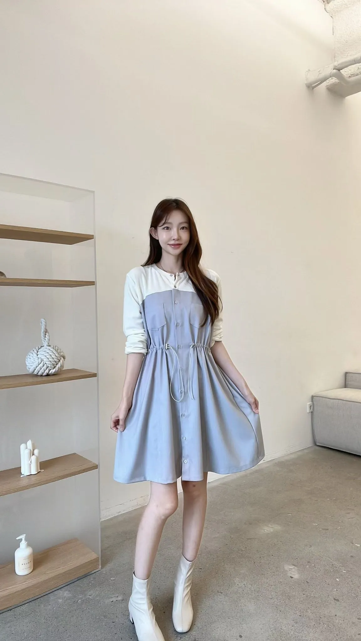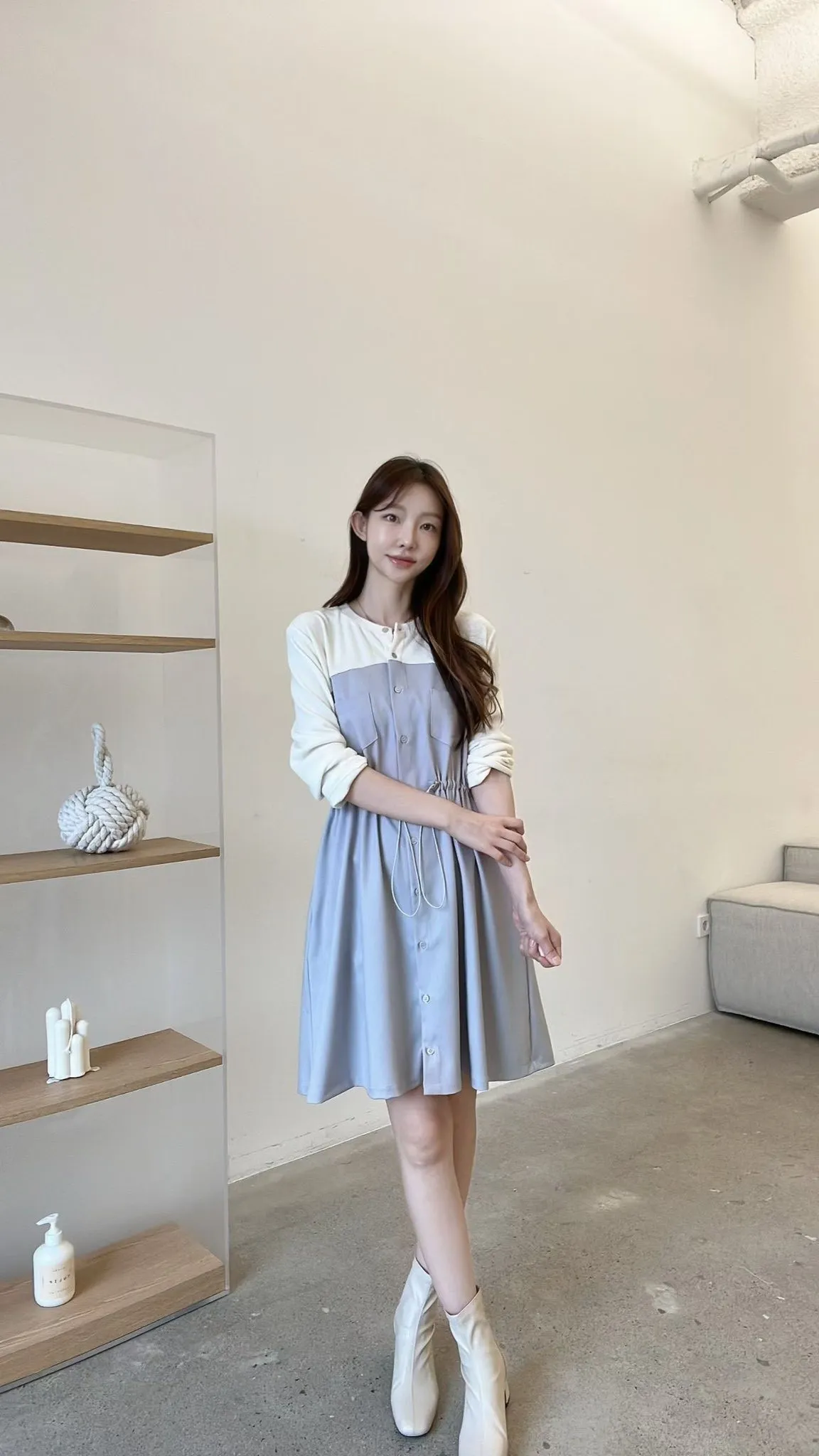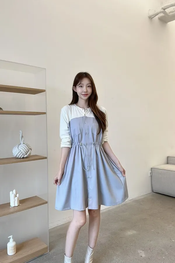 C127仙女歐膩拼接收腰洋裝