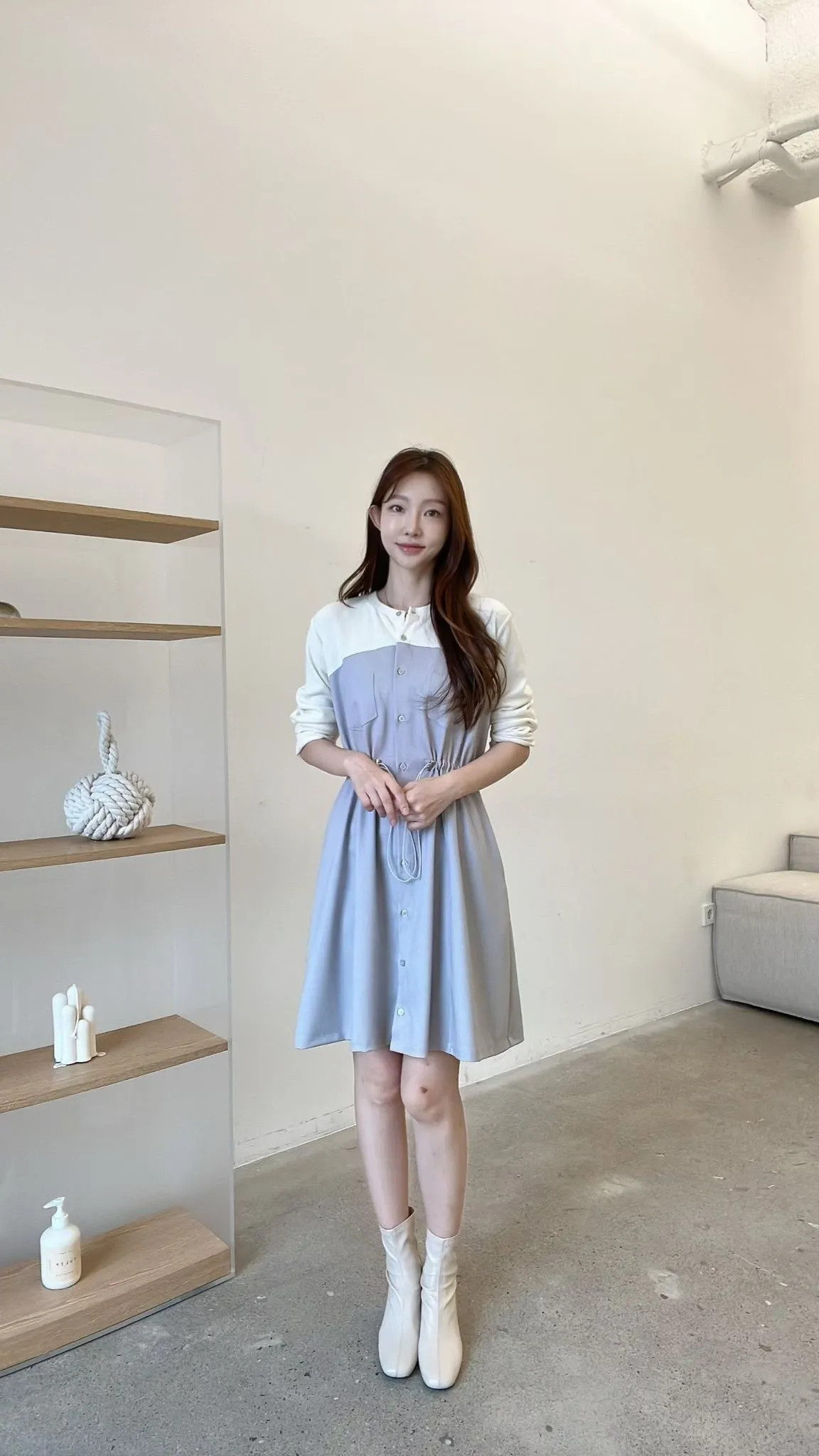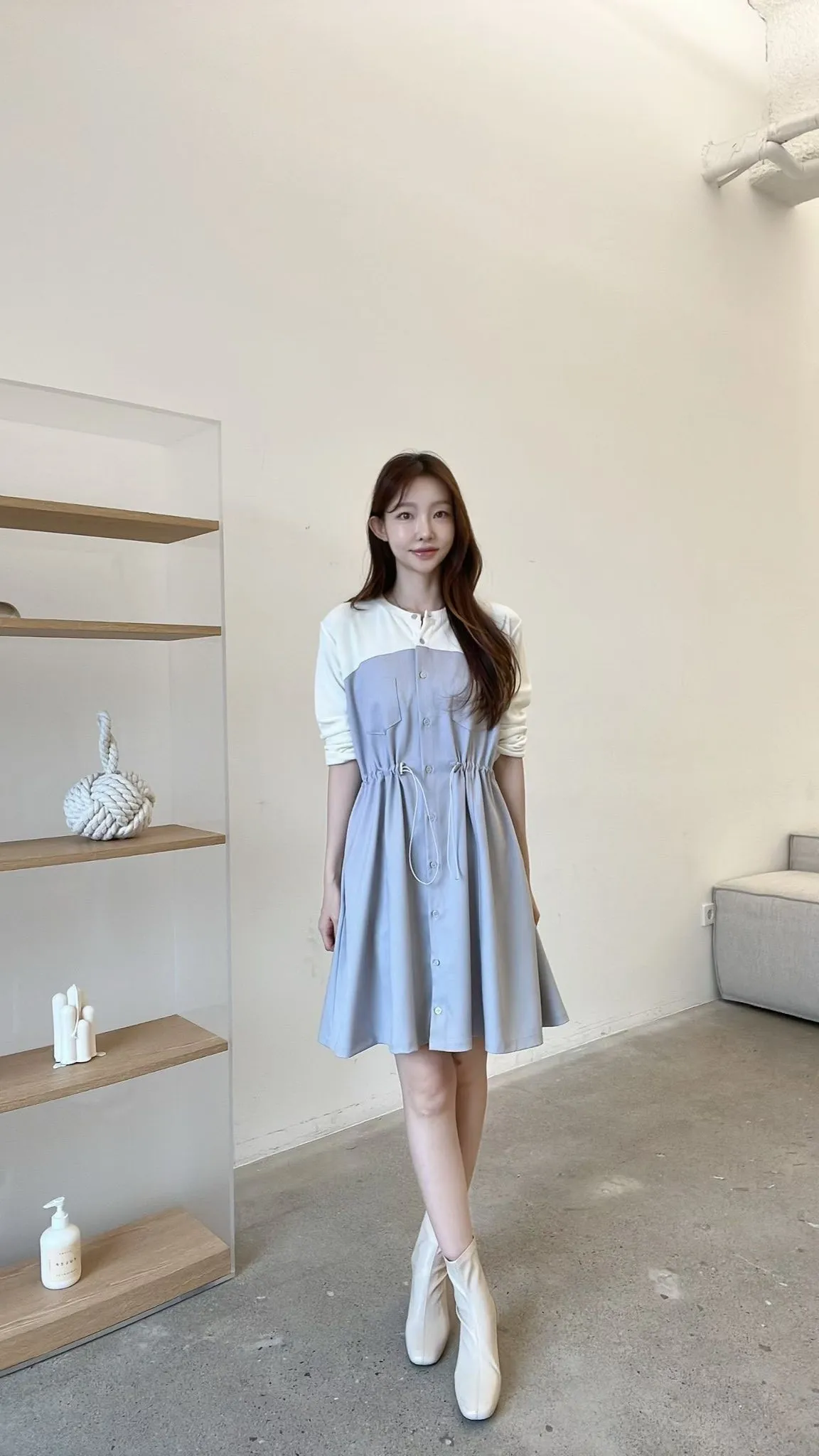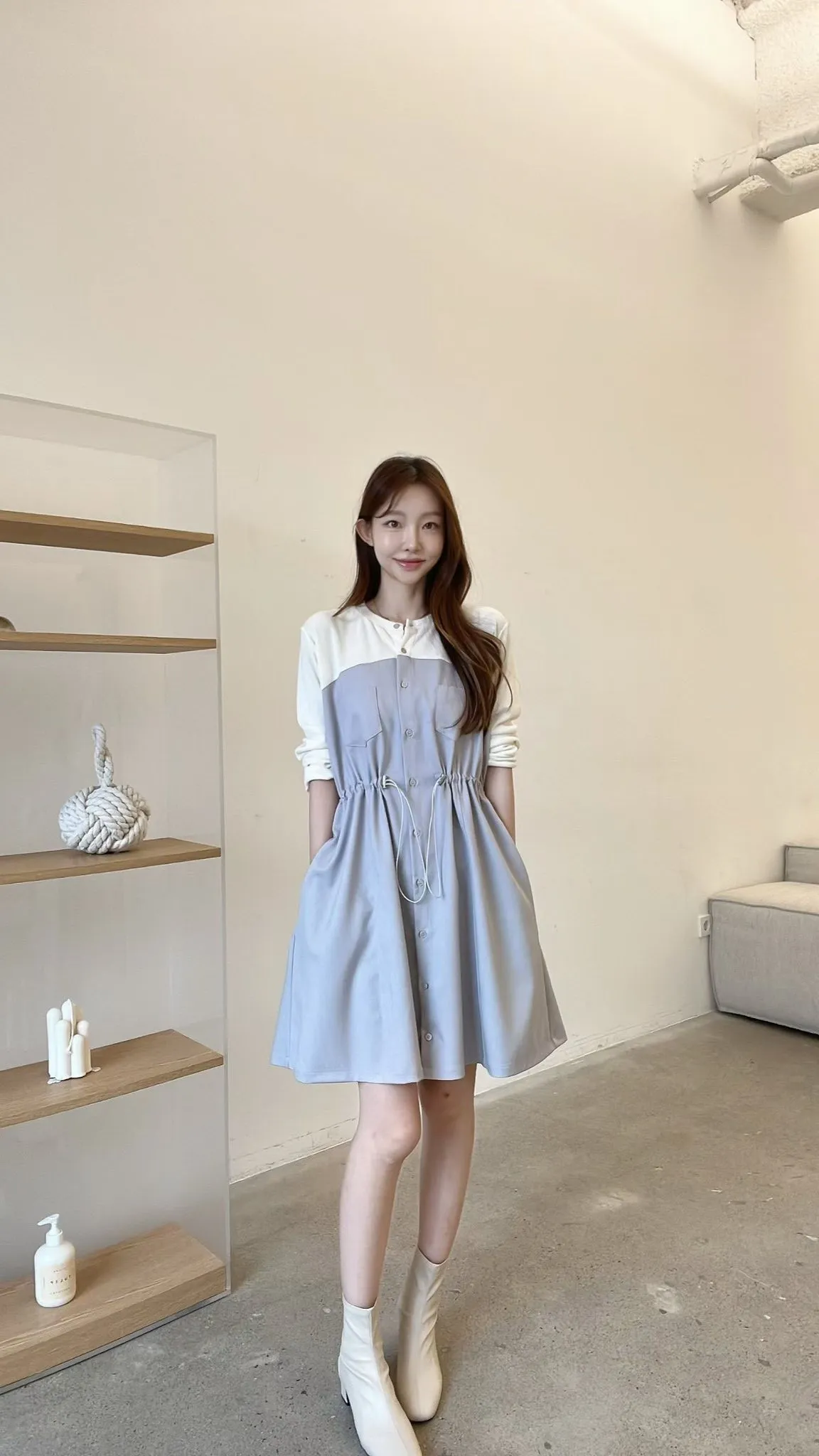 C127仙女歐膩拼接收腰洋裝