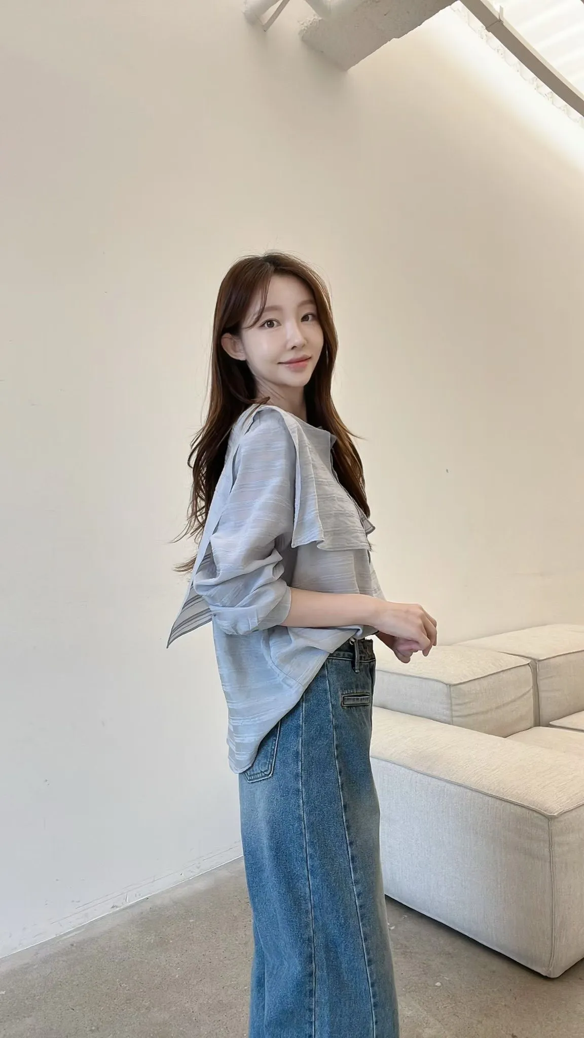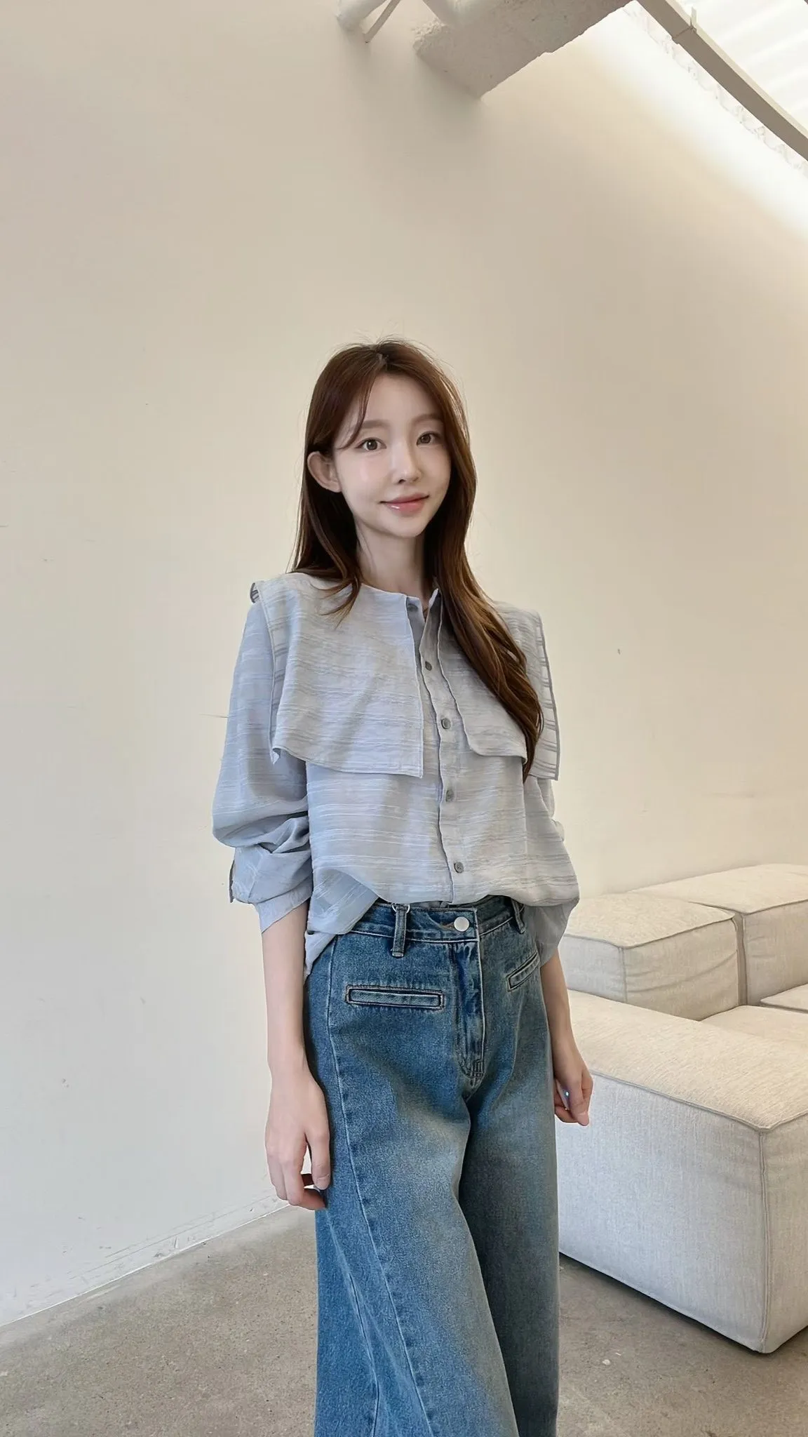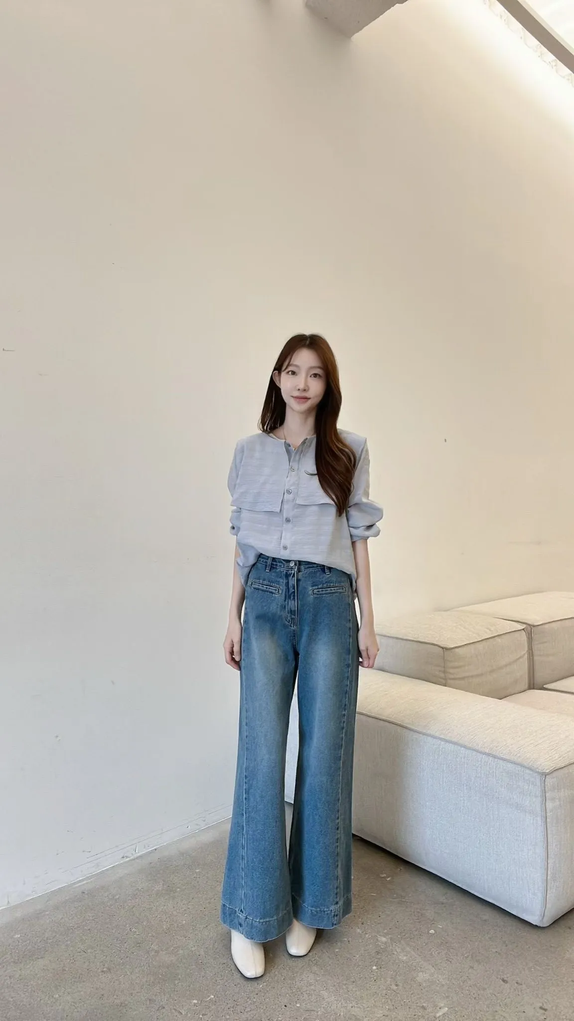 C125仙女歐膩斜切長腿牛仔喇叭褲
