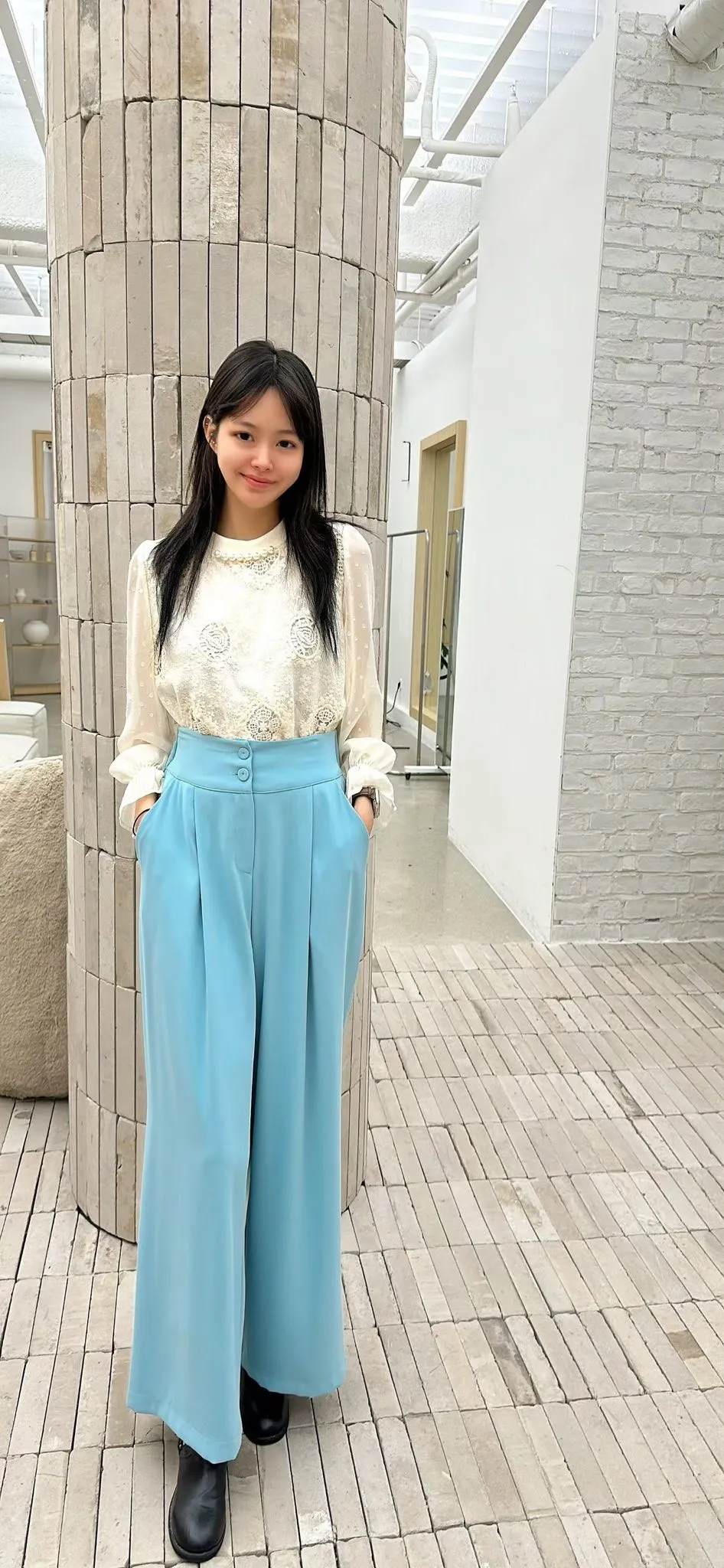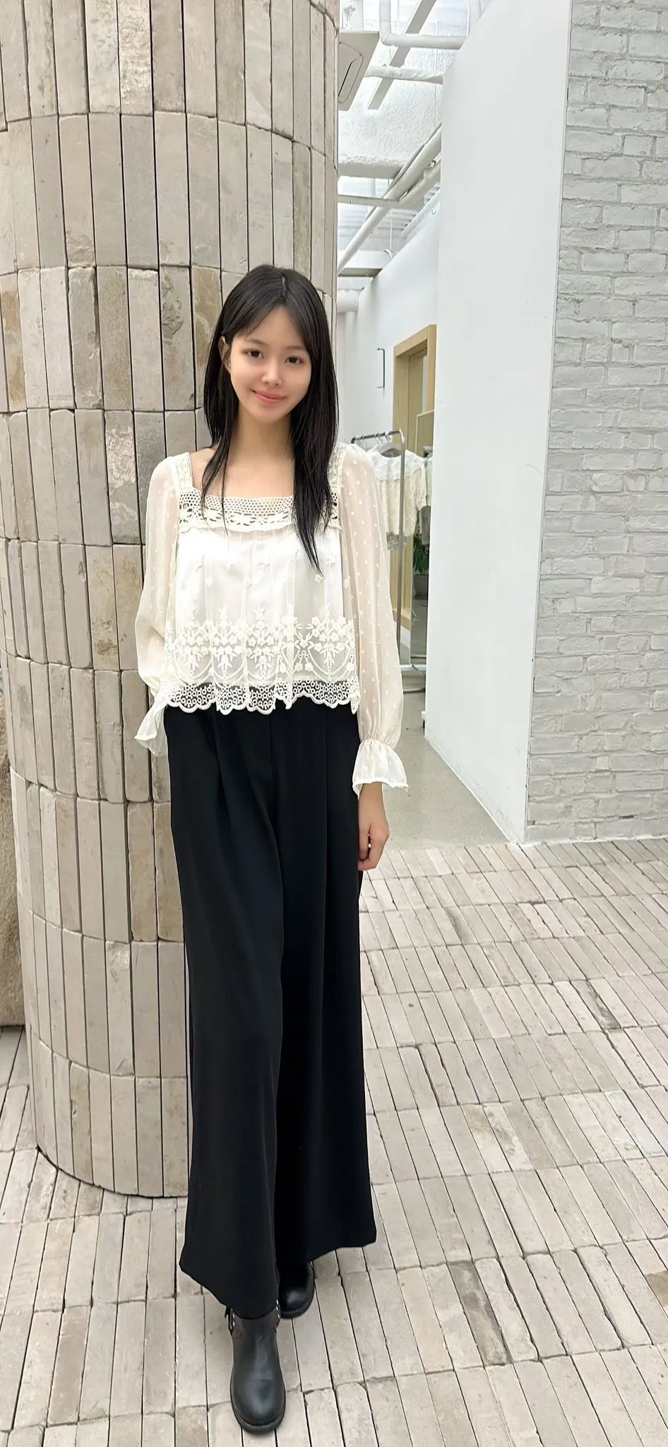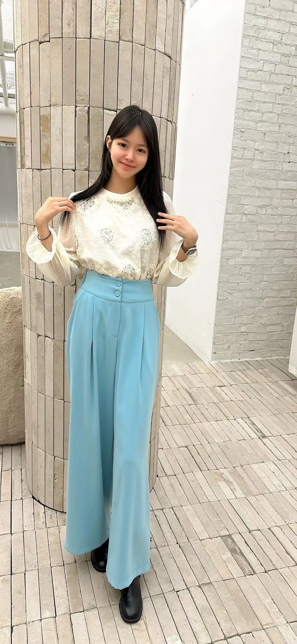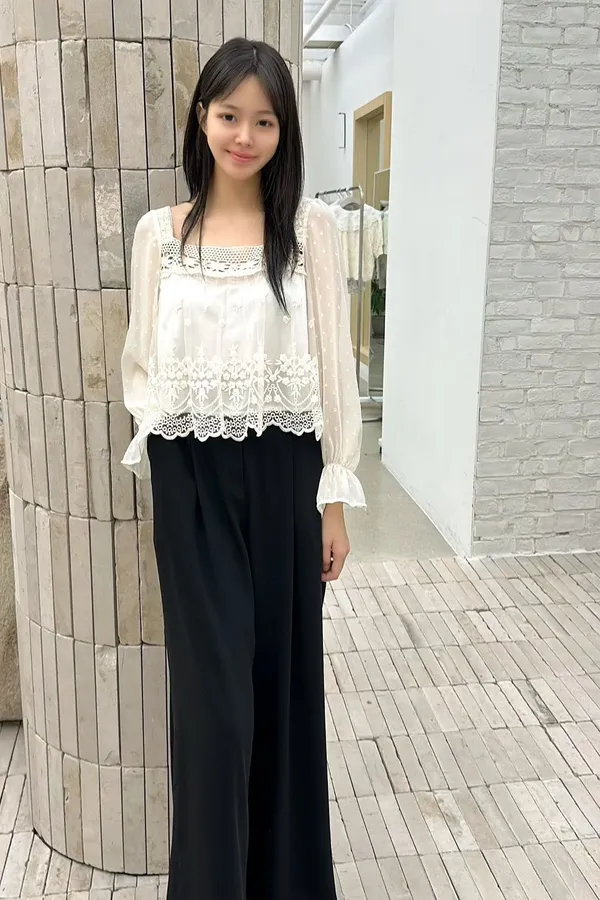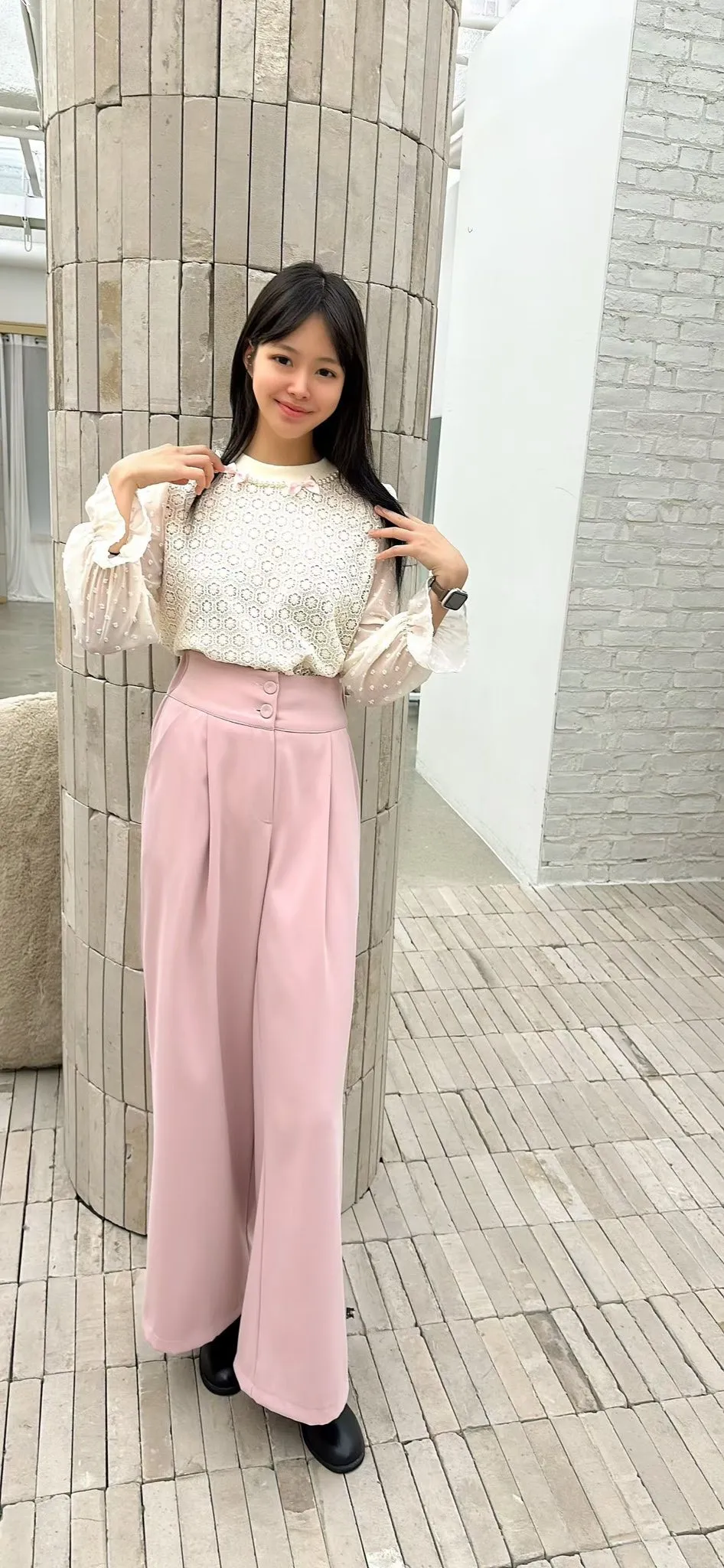 C34高檔蕾絲後鬆緊雪紡褲