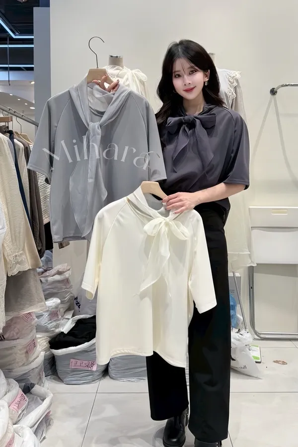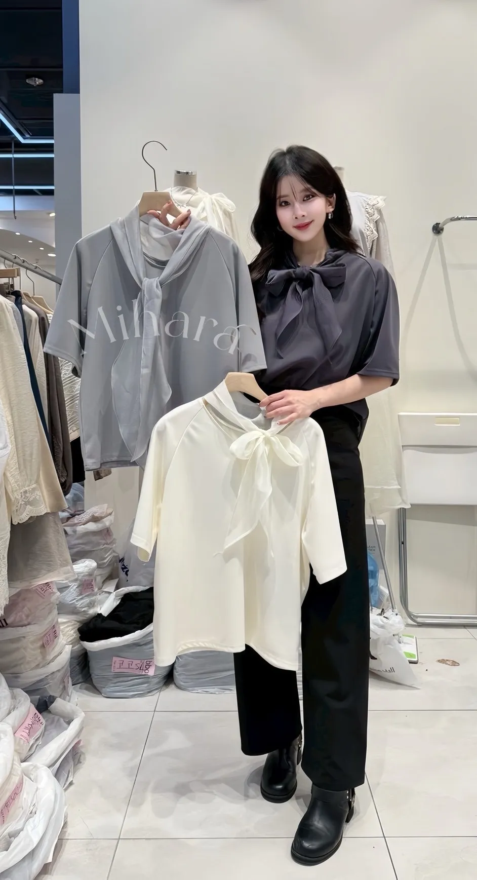 A8 0304CP蕾絲家綁帶雪紡上衣3色