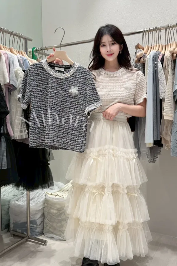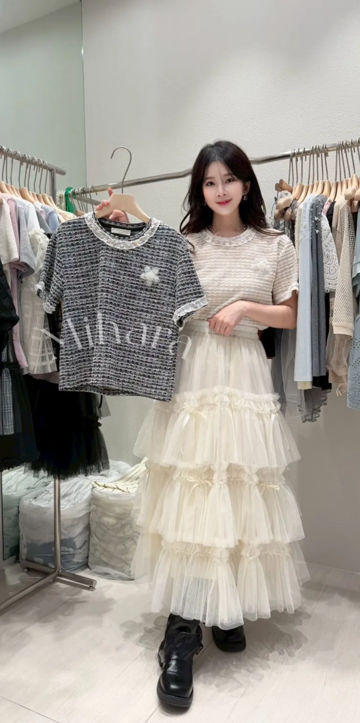 A31 0305CP小香家花朵圓領小香針織上衣2色