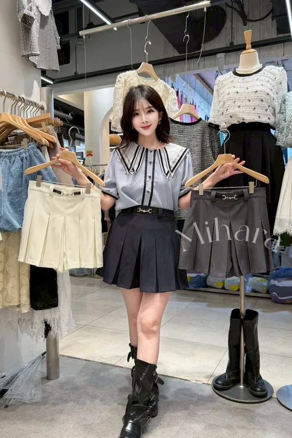 A49 0305OL蕾絲家寬百褶A字短褲裙3色