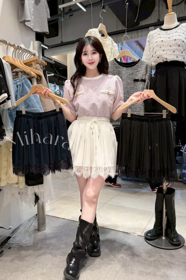 A59 0305OL蕾絲家拼接睫毛蕾絲下擺雪紡短褲裙3色
