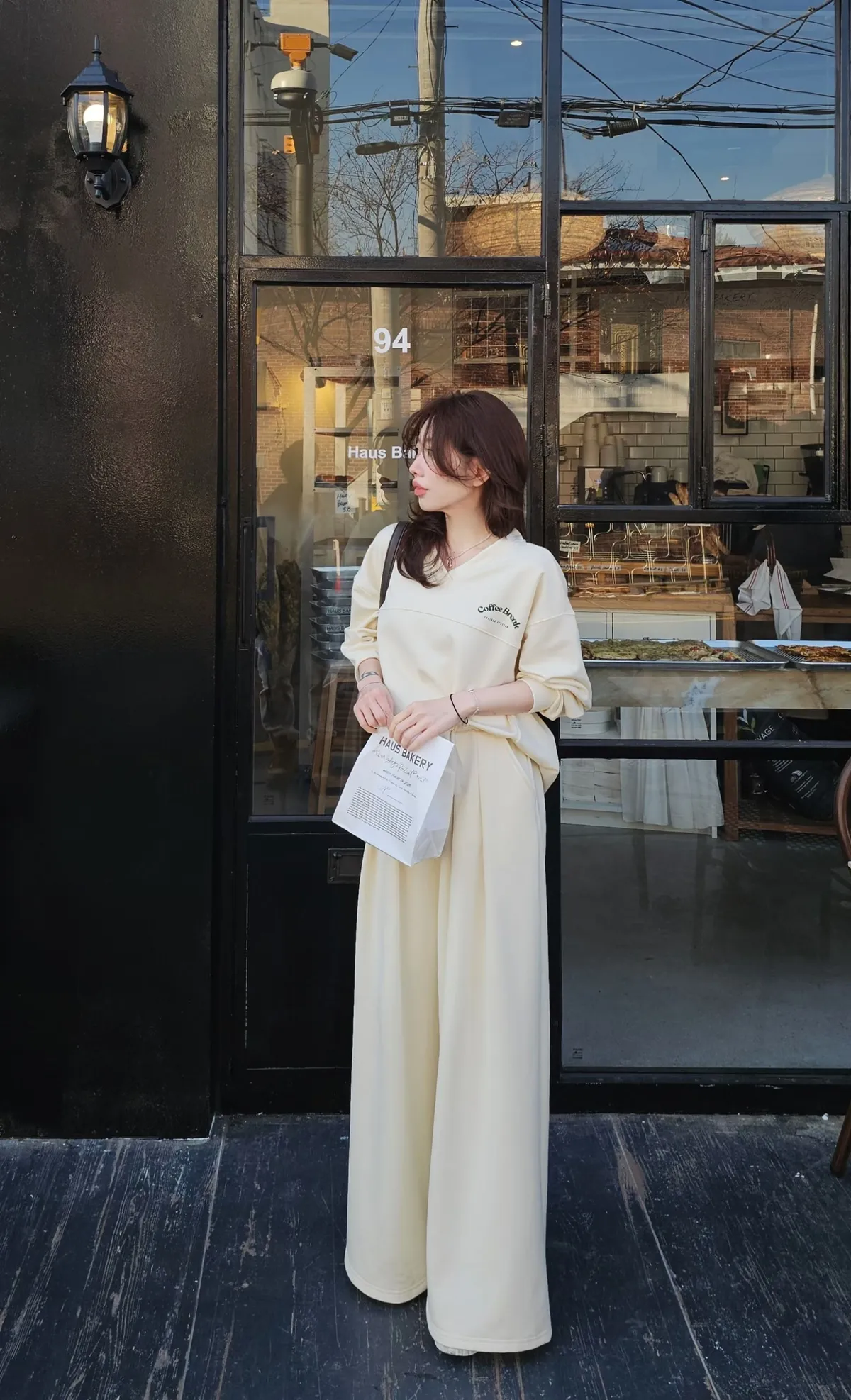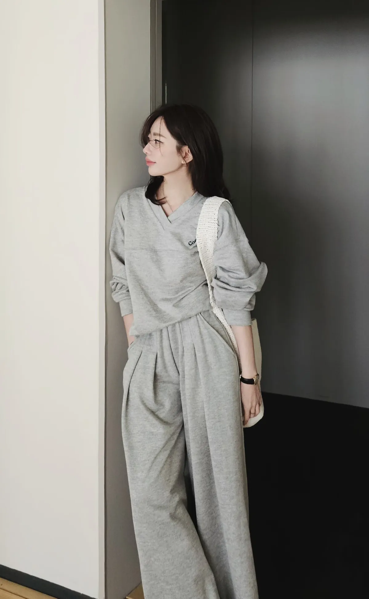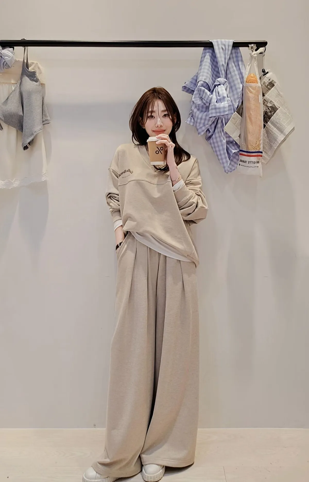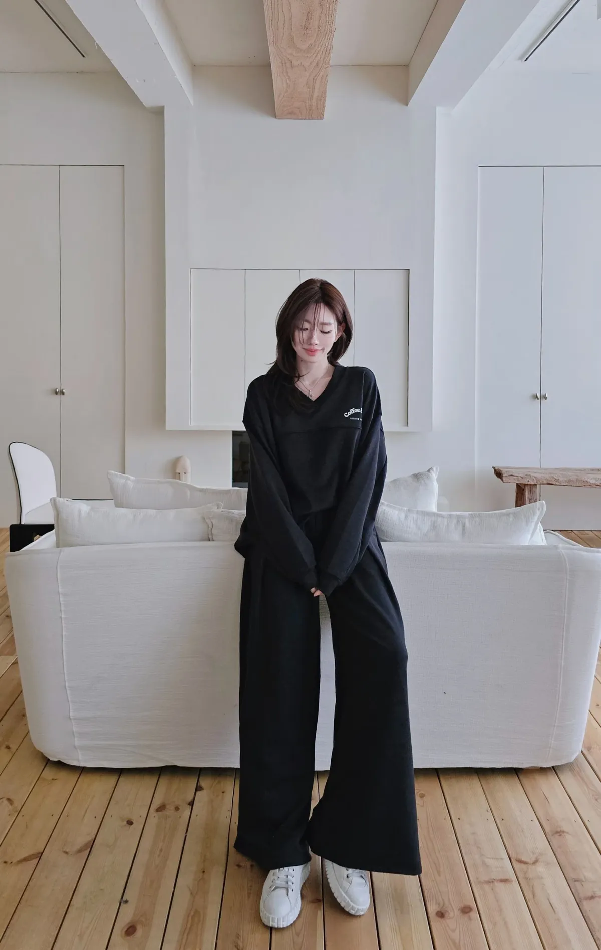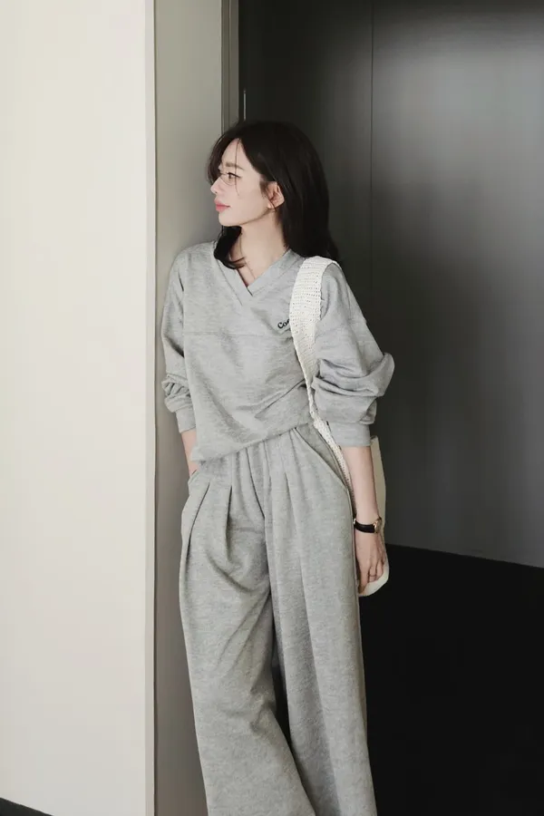 最愛的懶人衛衣套裝,衛衣下擺有一個弧度搭配兩側修身剪裁線,不紮也好看~打摺寬版長褲,修飾又大長腿,搭配其他T恤或是衛衣也百搭🥰