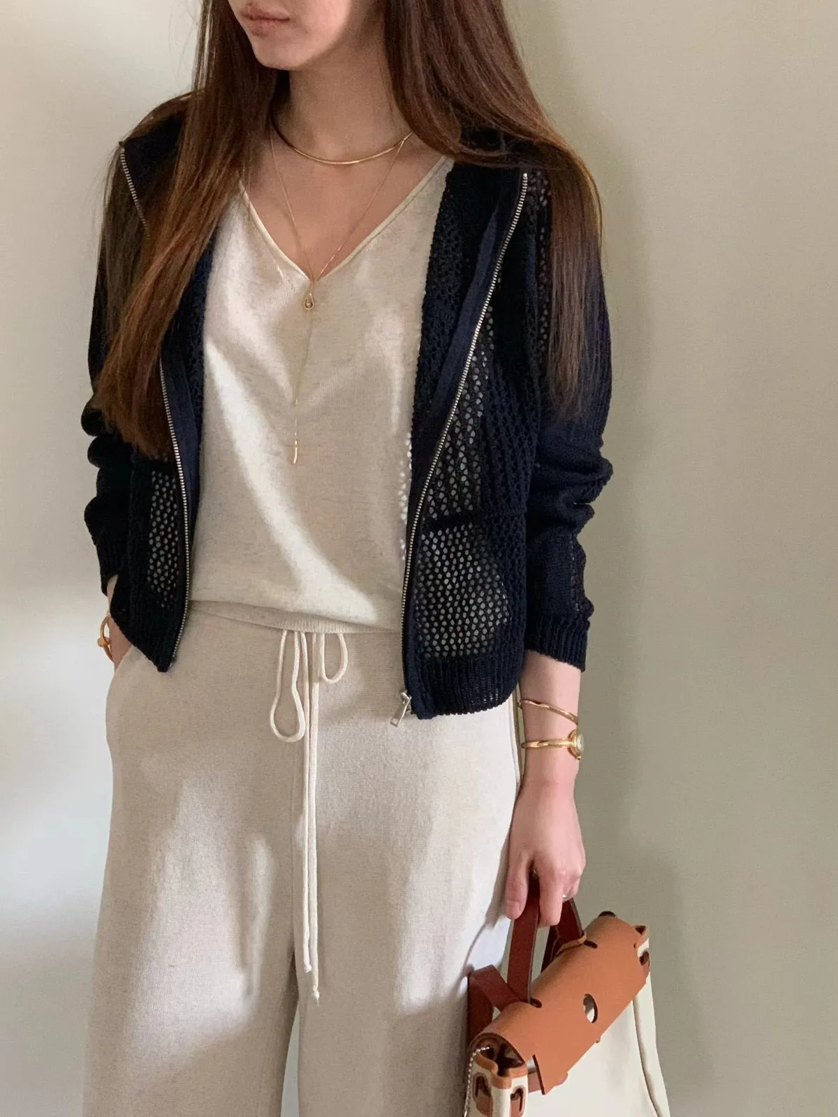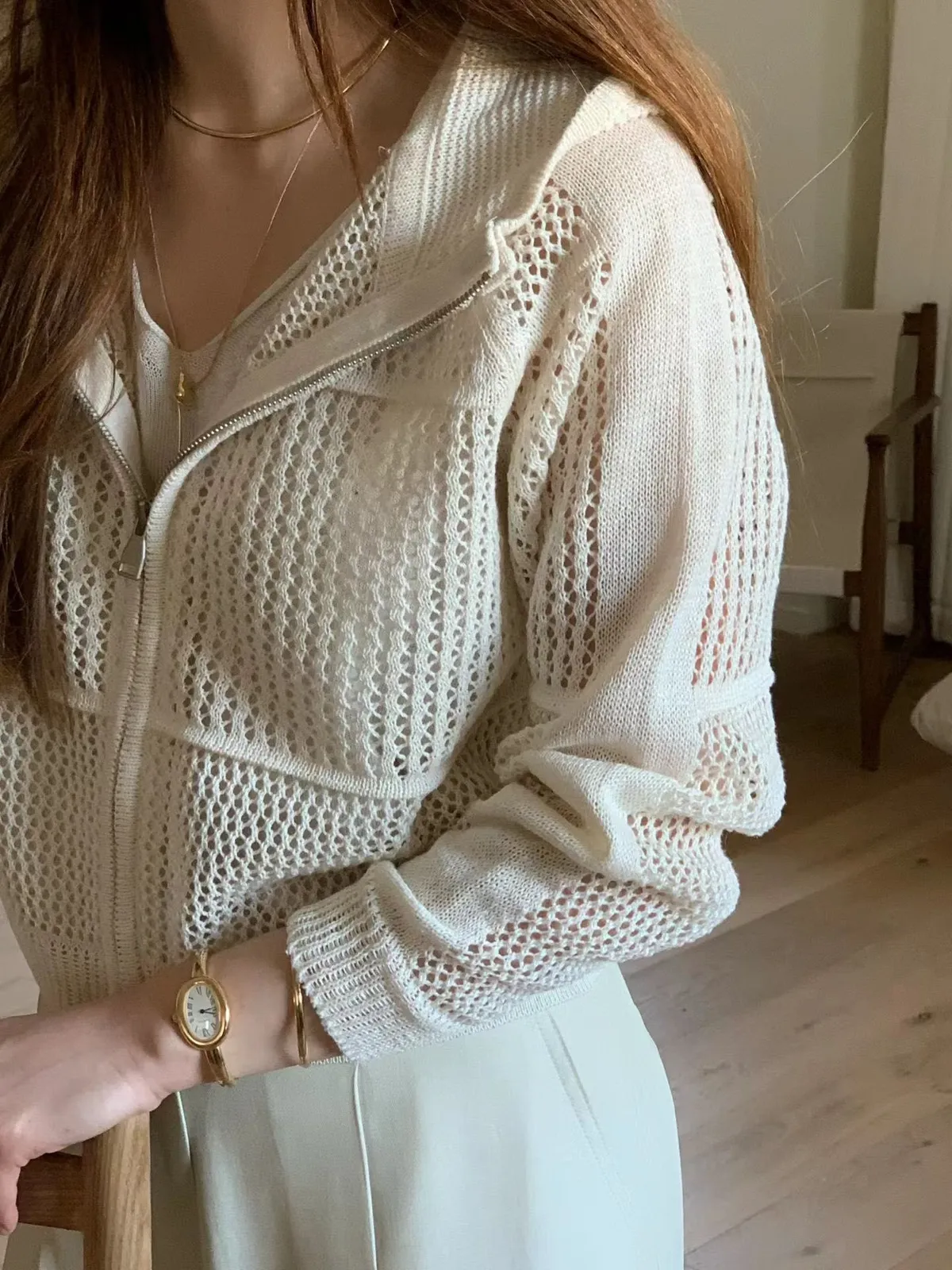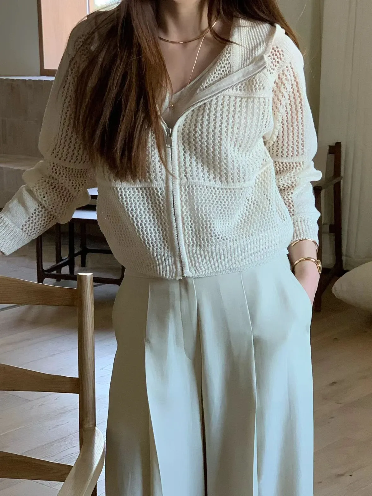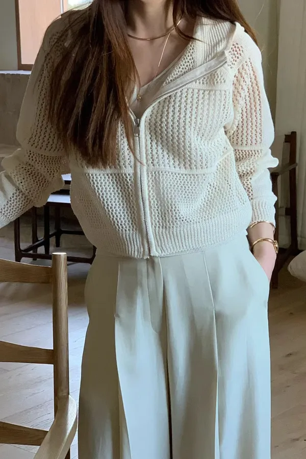 C181氣質歐膩鏤空洞洞連帽拉鍊外套