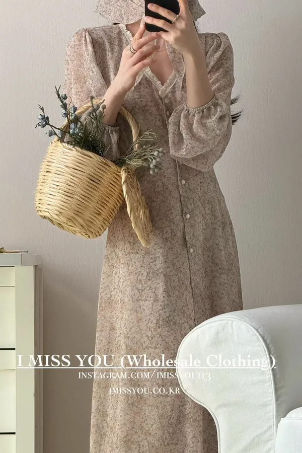 C15高檔Miss浪漫V領雪紡碎花蛋糕洋裝