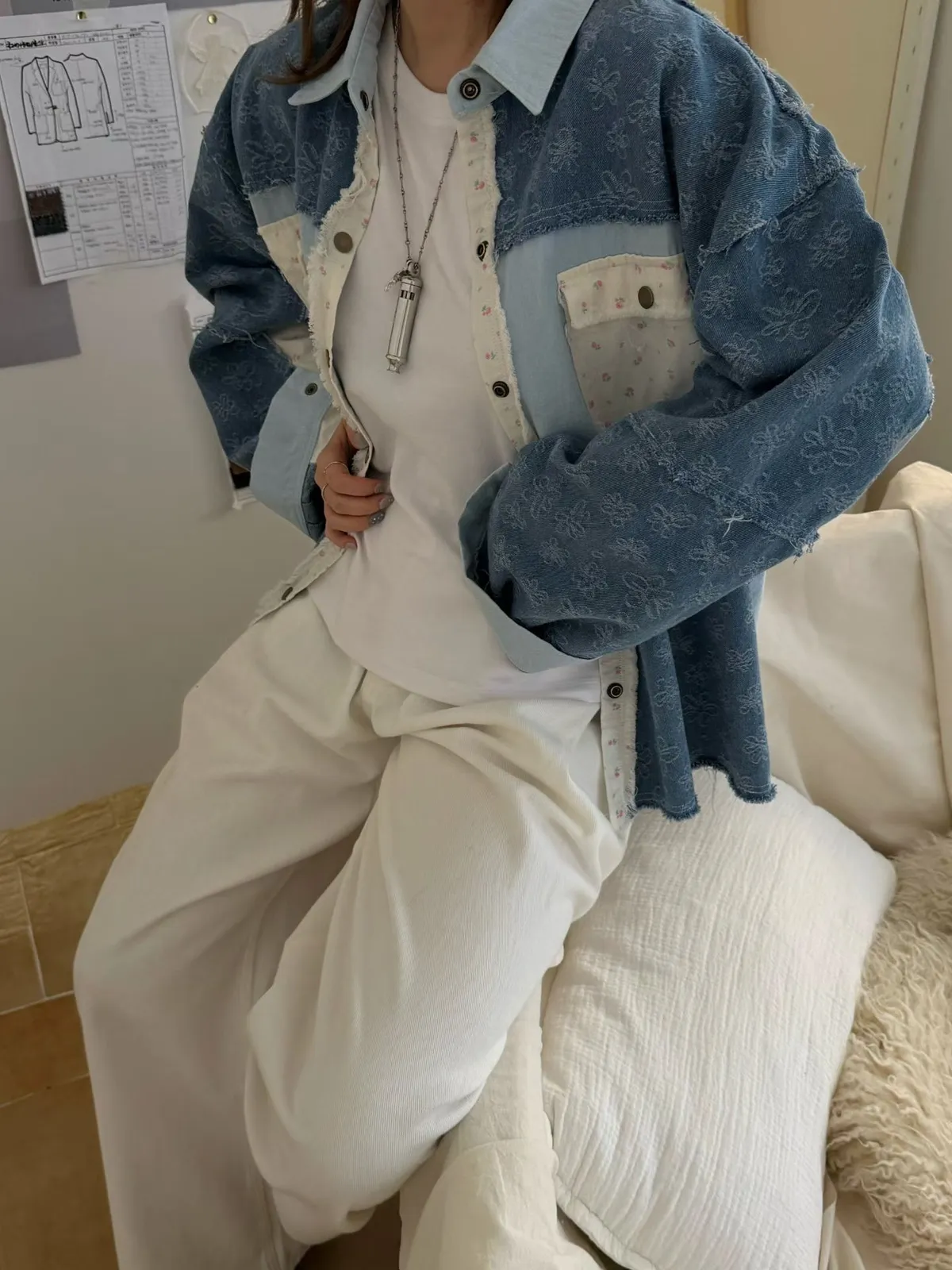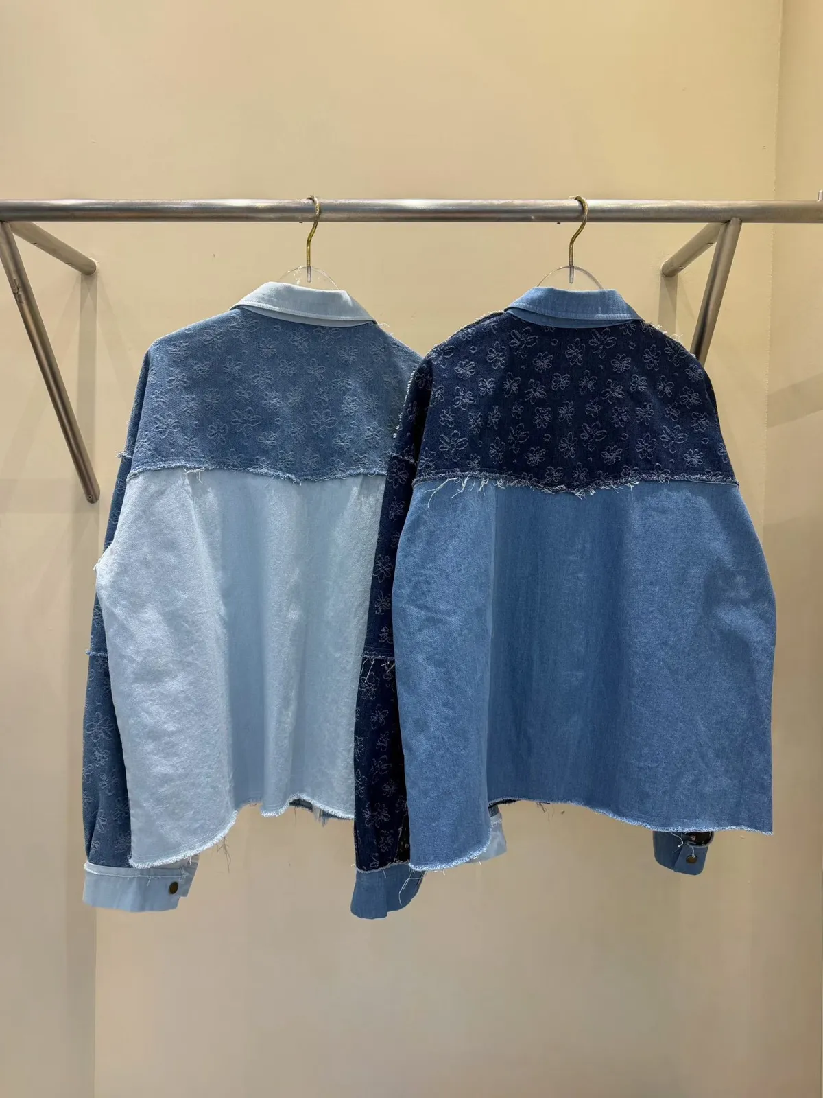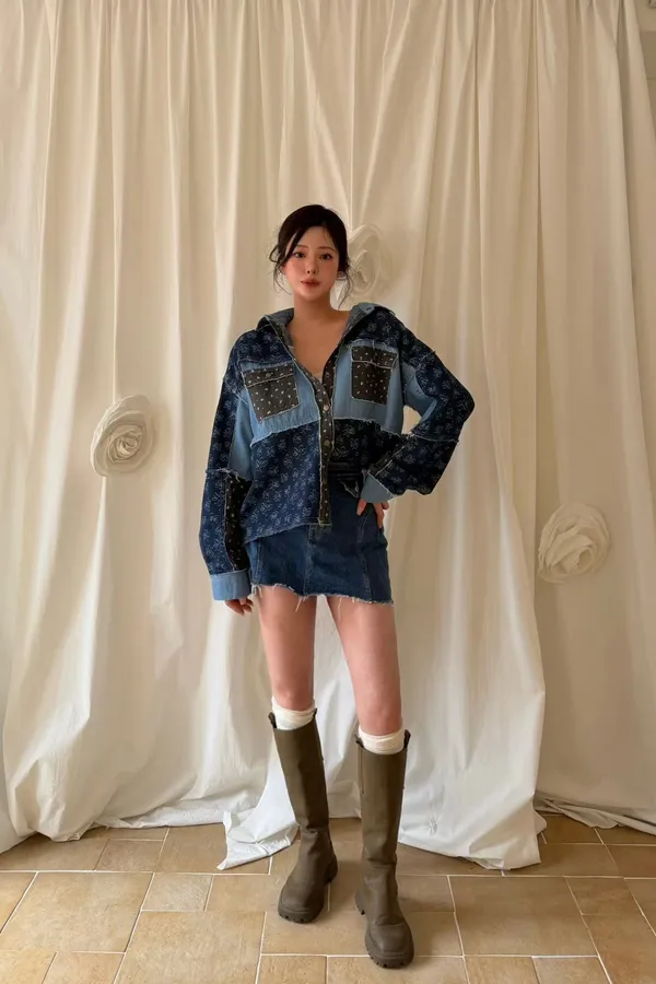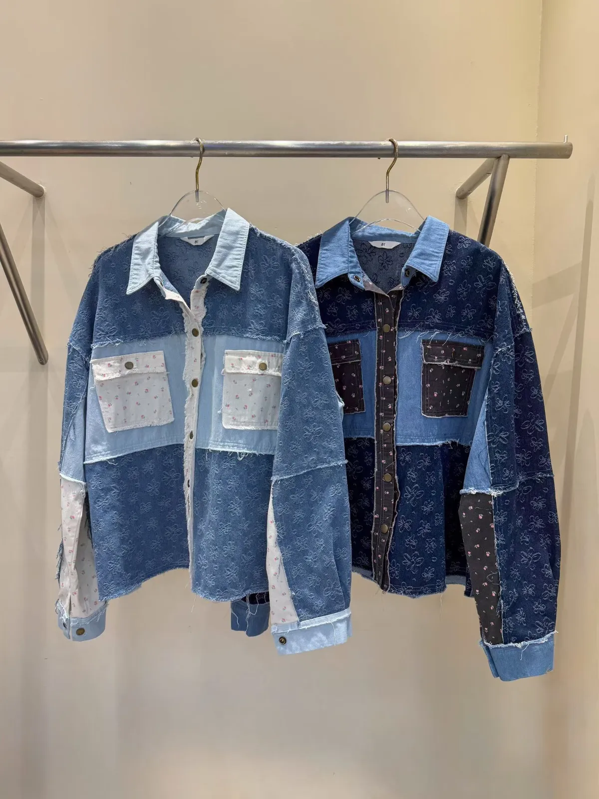 A8 0308網紅歐膩家撞色印花牛仔襯衫2色
