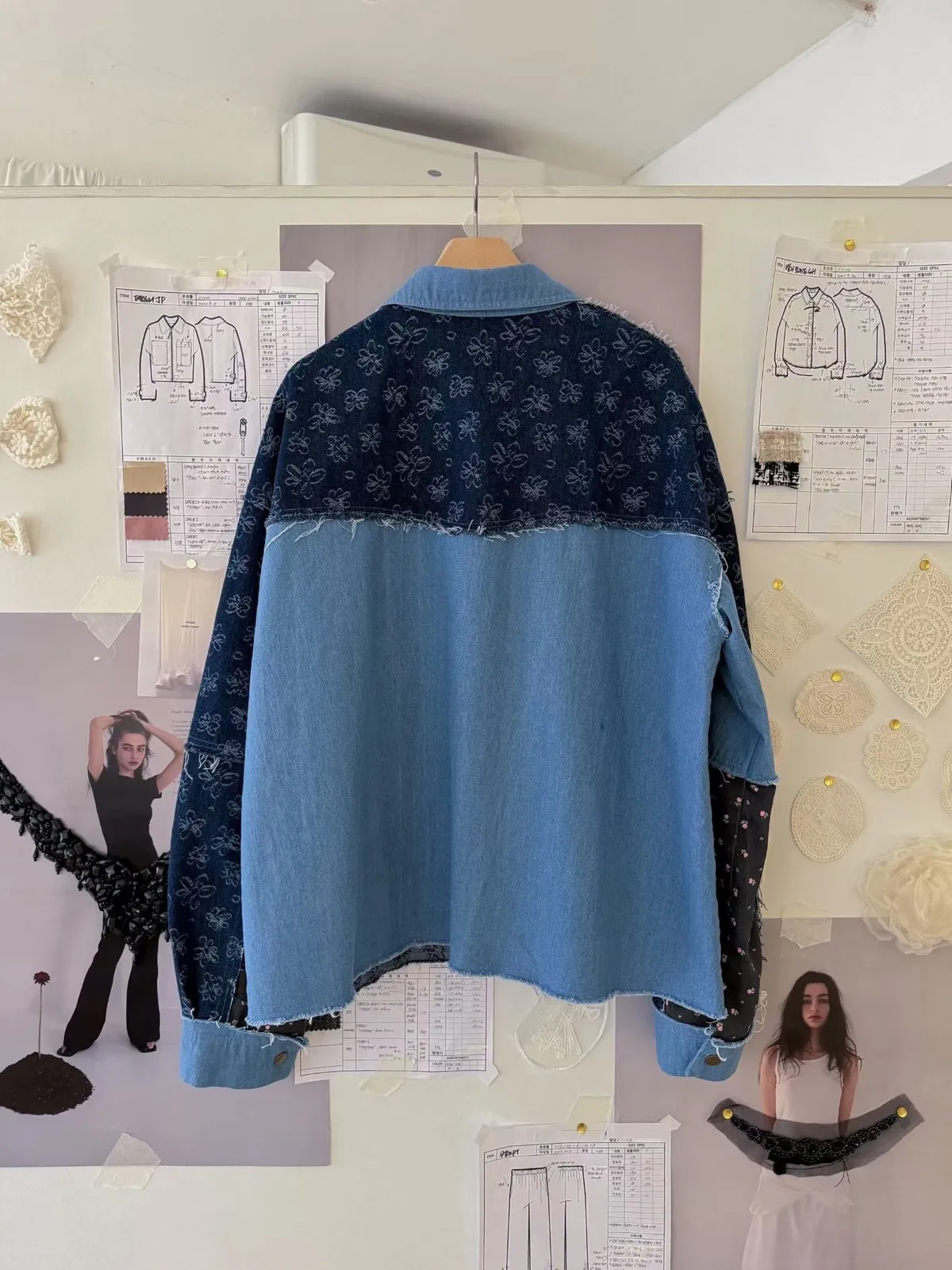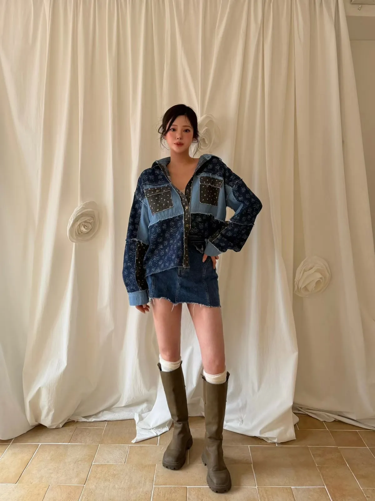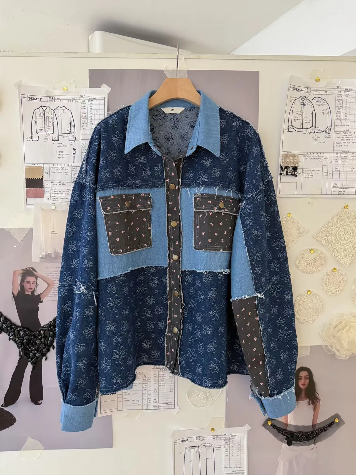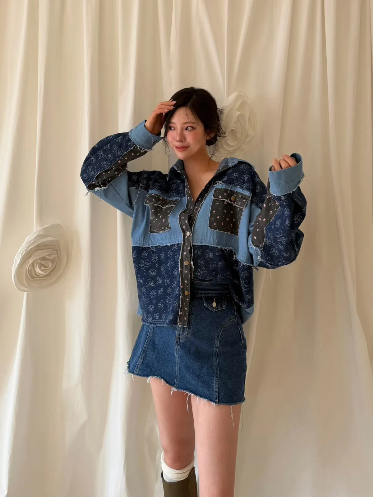 A8 0308網紅歐膩家撞色印花牛仔襯衫2色