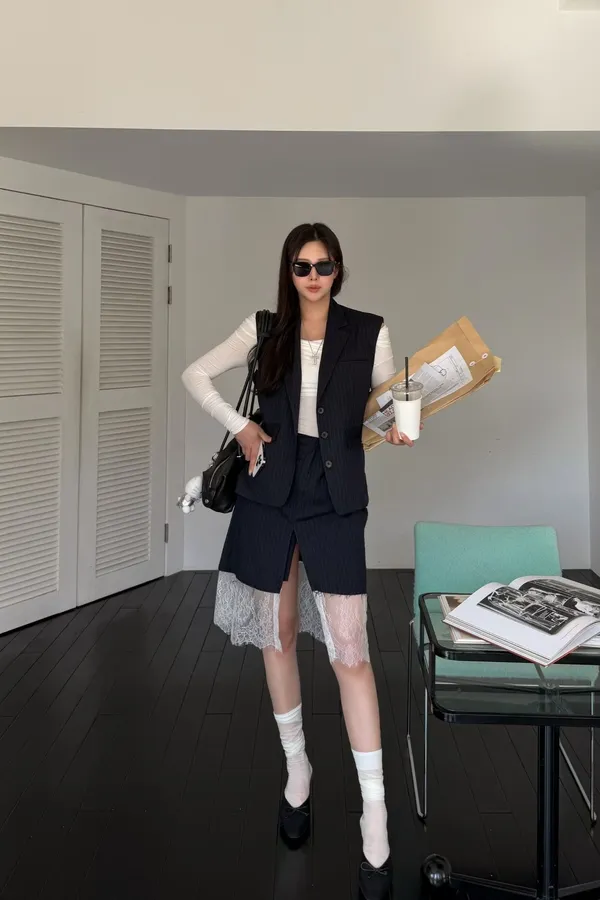A11 0308網紅歐膩家直紋西裝背心2色