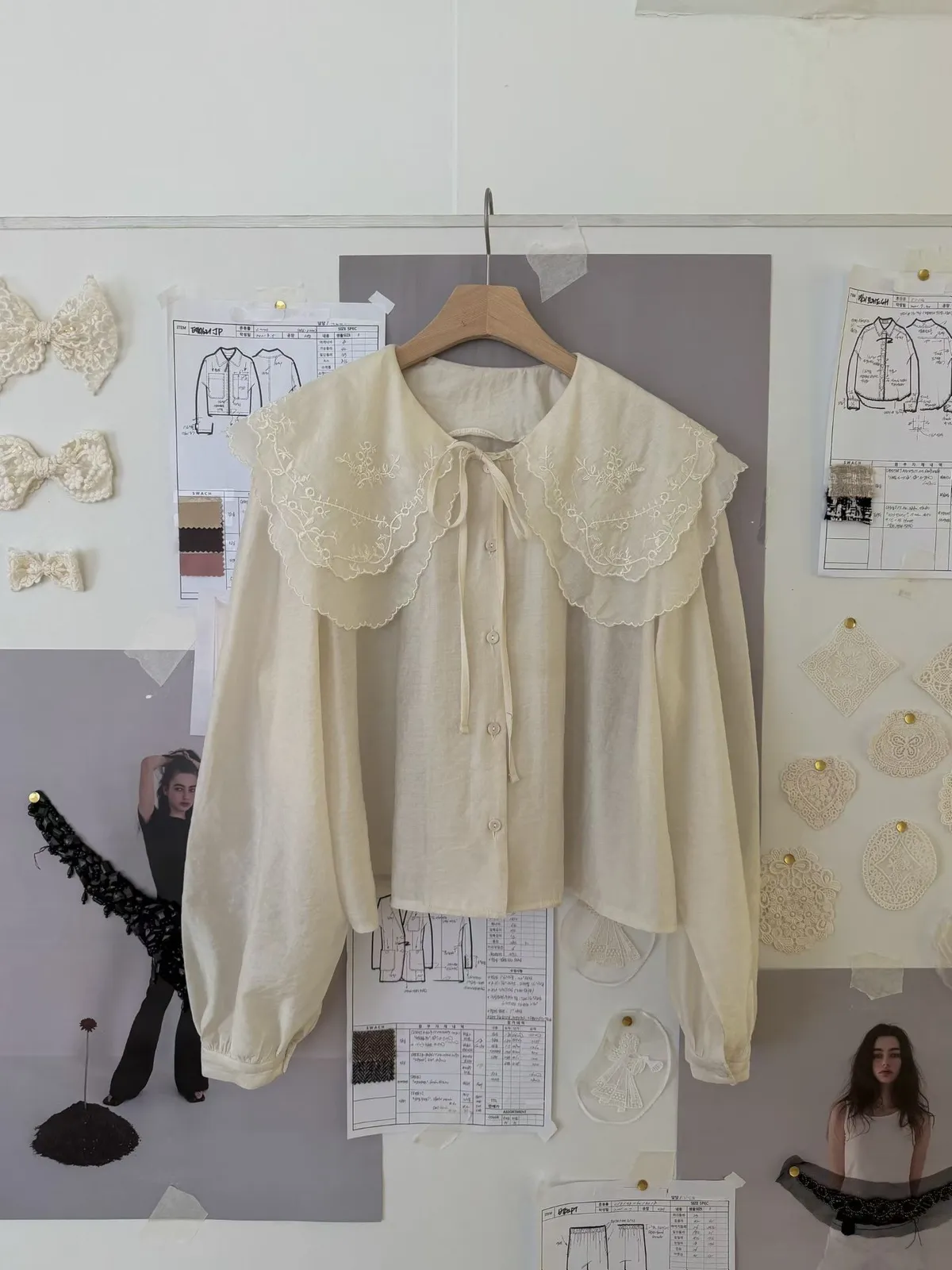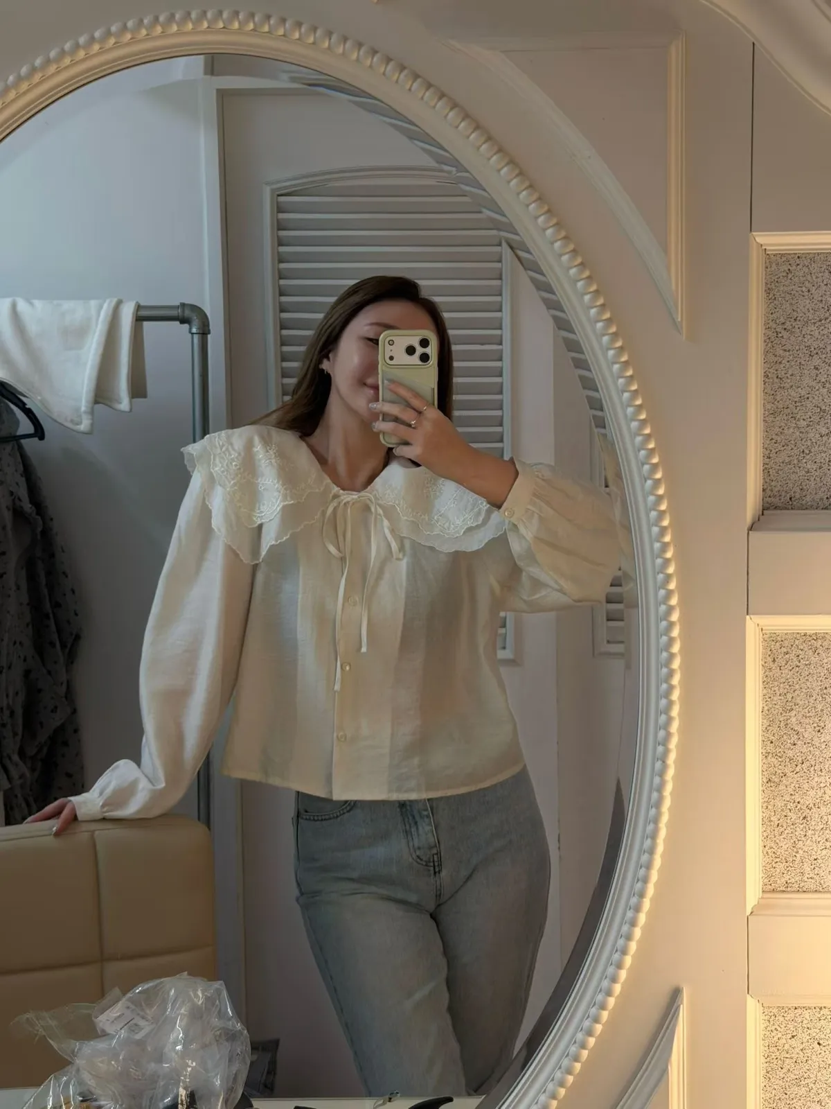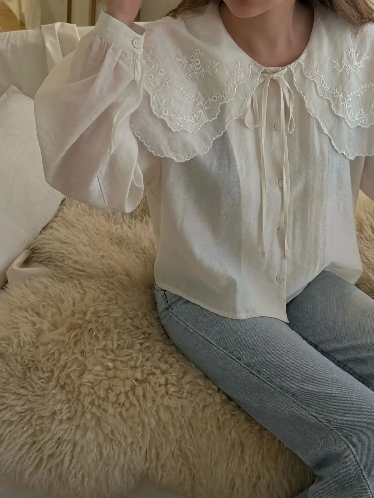 A14 0308網紅歐膩家雙層大領片綁帶圓領天絲襯衫