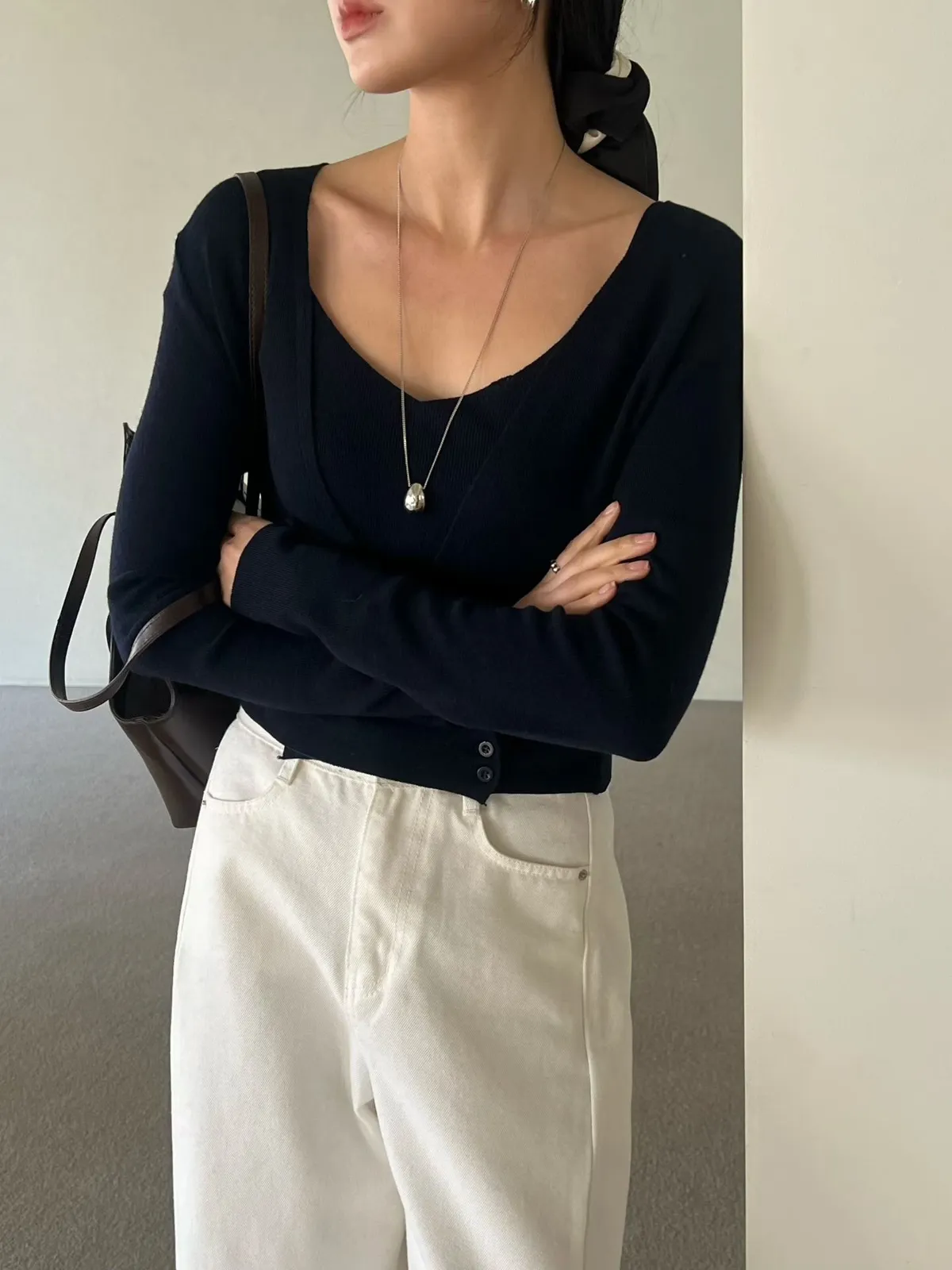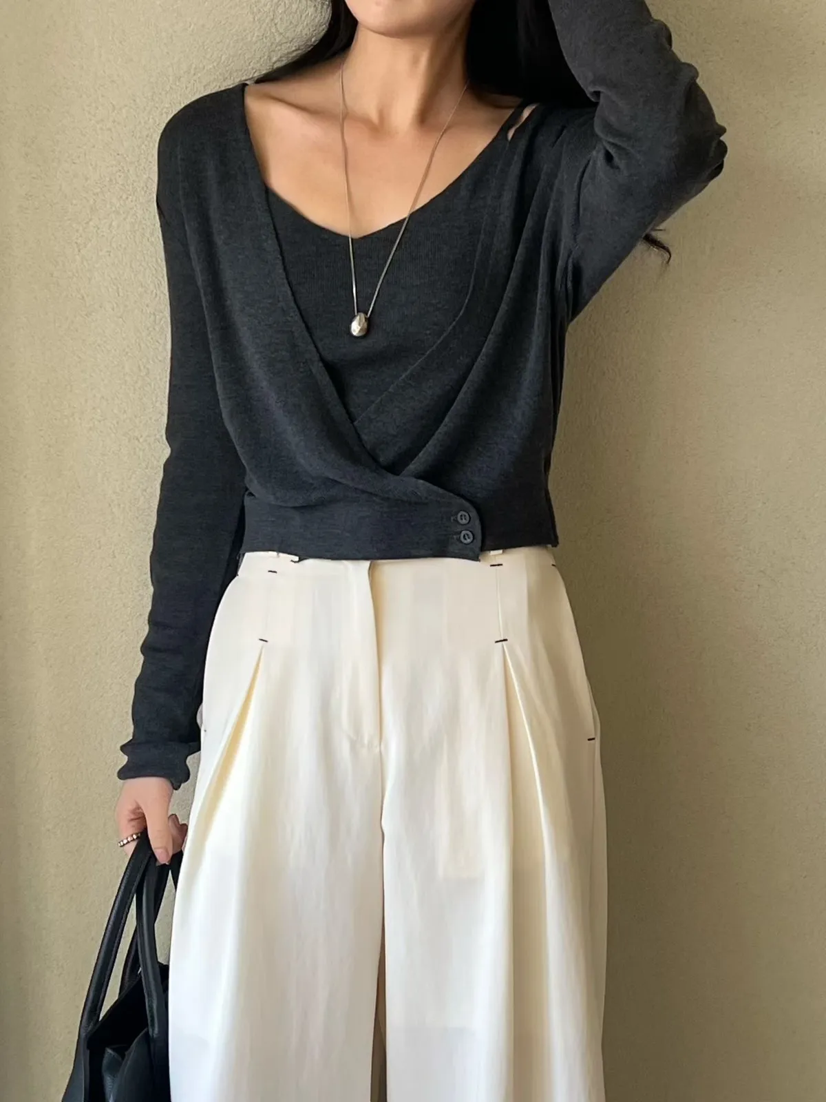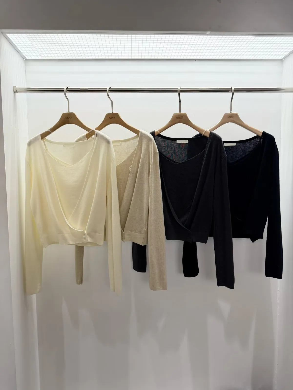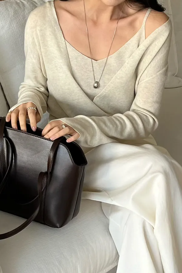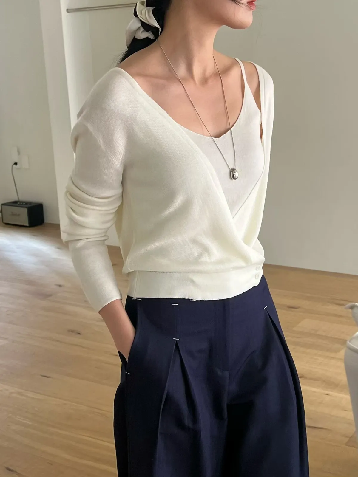 A15 0308高檔名媛家針織背心前交叉上衣(SET)4色