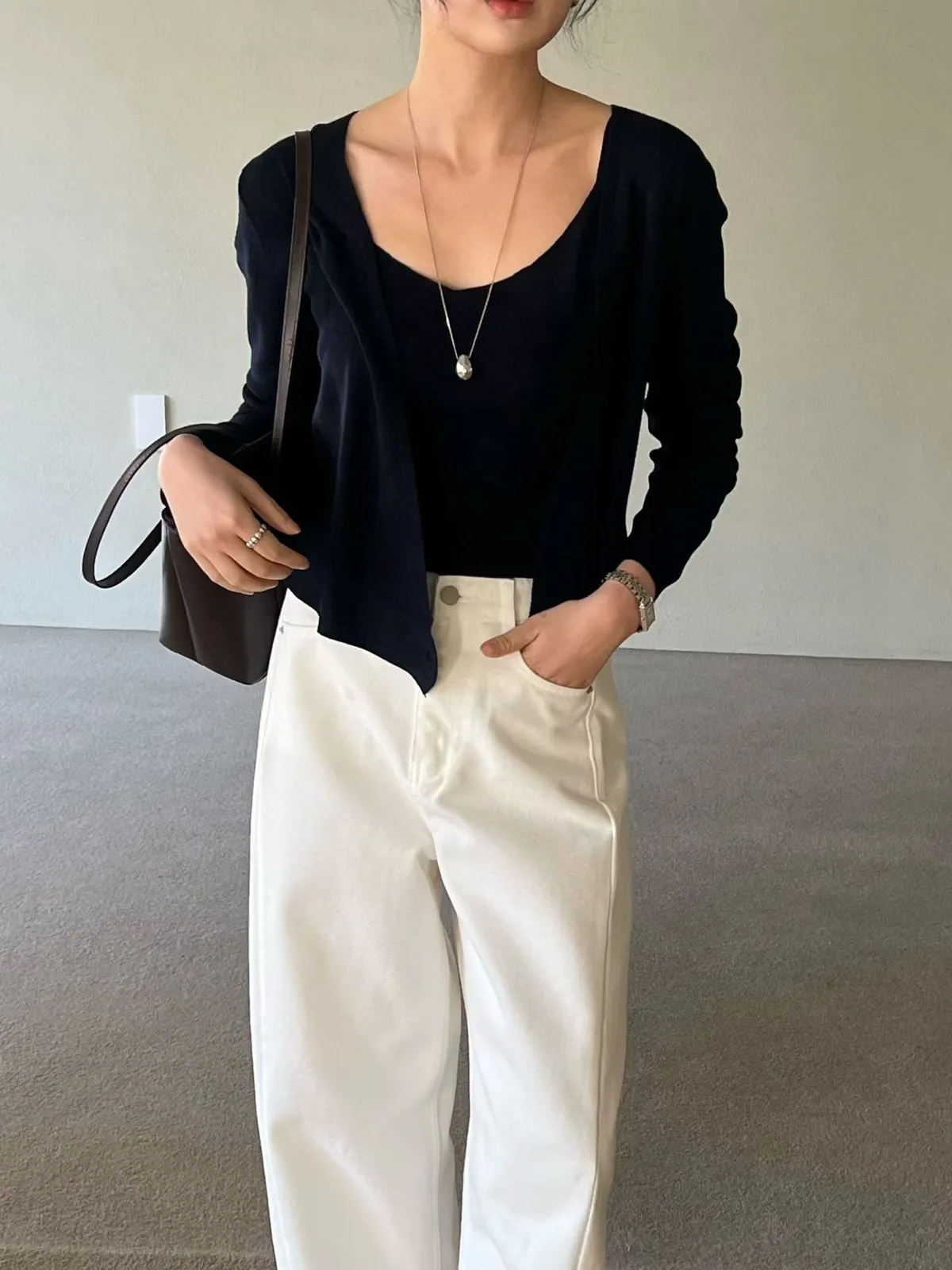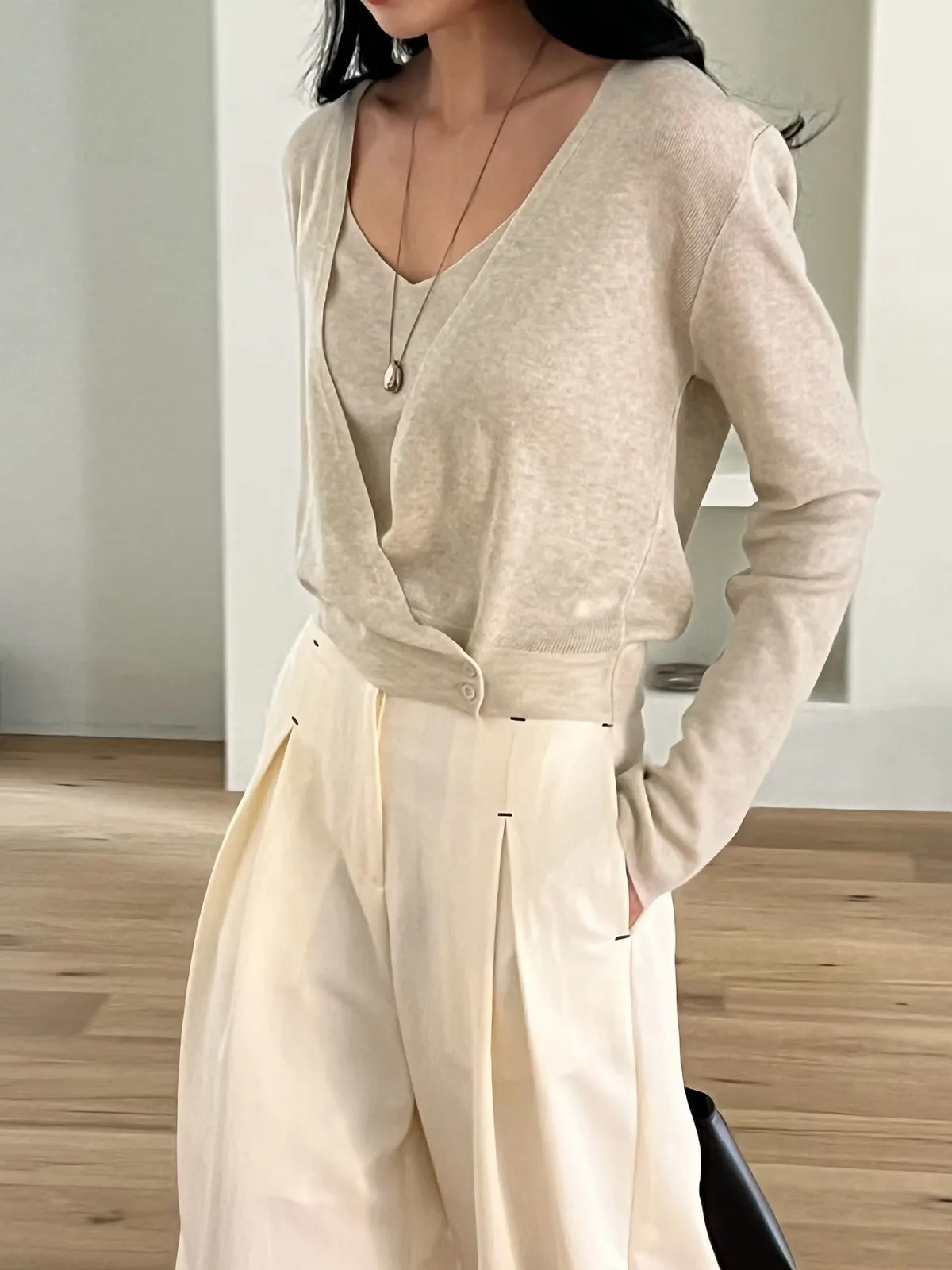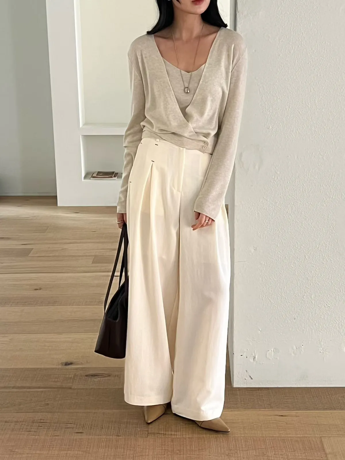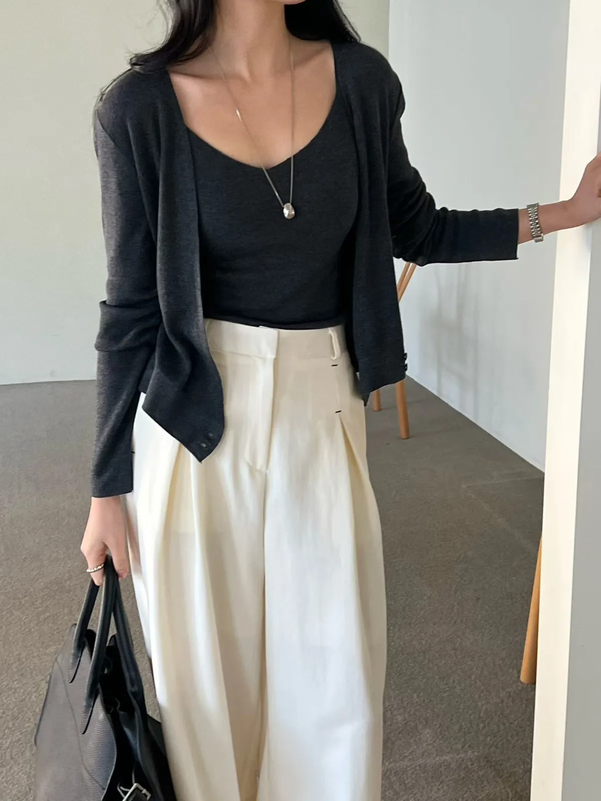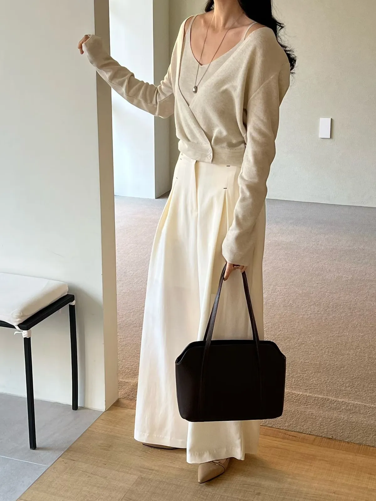 A15 0308高檔名媛家針織背心前交叉上衣(SET)4色