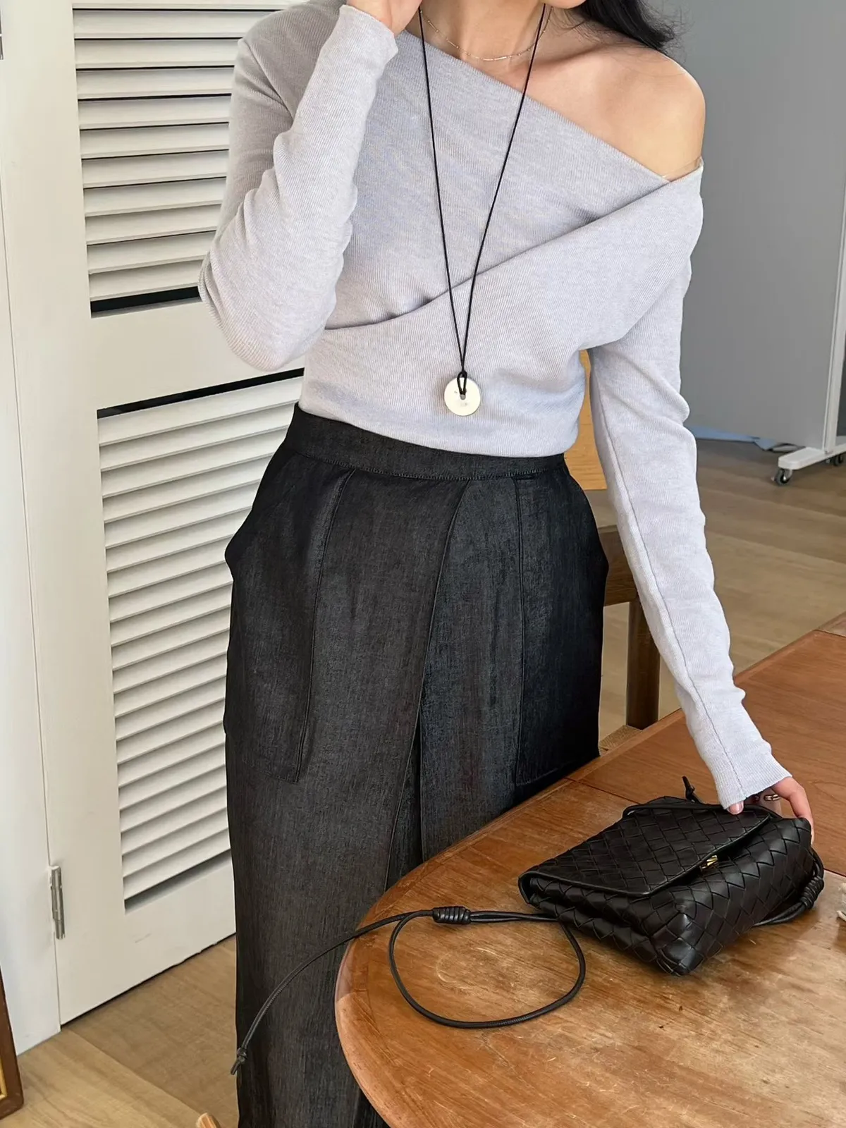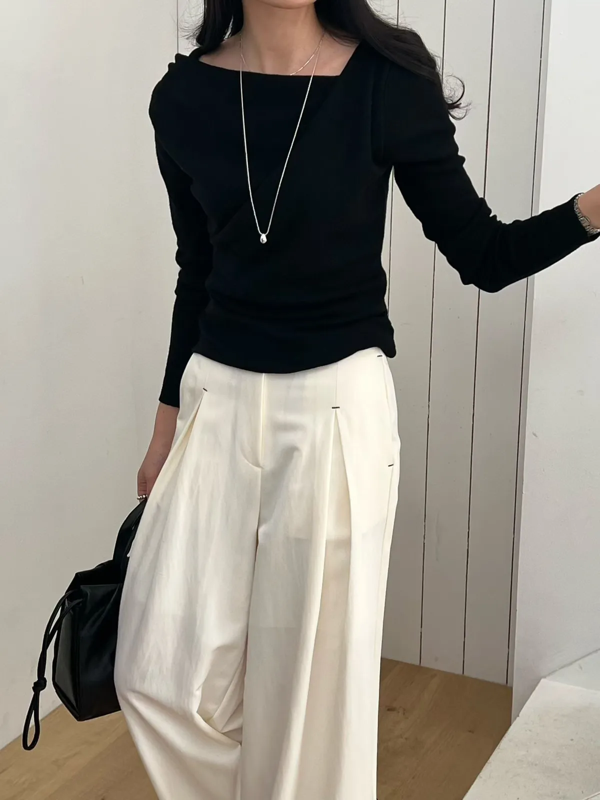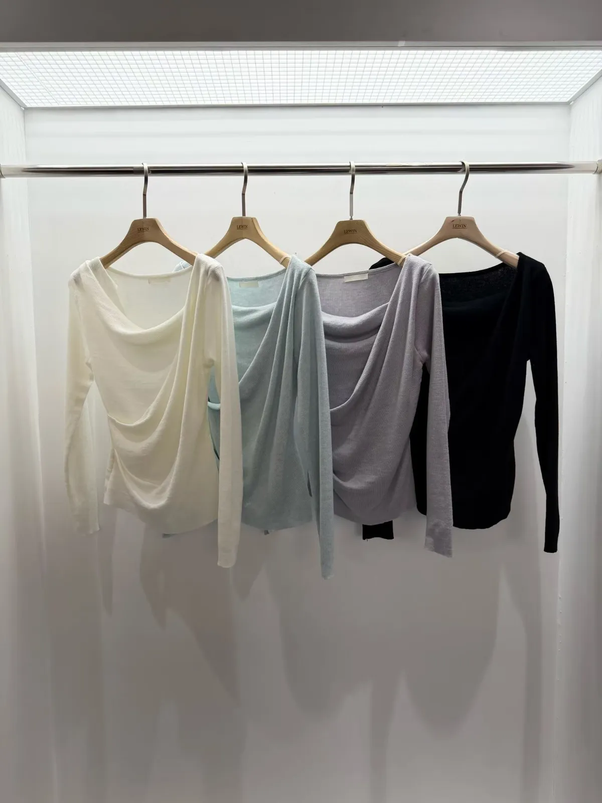 A19 0308高檔名媛家側抓褶垂領可拉一字針織衫4色