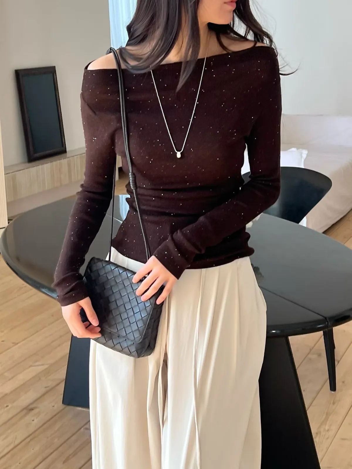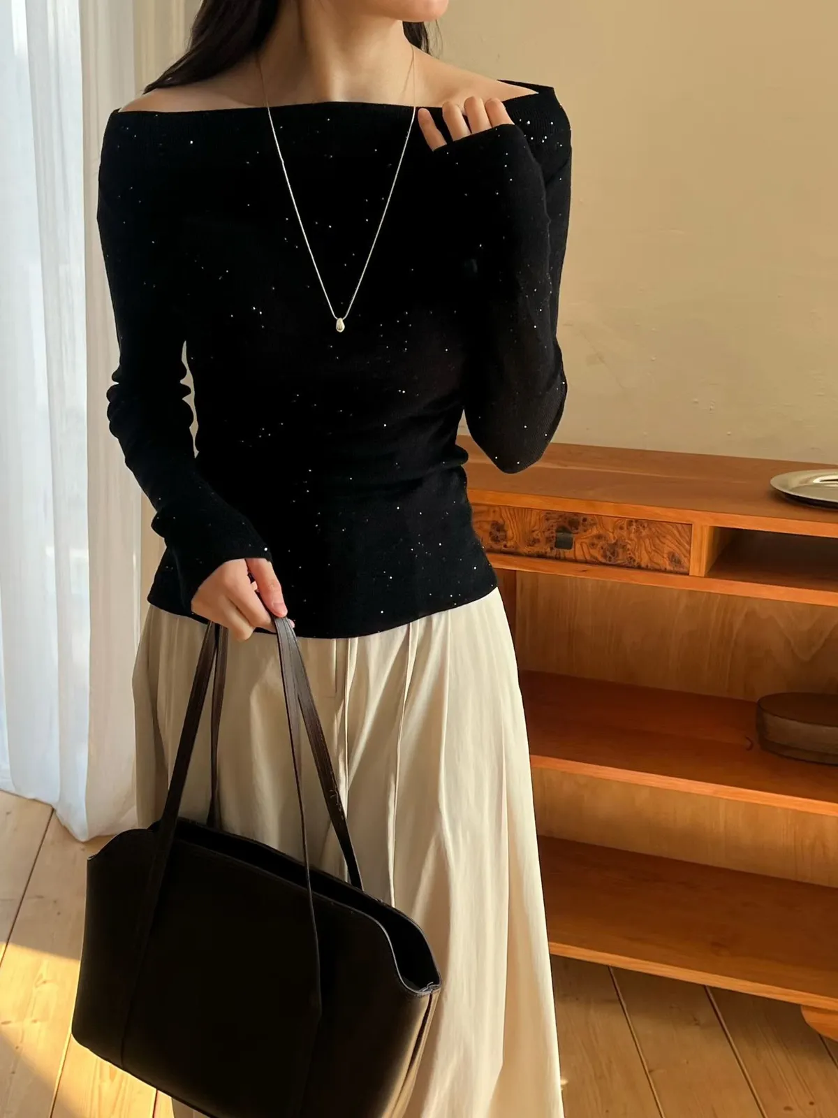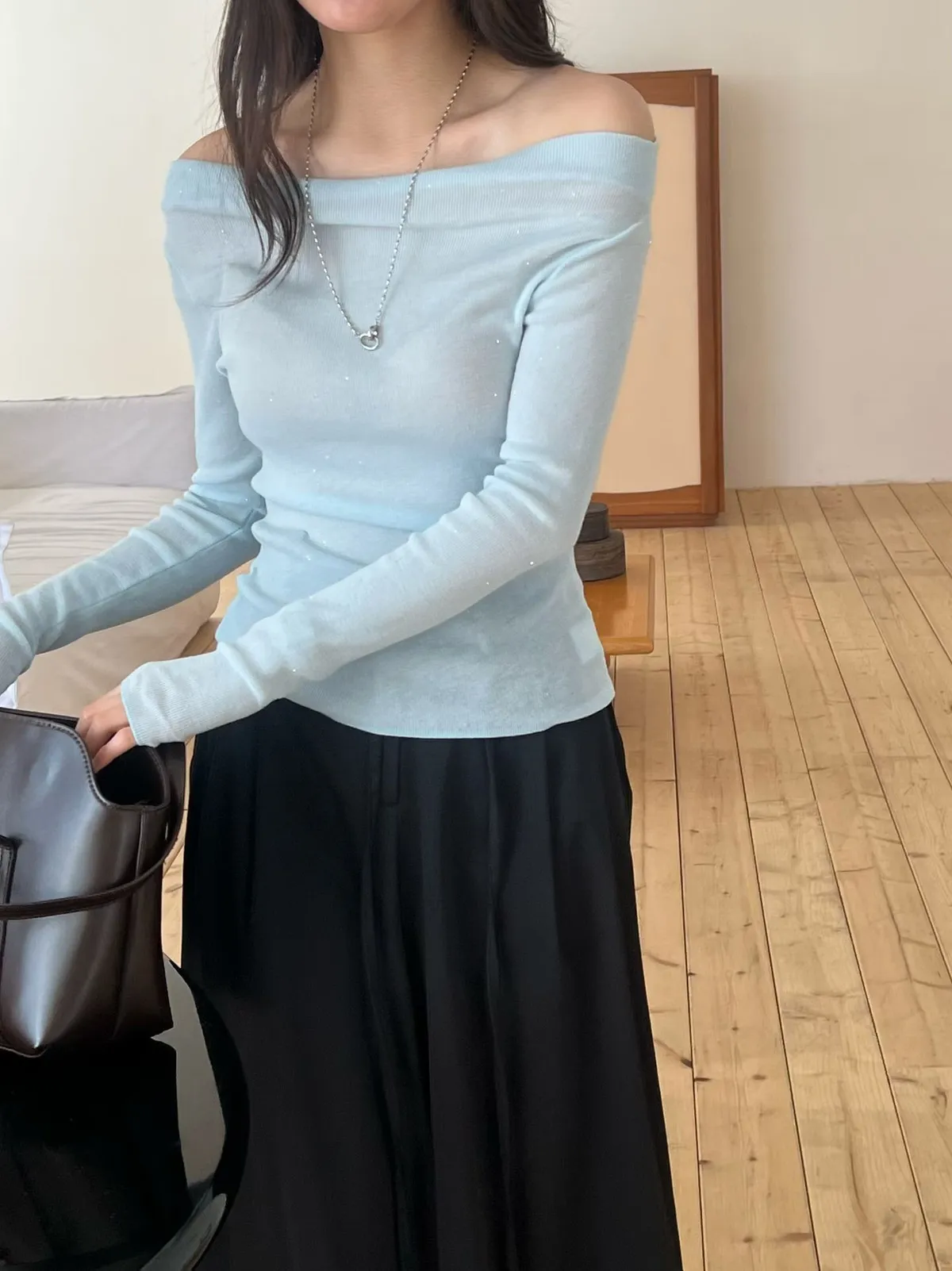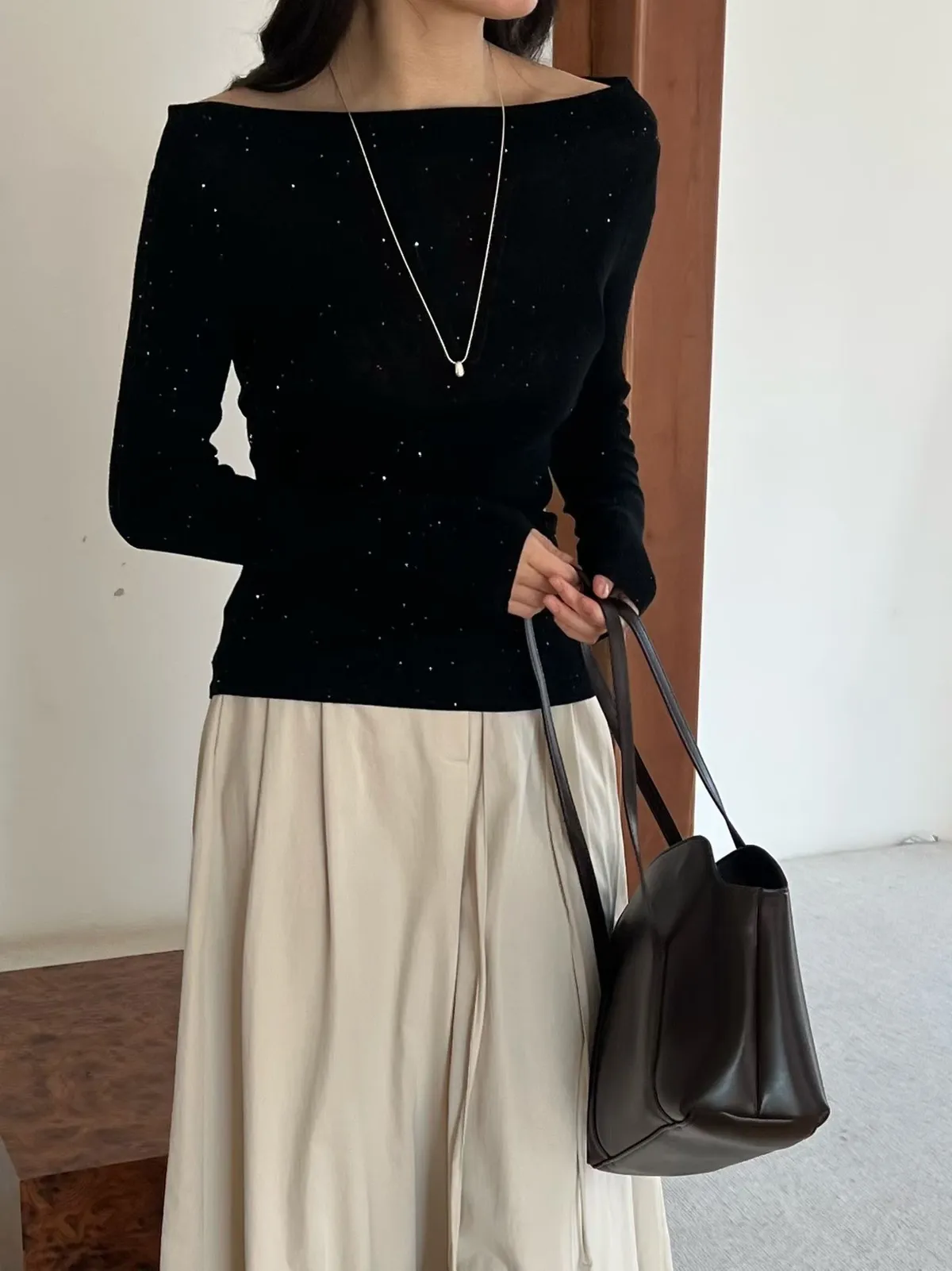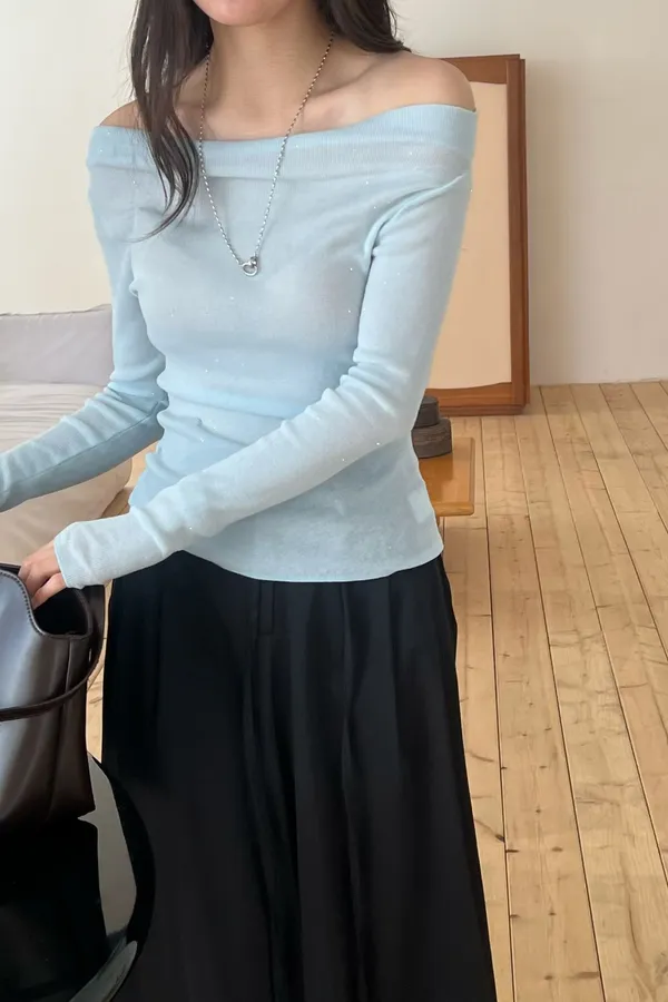 A22 0308高檔名媛家羊毛78%閃亮亮船型針織上衣5色