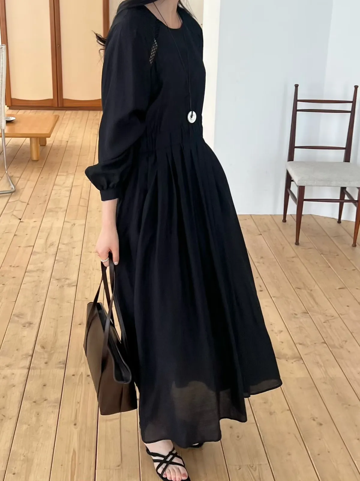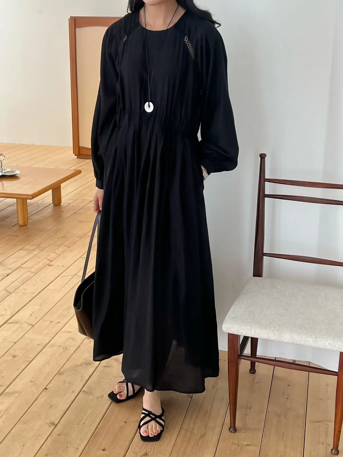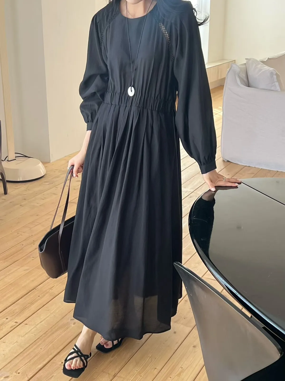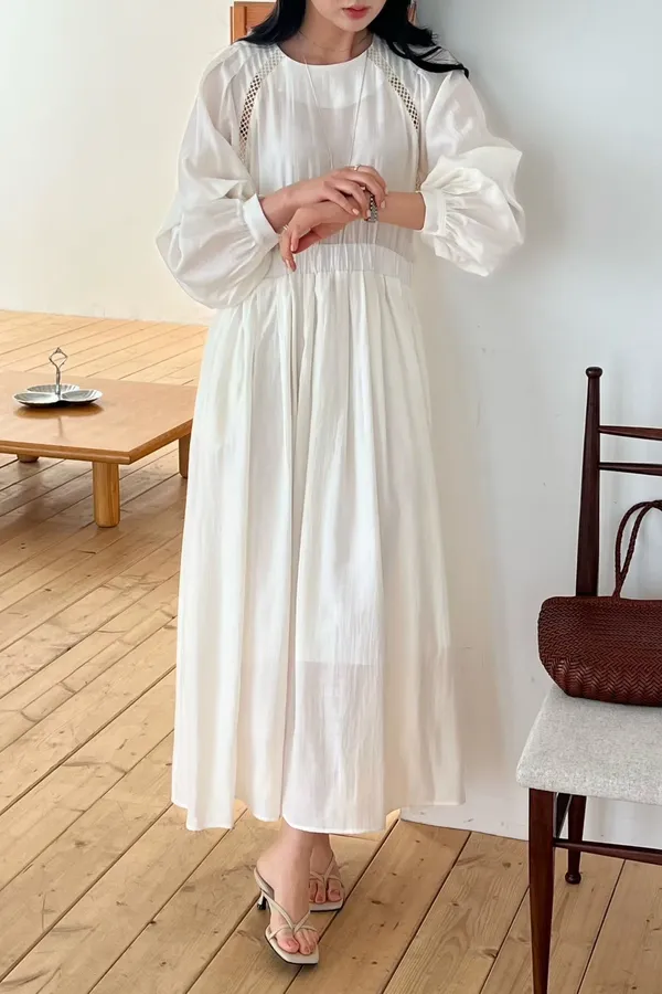 A27 0308高檔名媛家縲縈85%簍空設計氣質長袖洋裝3色