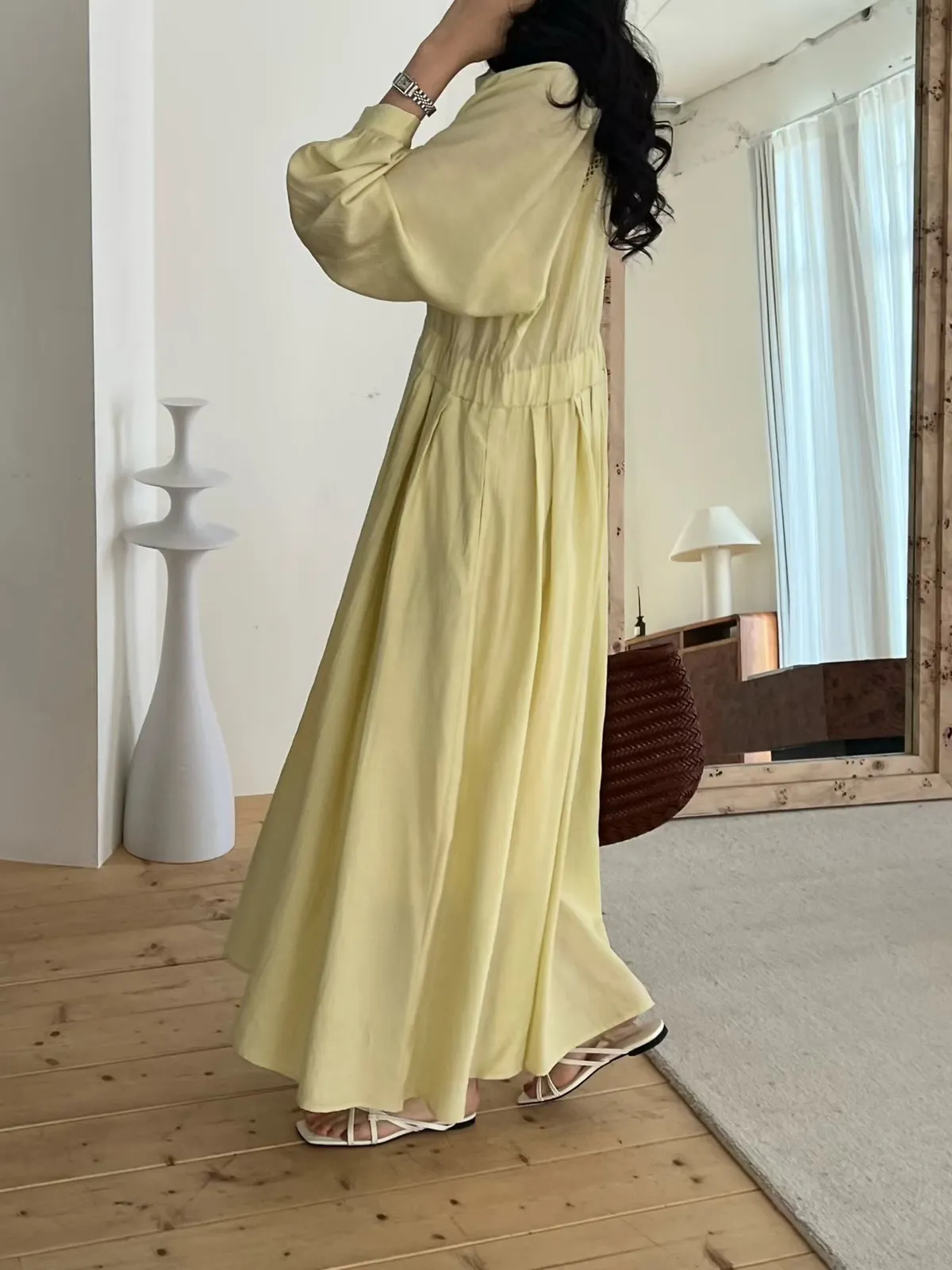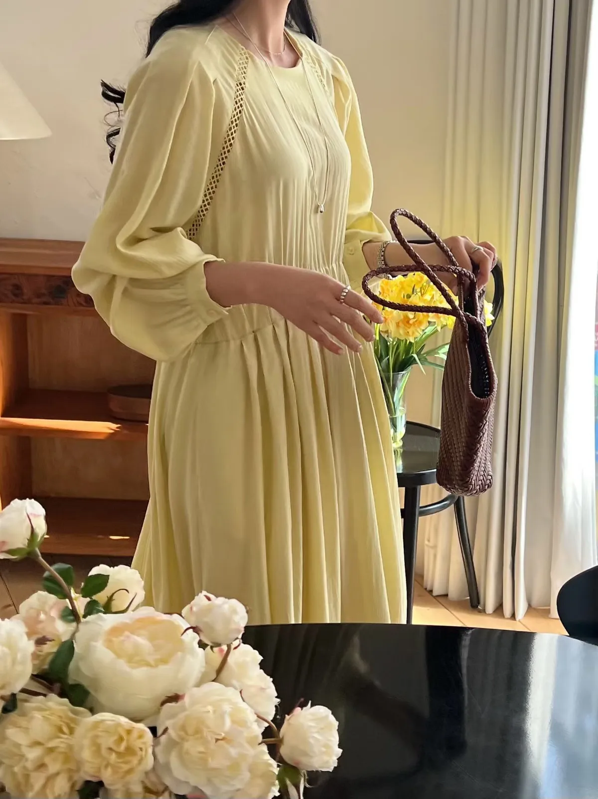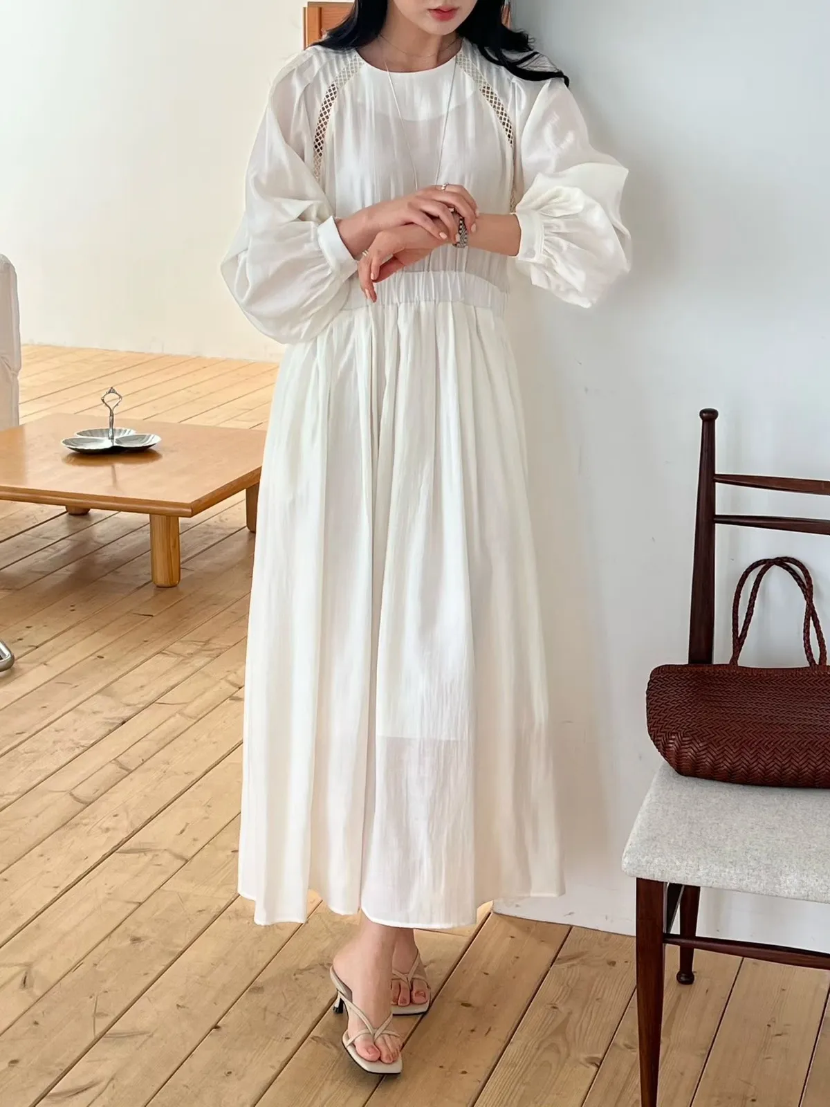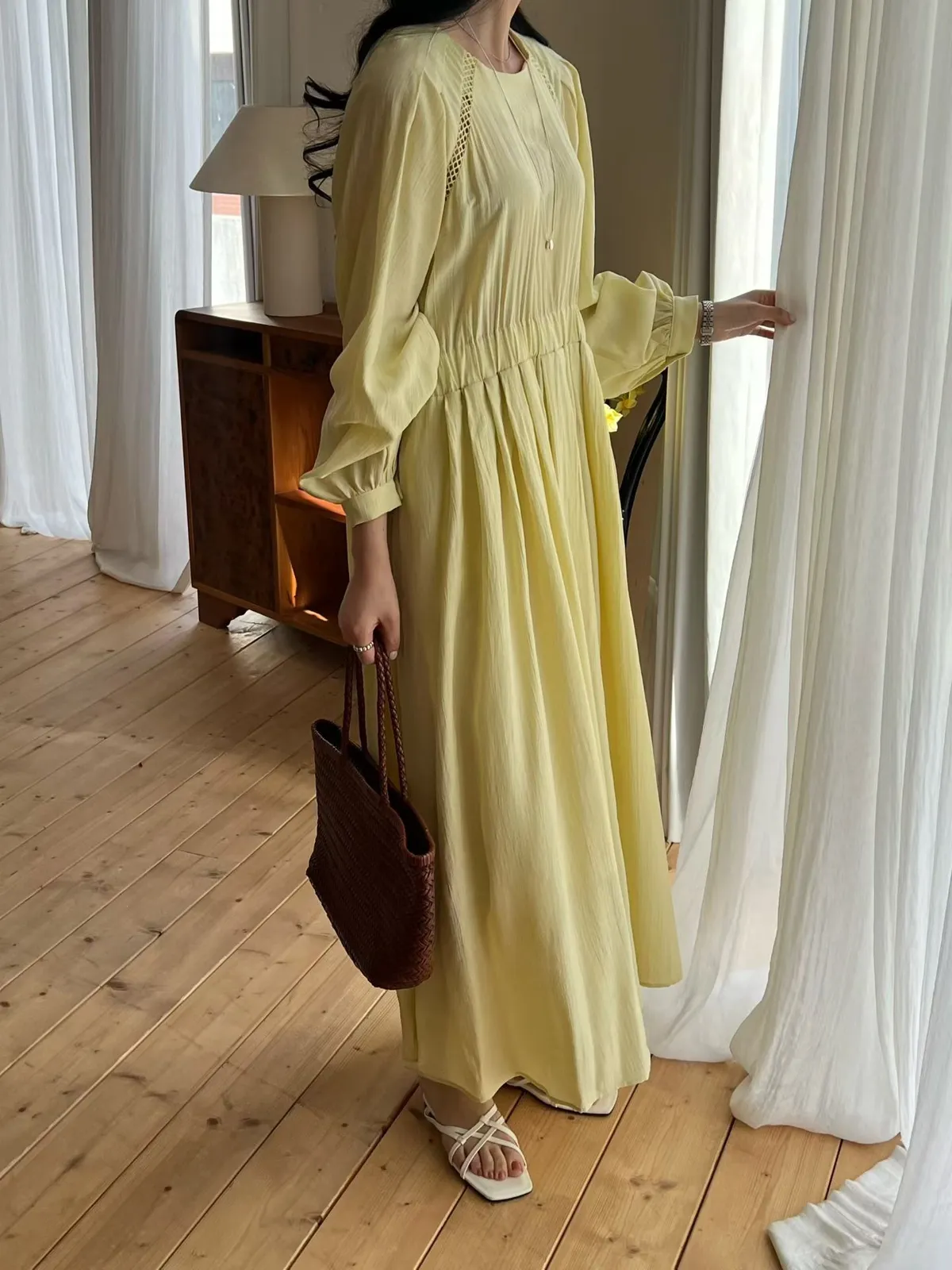A27 0308高檔名媛家縲縈85%簍空設計氣質長袖洋裝3色