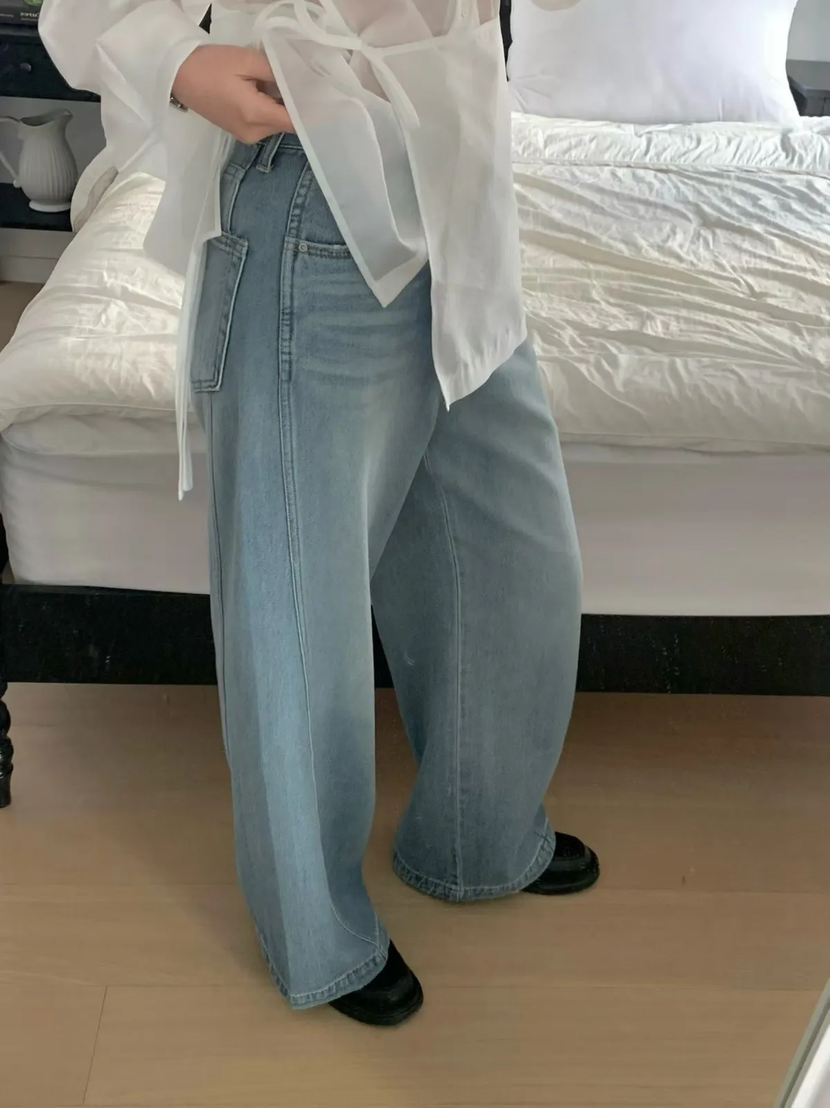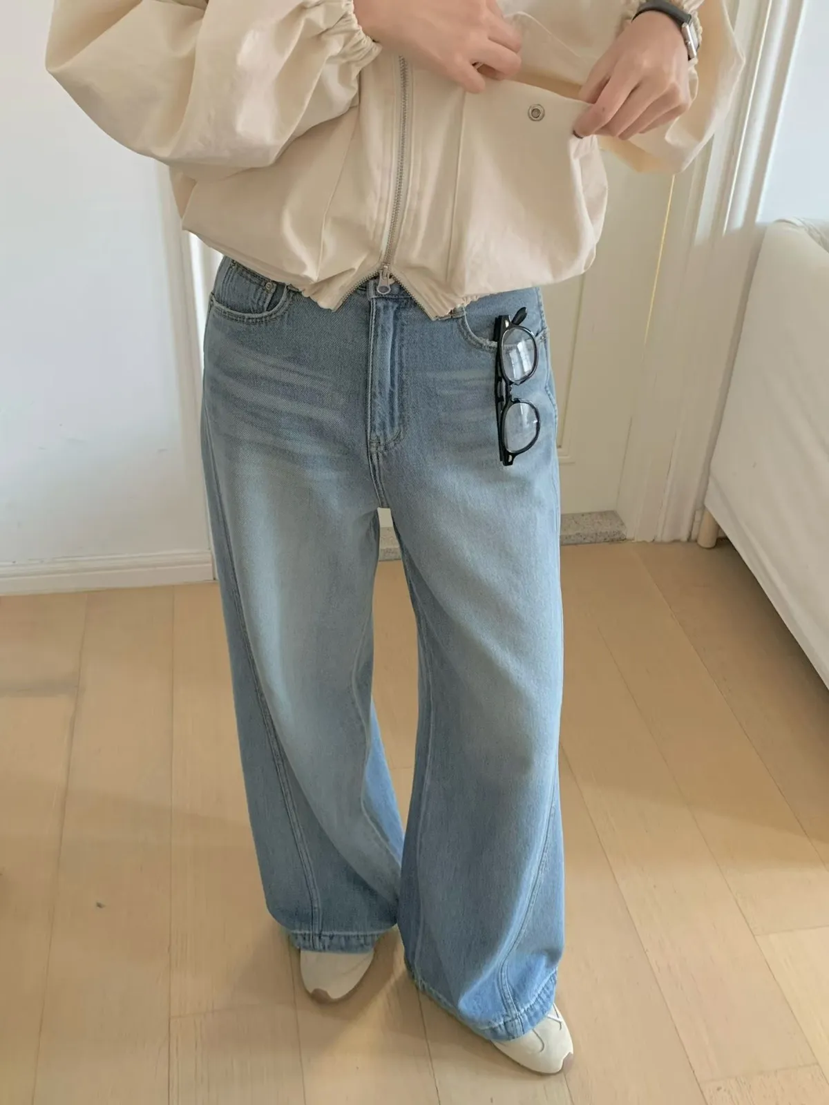 A40 0310美女歐膩家刷色牛仔寬褲2色(S/M)