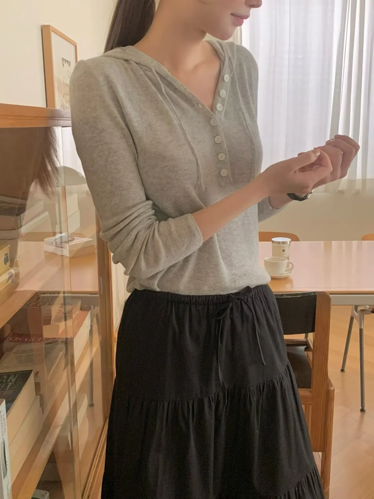 A47 0310美女歐膩家羊毛10%半排釦連帽上衣2色