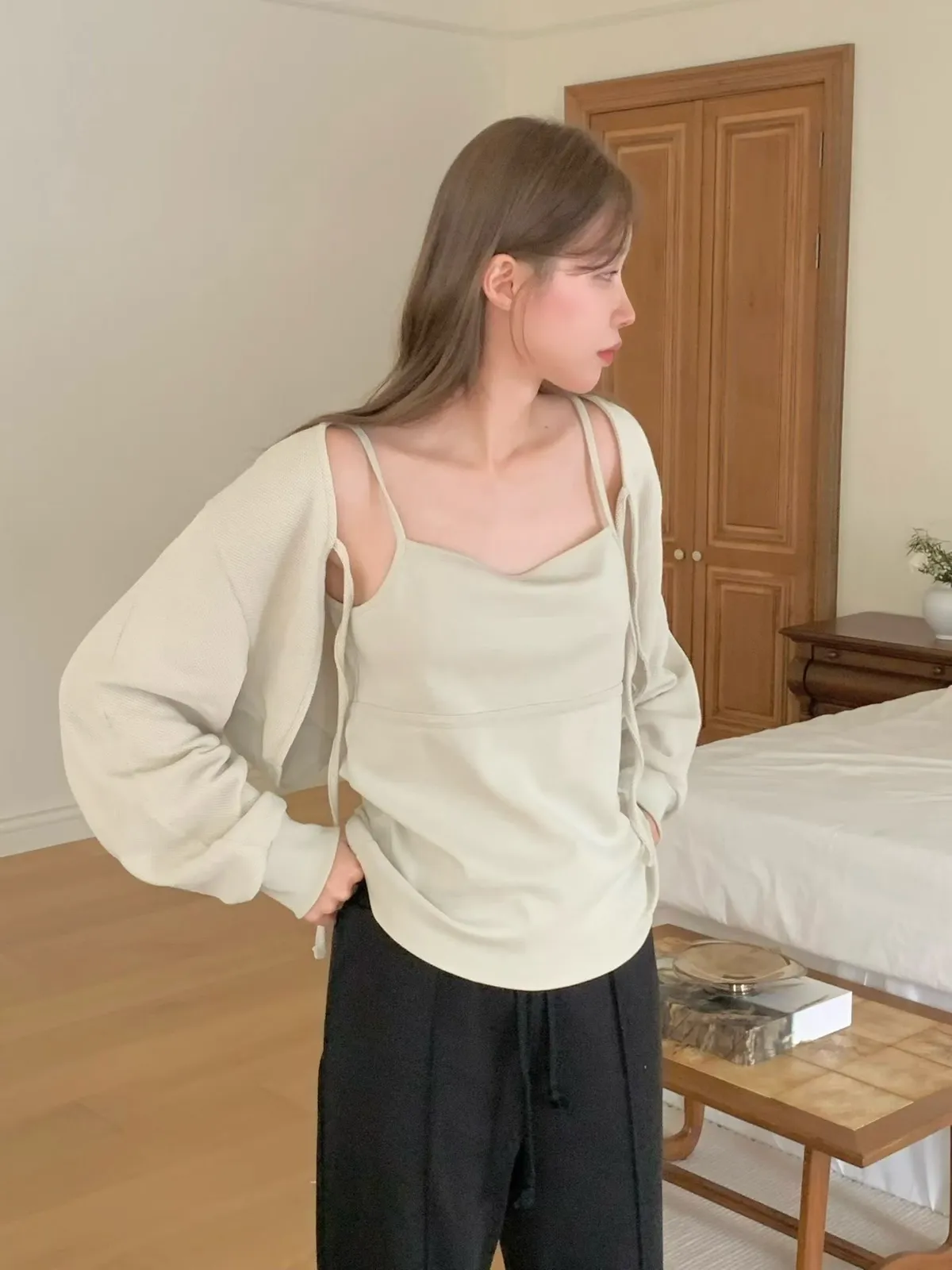 A52 0310美女歐膩家華夫格背心+罩衫(SET)3色