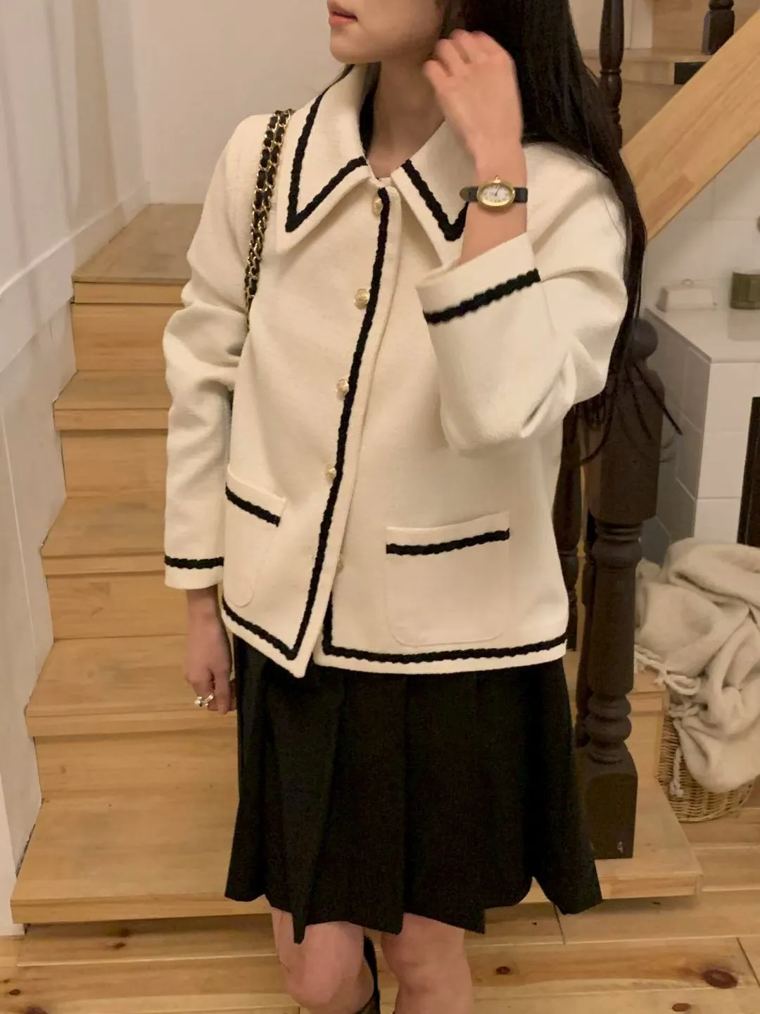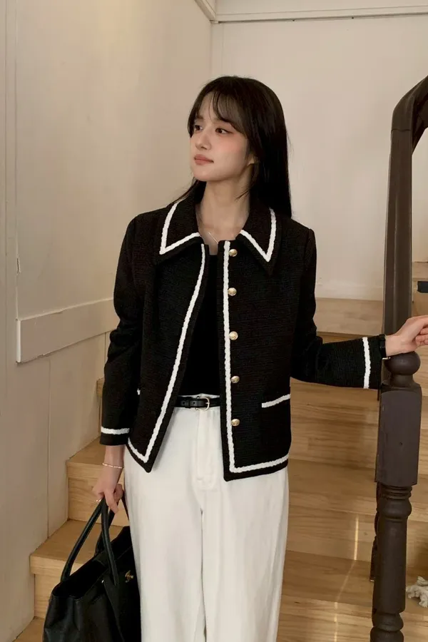 A9 0312高檔小香家撞色滾邊立領小香外套2色