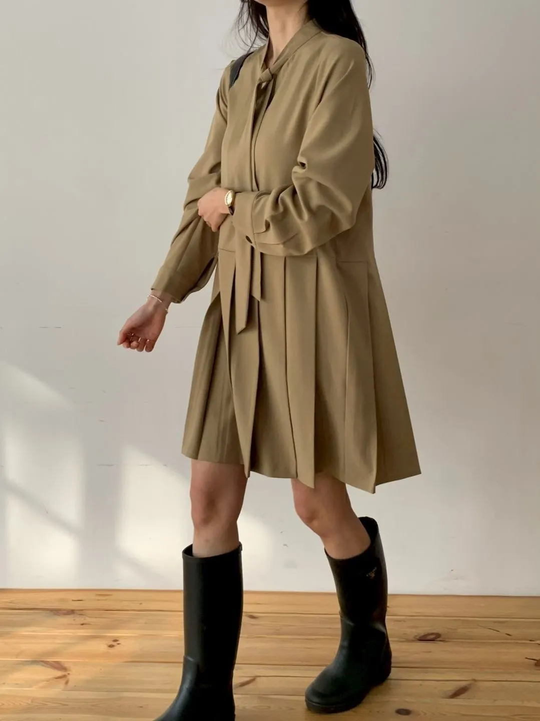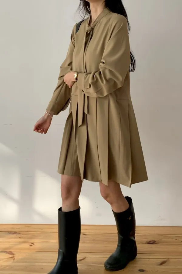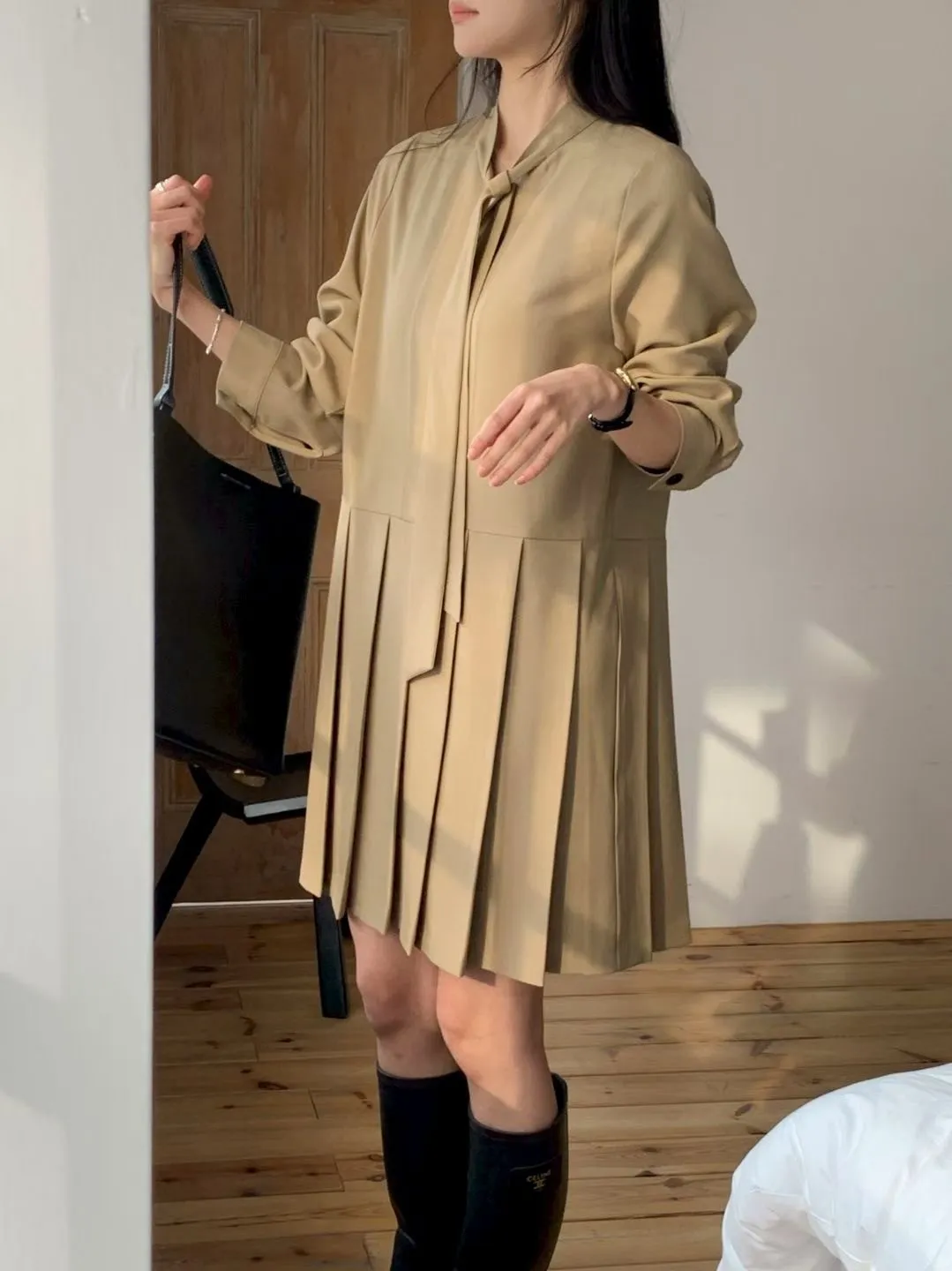 A10 0312高檔小香家綁帶圓領寬百褶裙洋裝3色