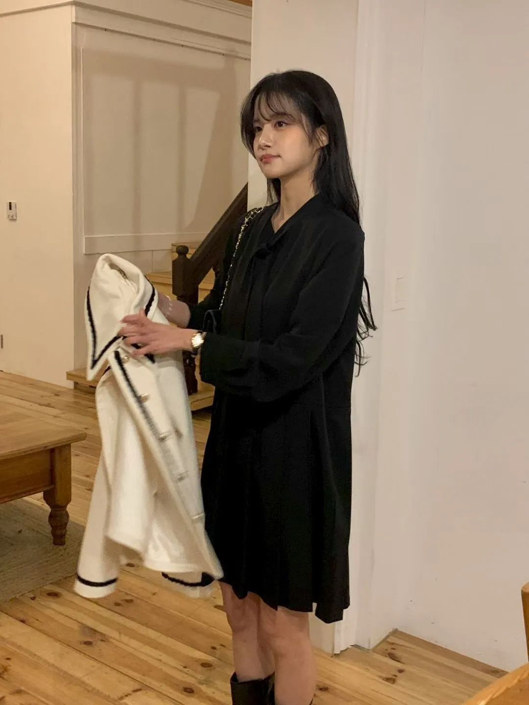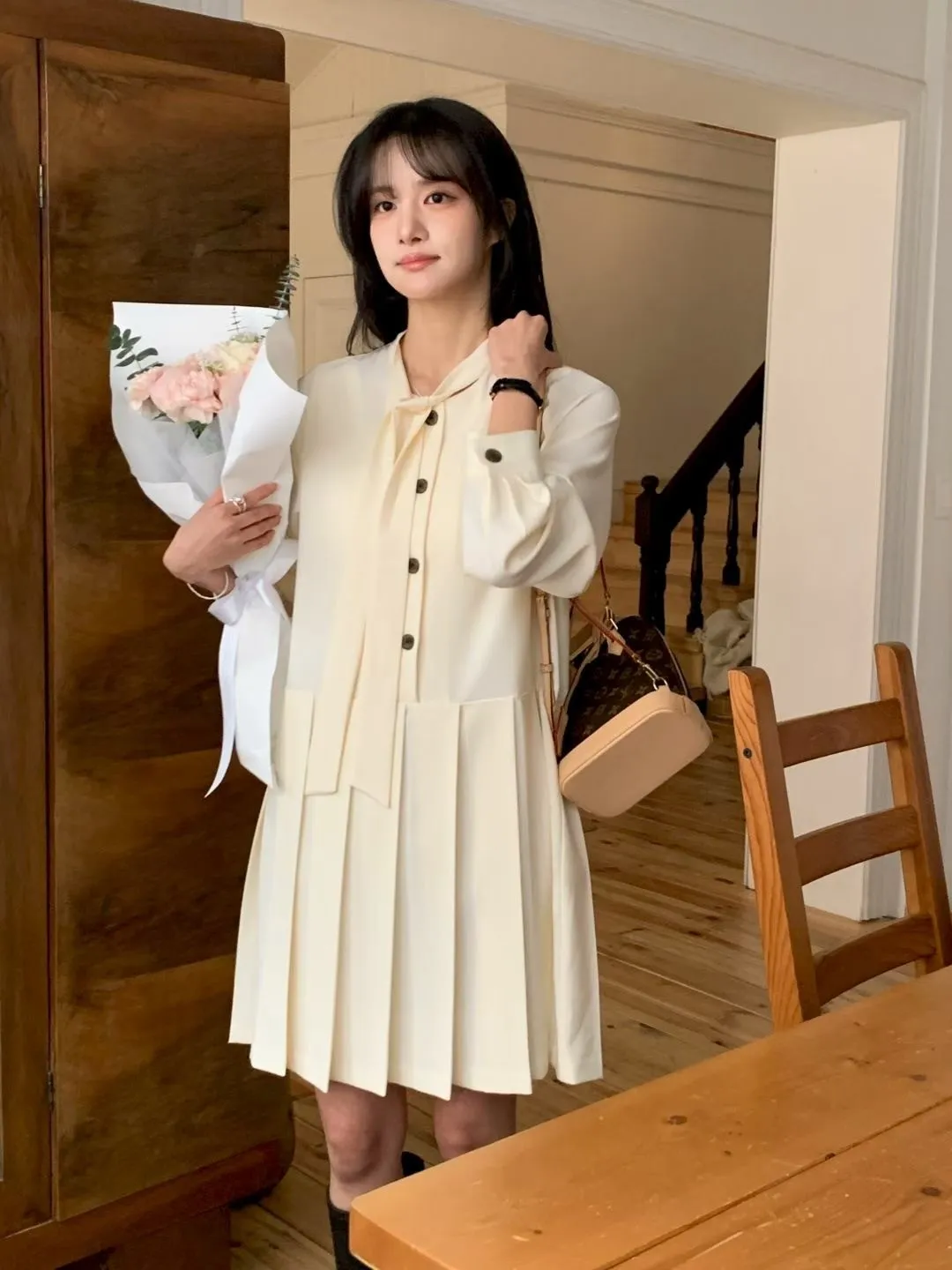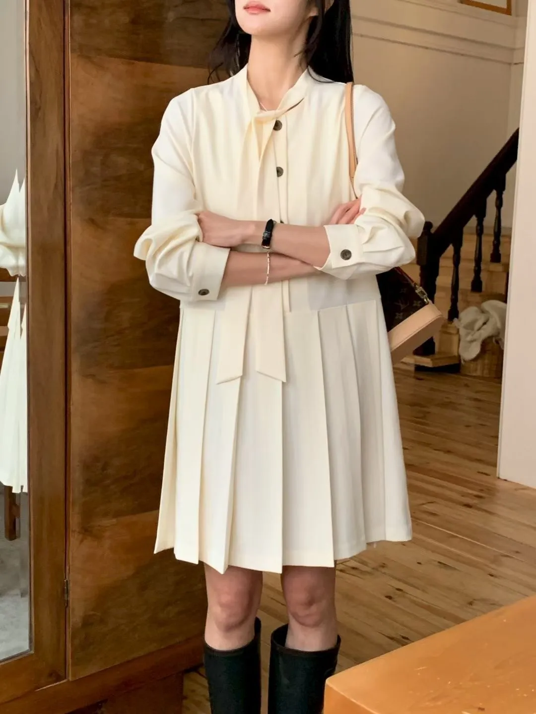A10 0312高檔小香家綁帶圓領寬百褶裙洋裝3色