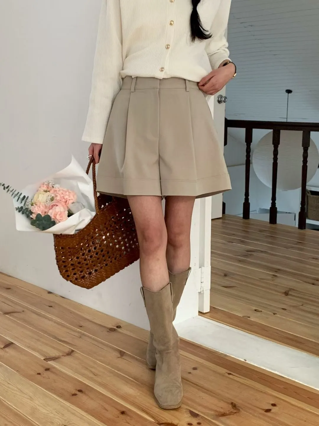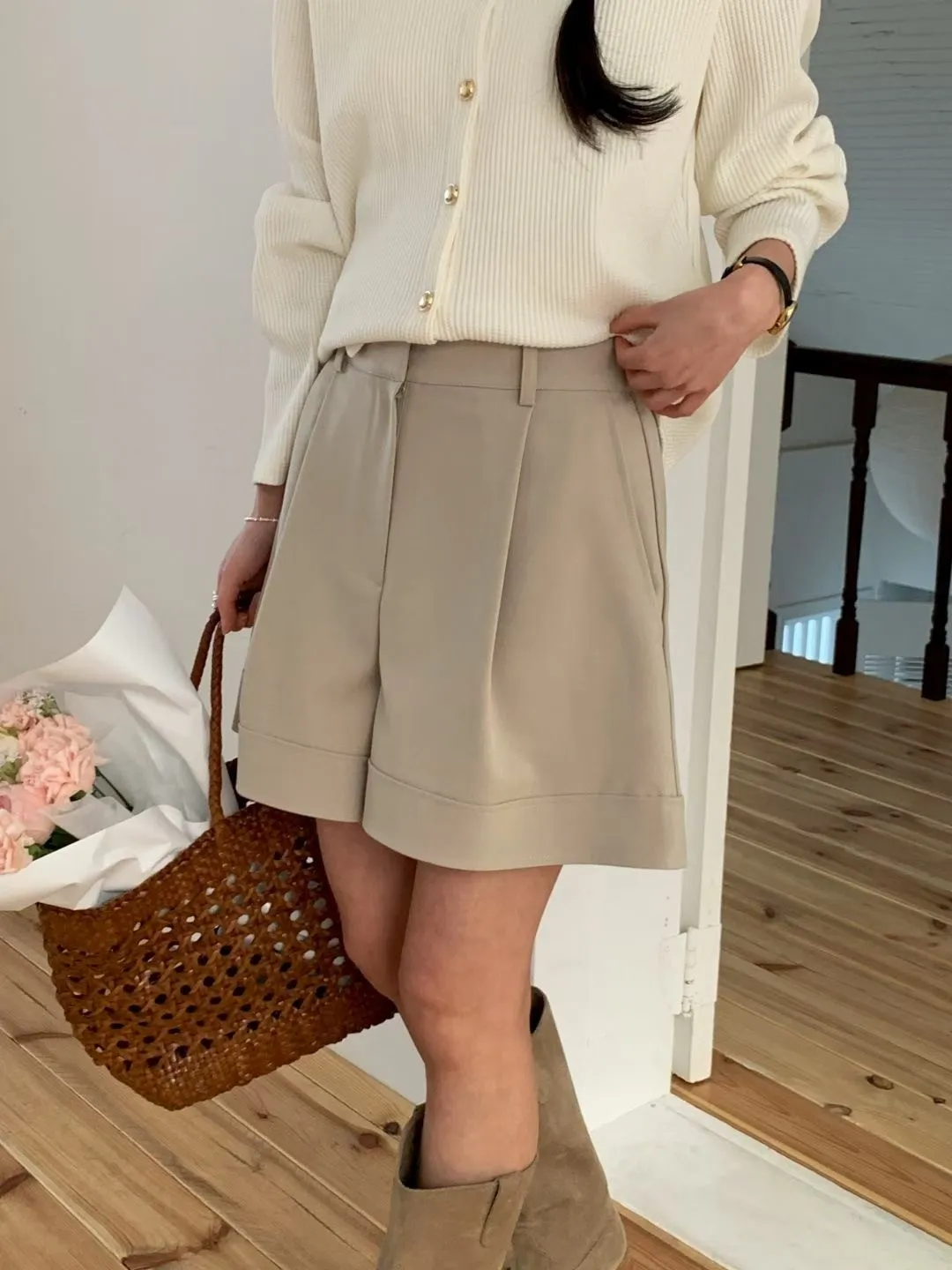 A14 0312高檔小香家立體壓褶A字短褲2色