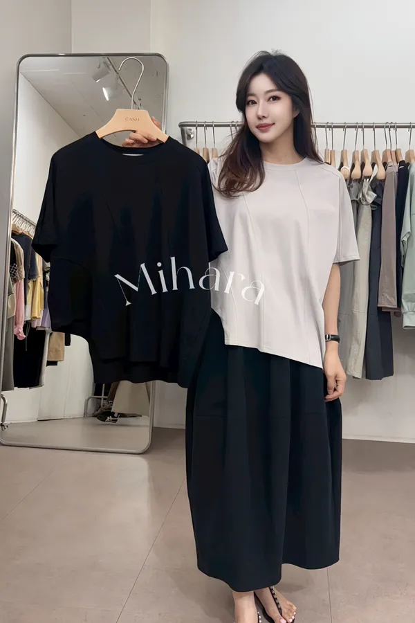 A30 0312錢錢歐膩家不規則下擺圓領上衣2色