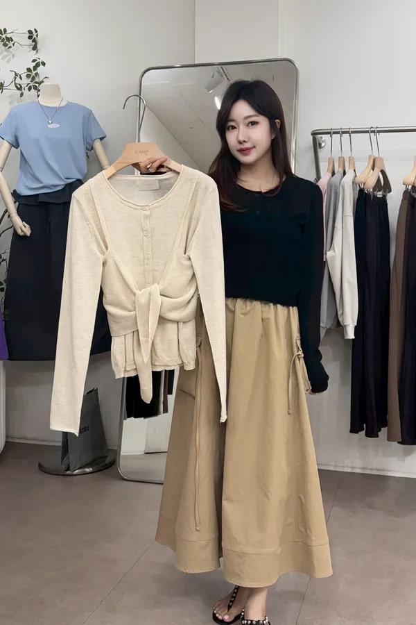 A32 0312錢錢歐膩家綁帶背心上衣(SET)2色