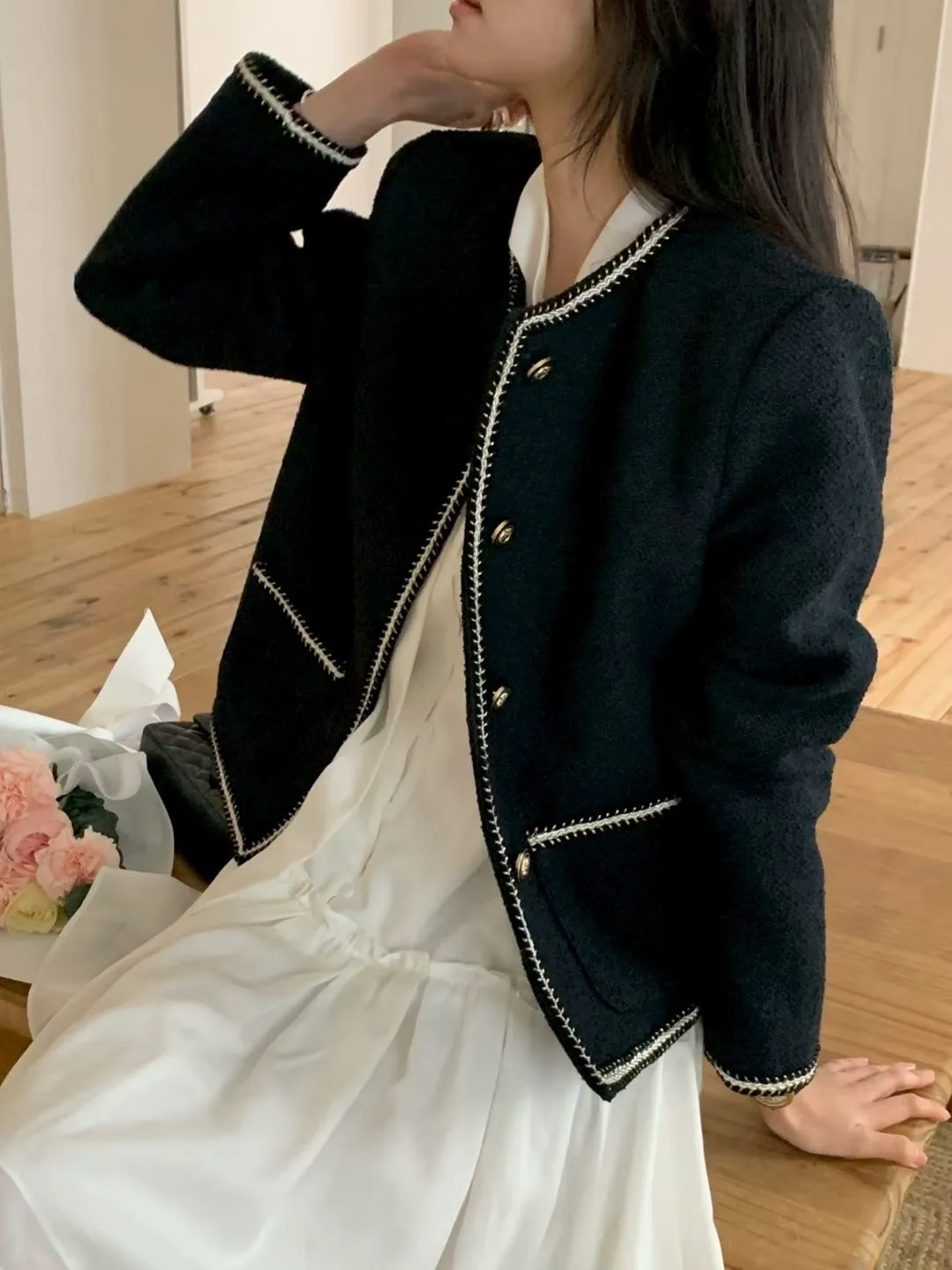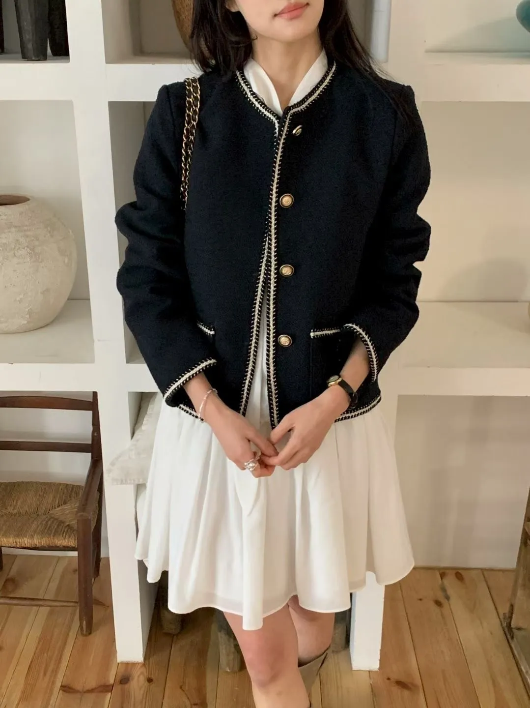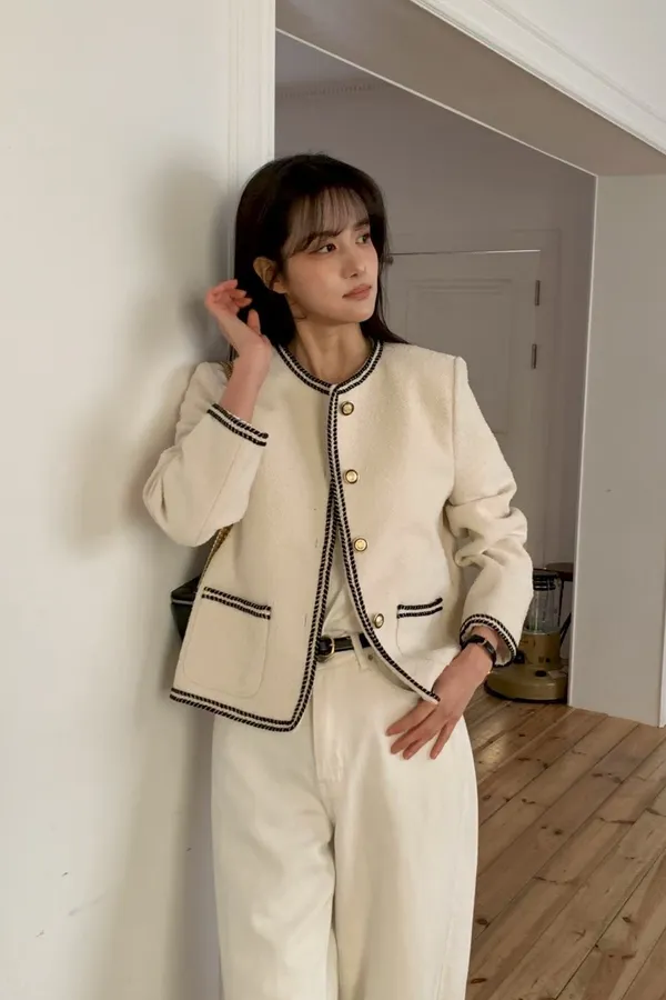 B23小香家高級撞色縫線精緻鈕扣外套