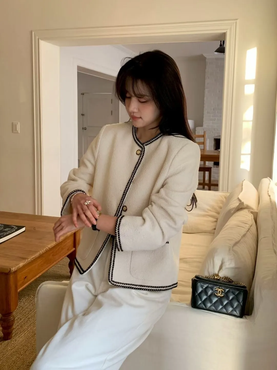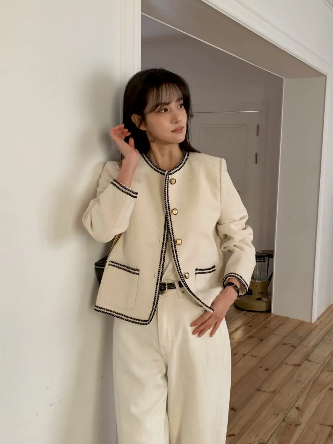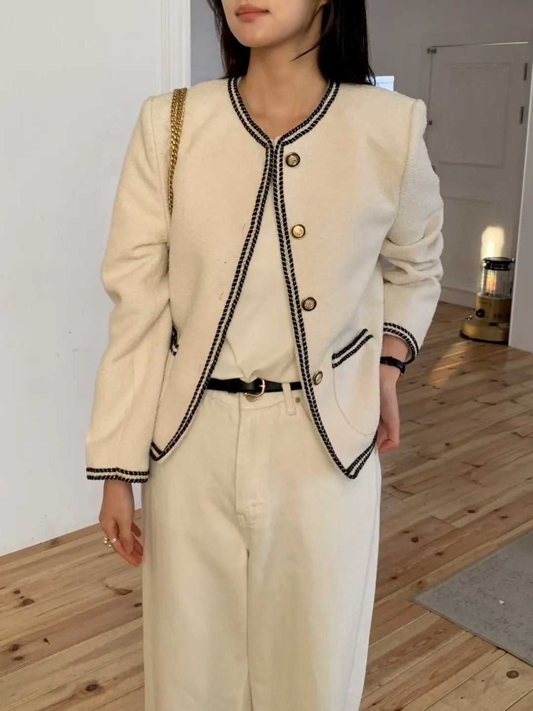 B23小香家高級撞色縫線精緻鈕扣外套