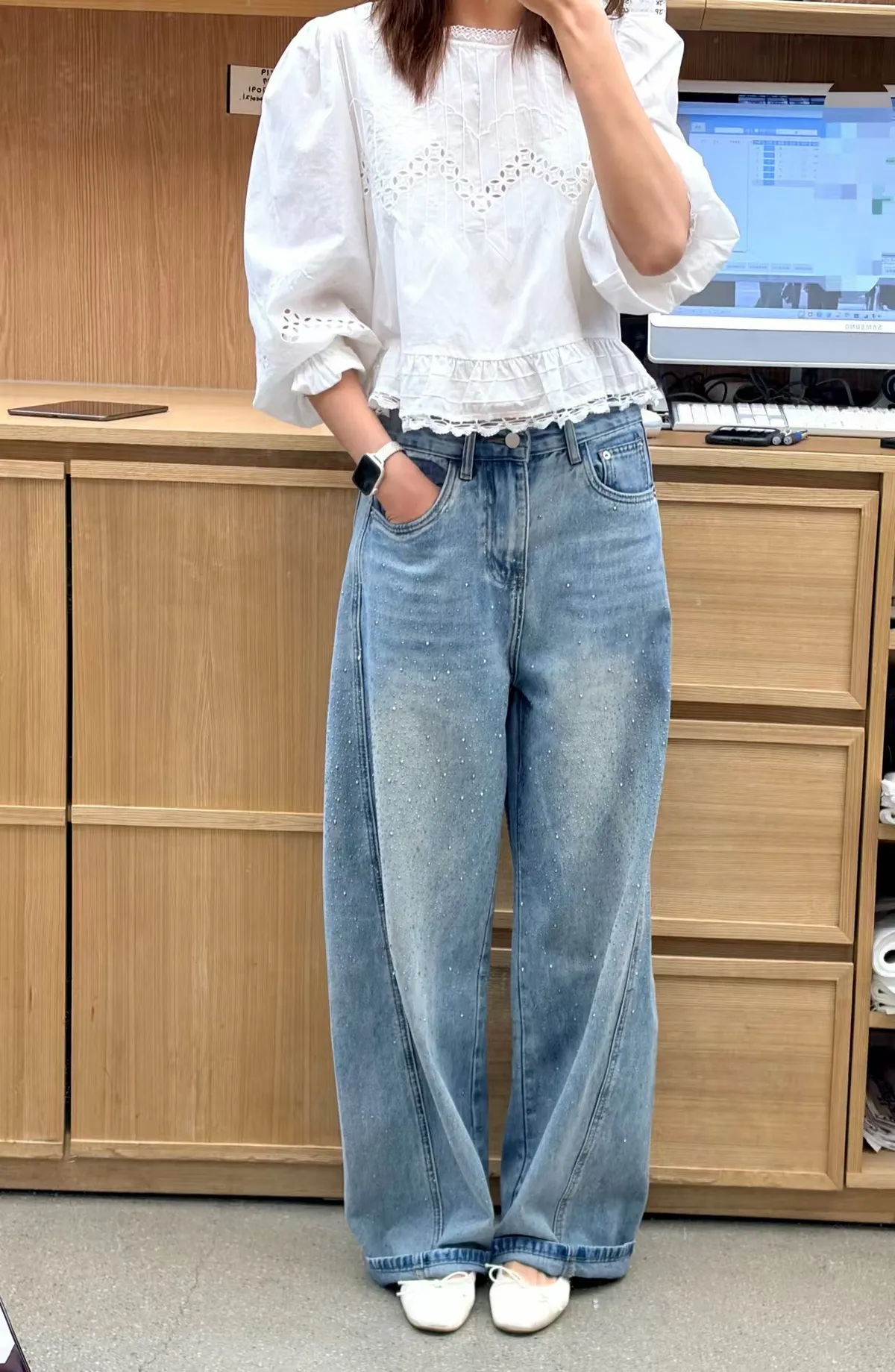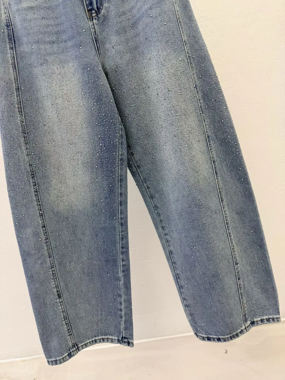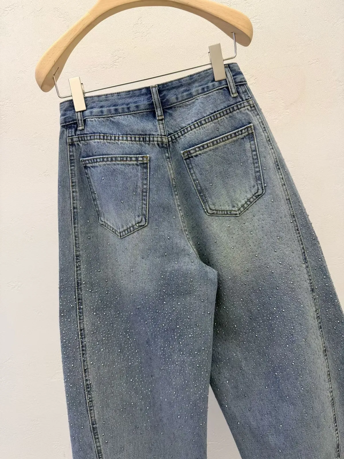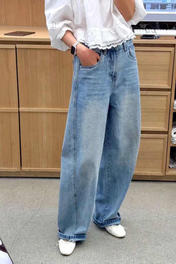 B30(必買)高檔AB閃耀焦點100%純棉輕奢鑽感彎刀牛仔褲(S-XL)