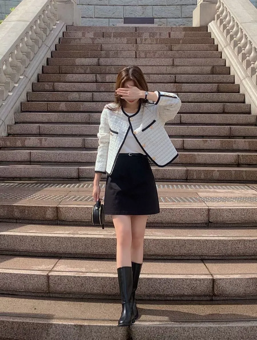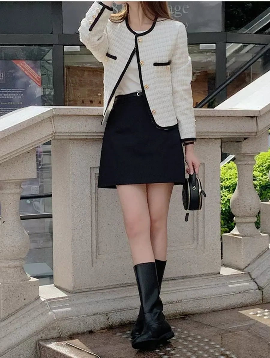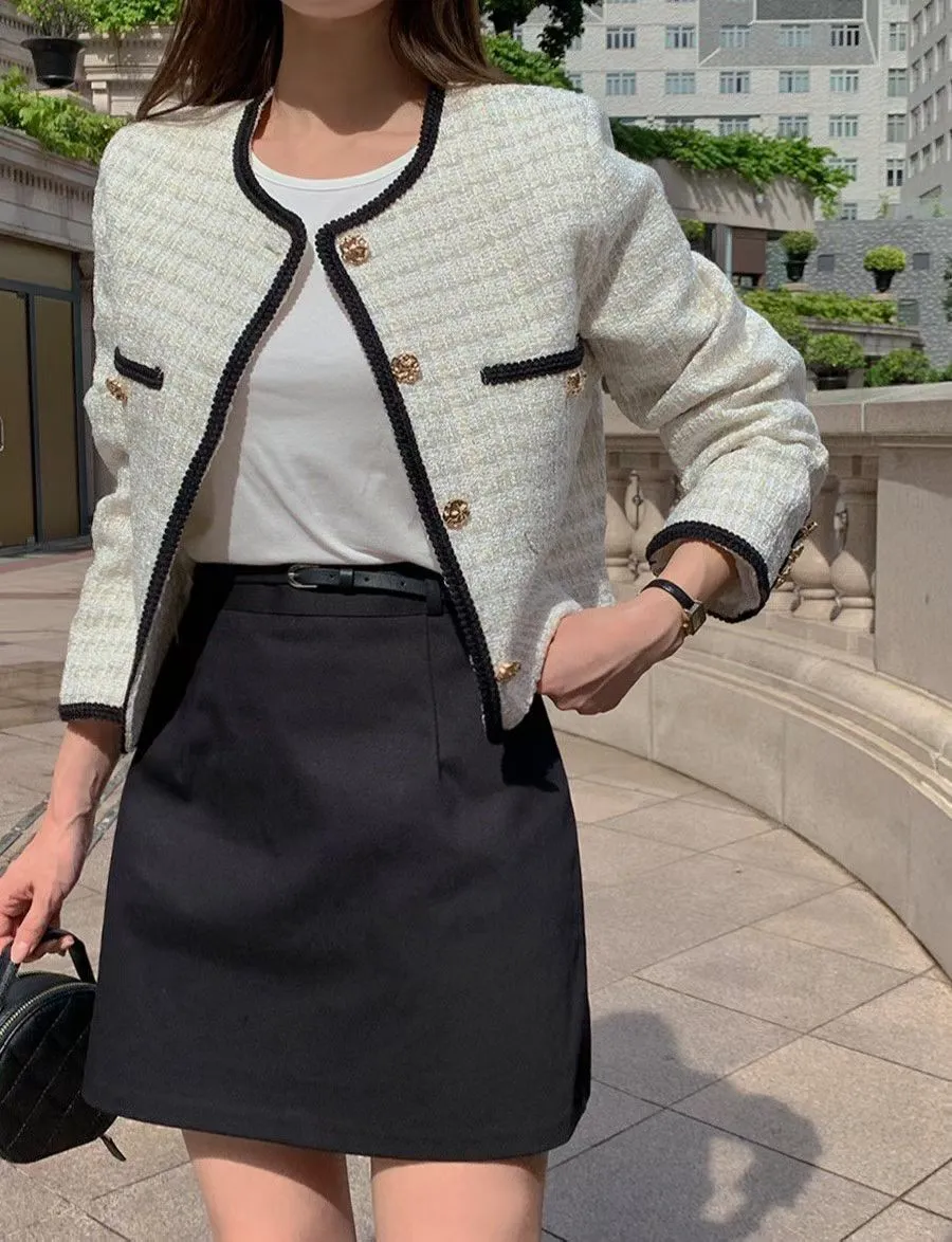 A23 0315撞色滾邊圓領小香外套
