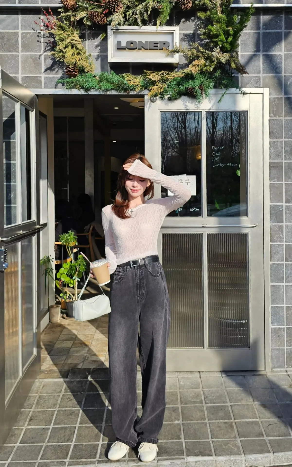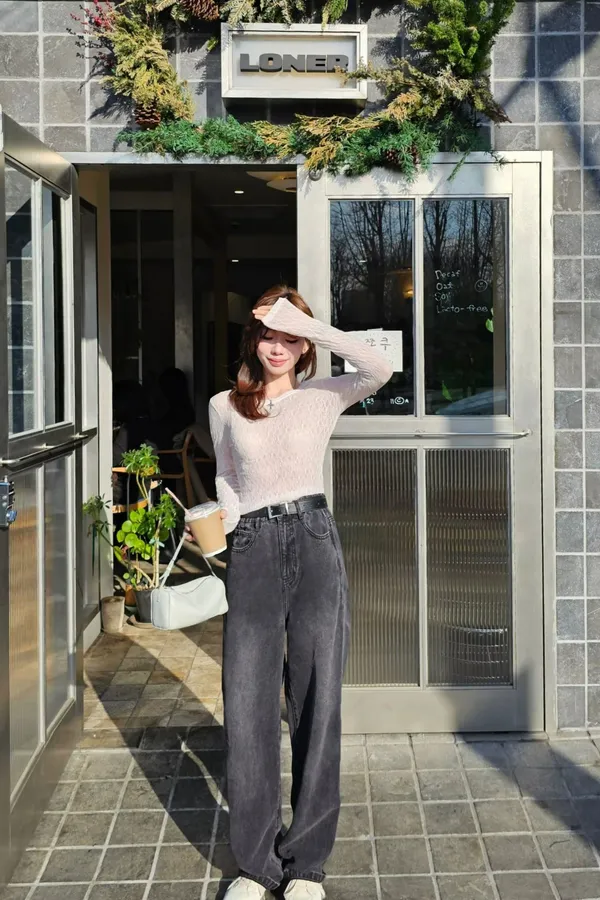 這款尺寸因為做鬆緊腰,所以只有做兩個尺寸,如果想穿照片上歐尼那樣鬆弛感,XS~小M身材選擇S,M~L身材選擇M。歐尼的正常腰圍約22吋,S對她而言有點大,單穿掛在中低腰,也可以加腰帶穿高一點