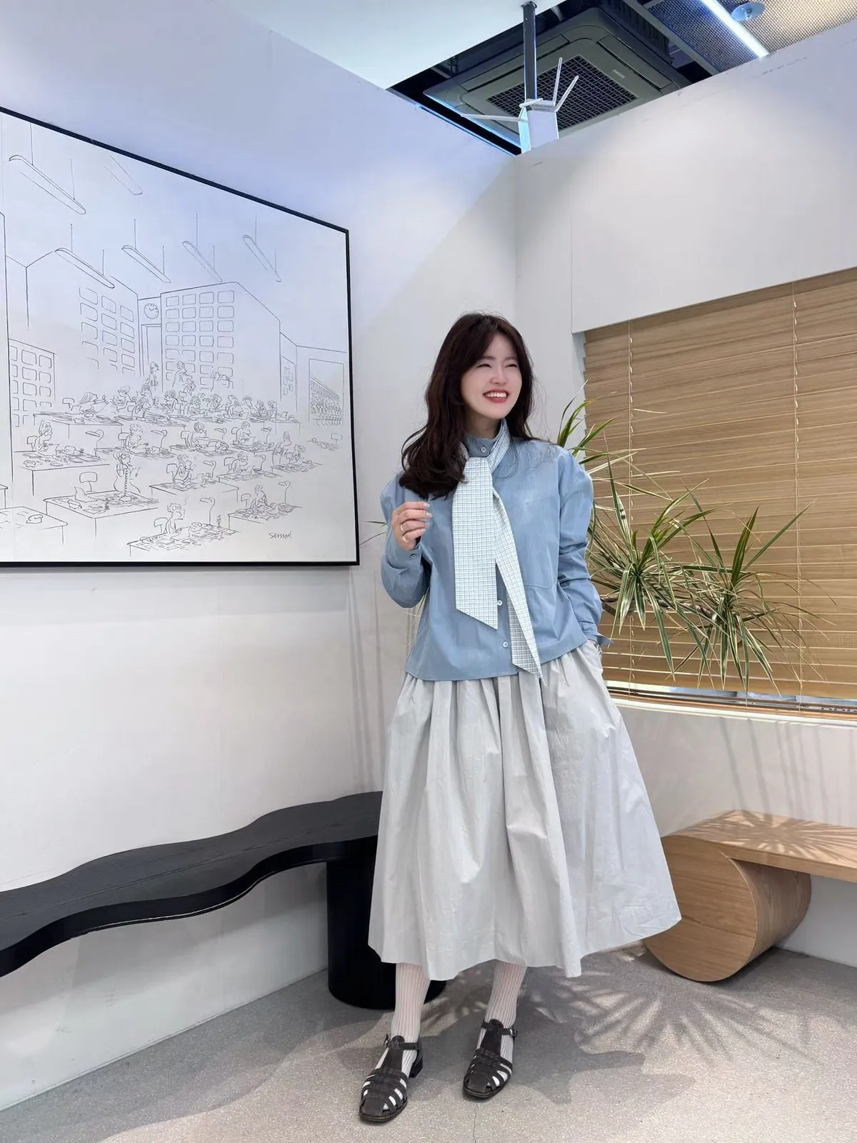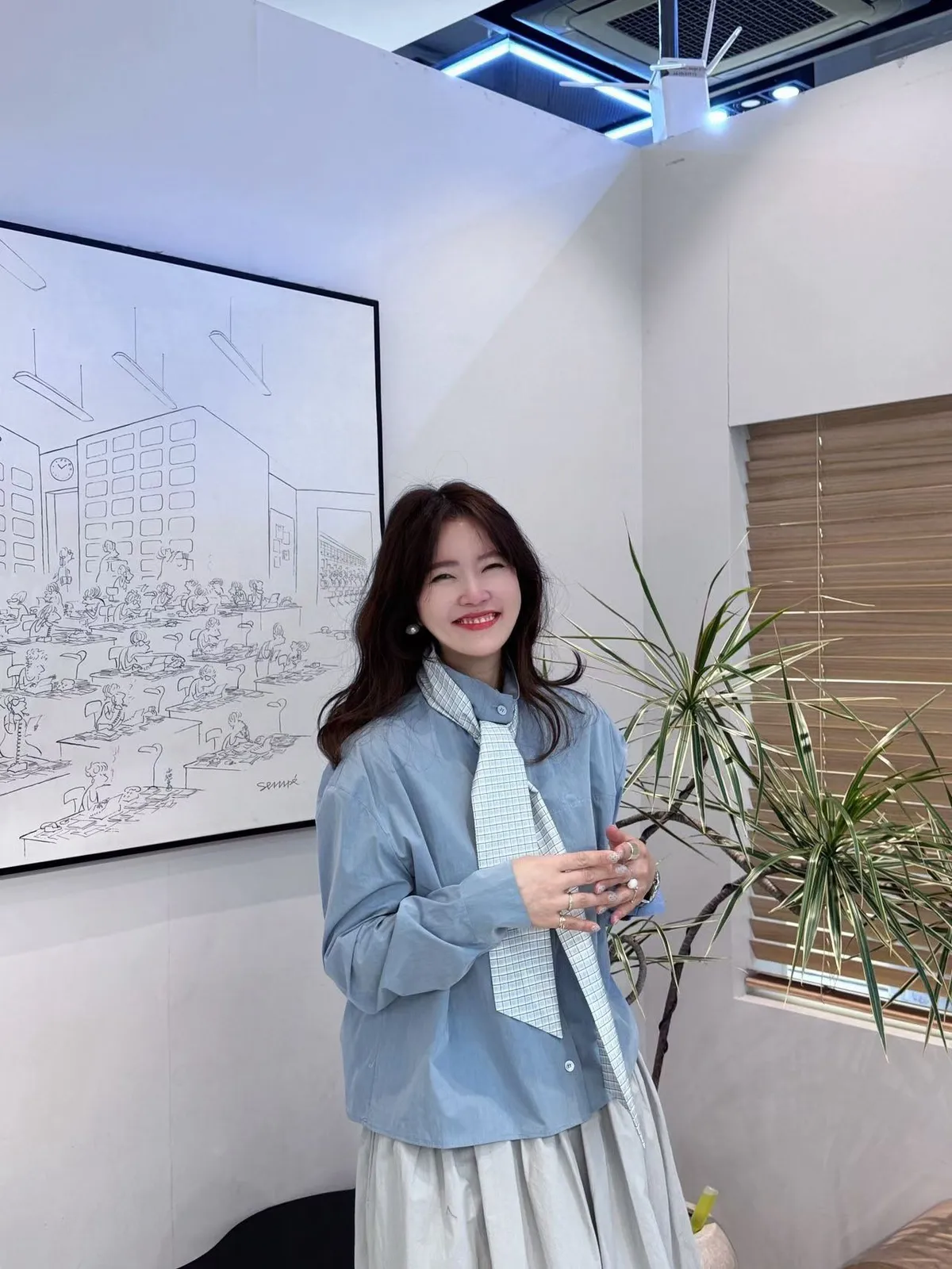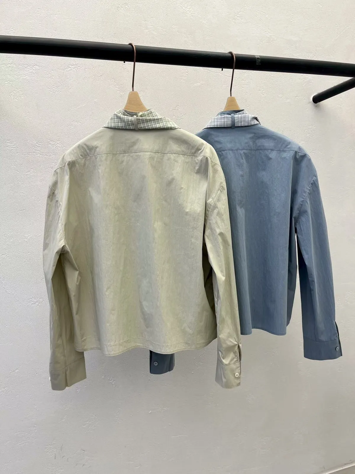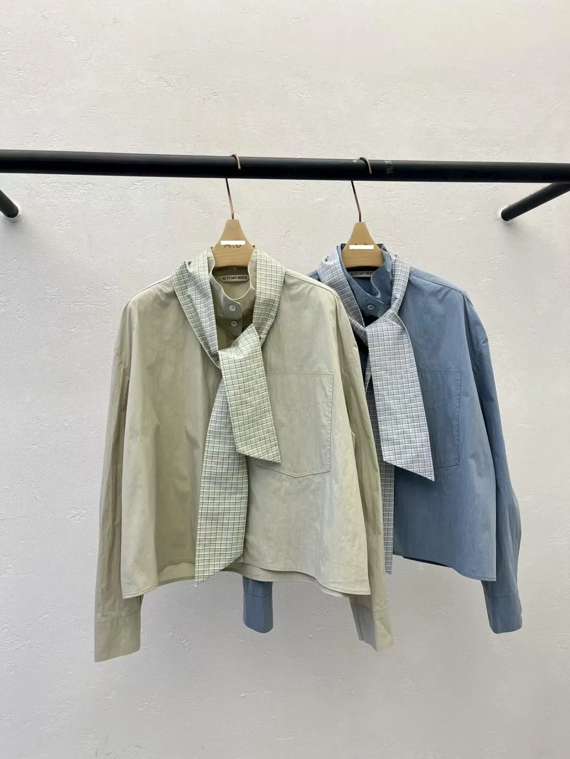 B56高檔AB 格紋領帶簡約寬鬆排釦長袖上衣