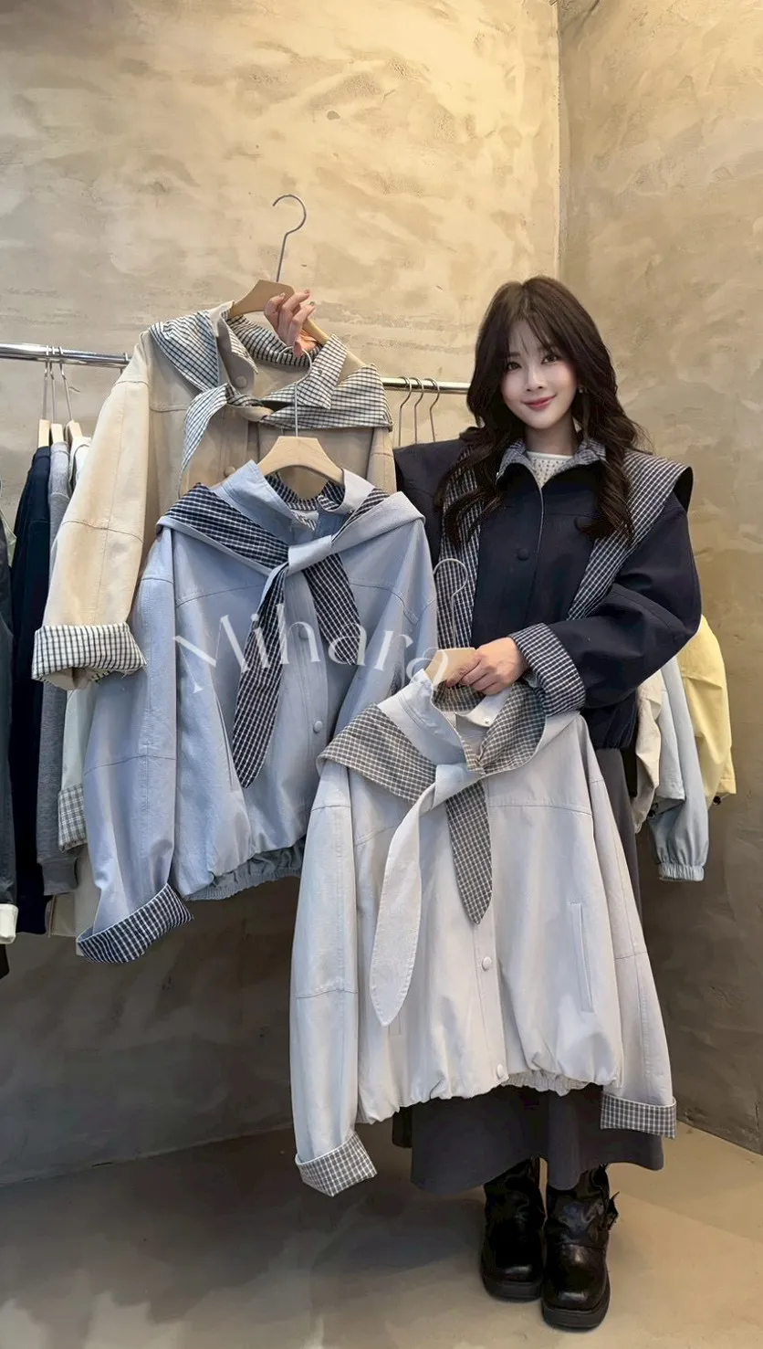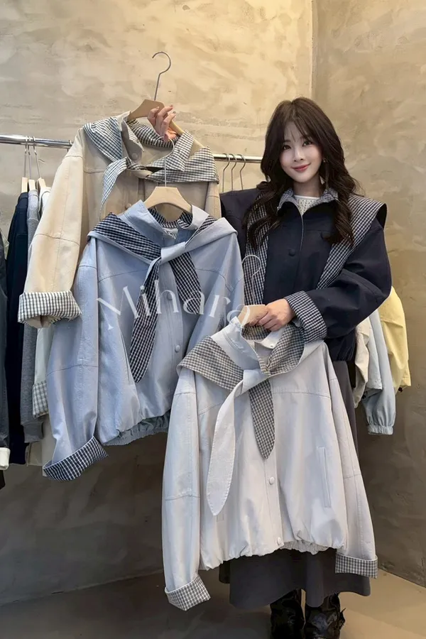 A37 0316高檔W外套家內格紋披肩帽外套4色