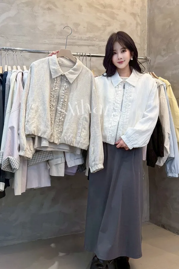 A41 0316高檔W外套家荷葉翻領外套2色