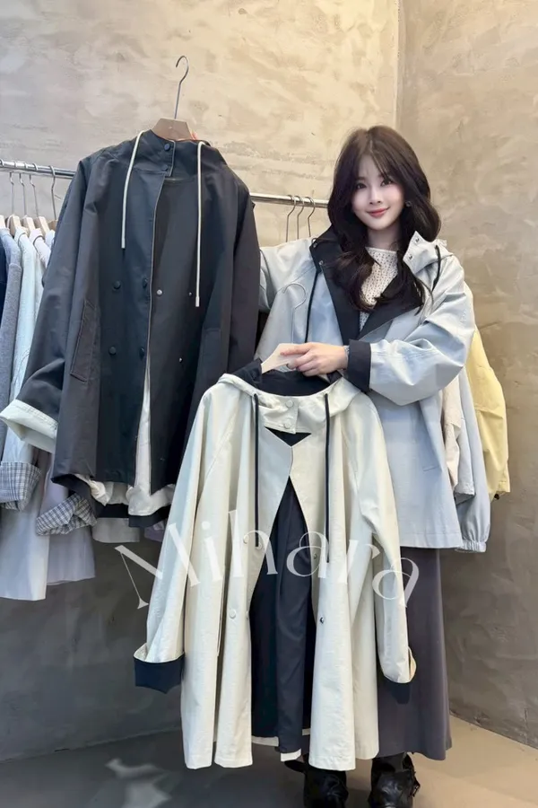 A42 0316高檔W外套家撞色連帽中長版外套3色