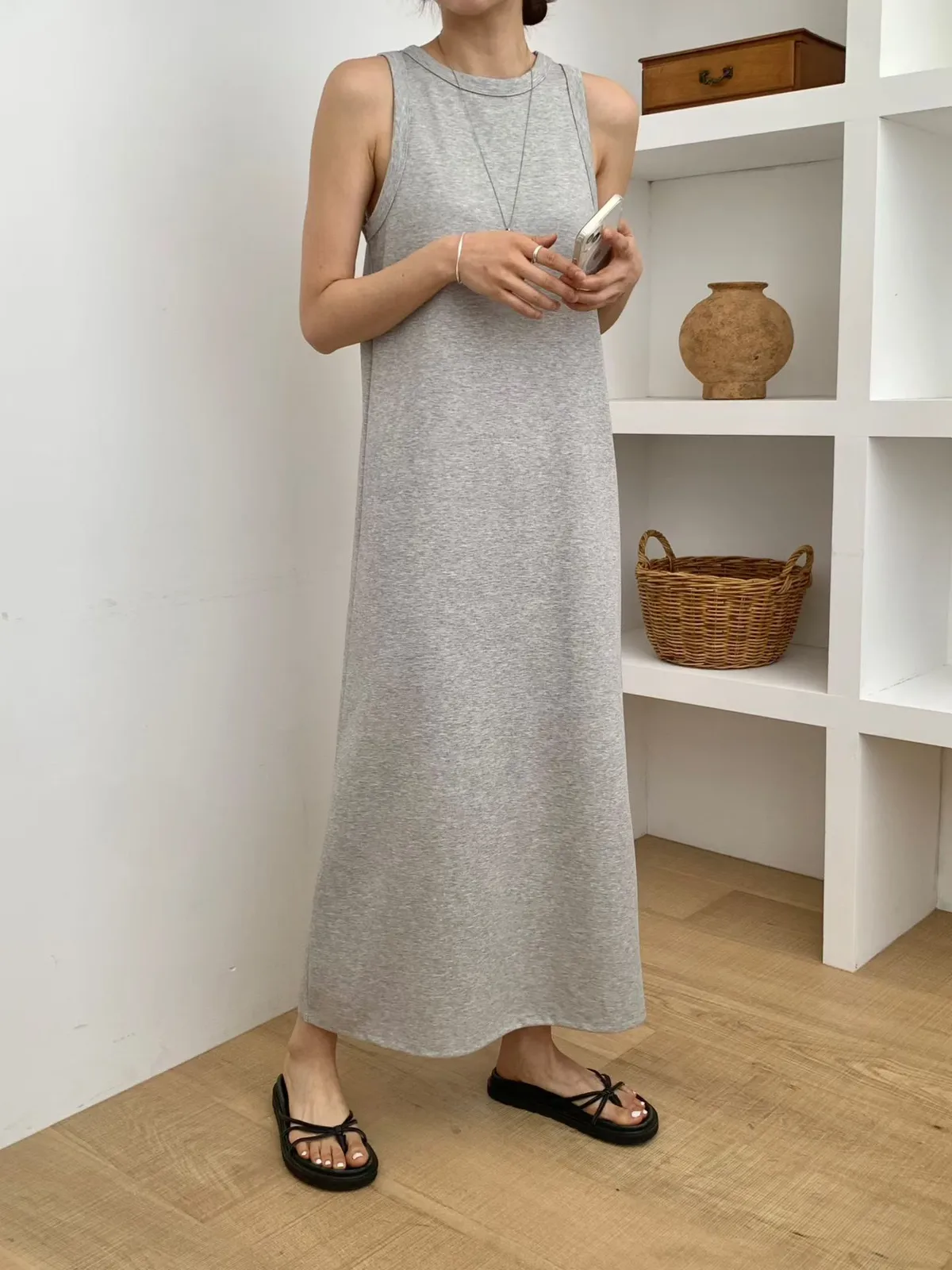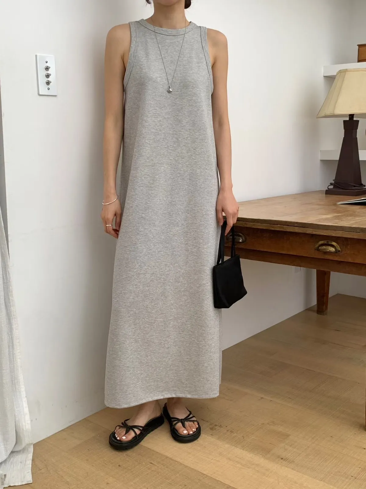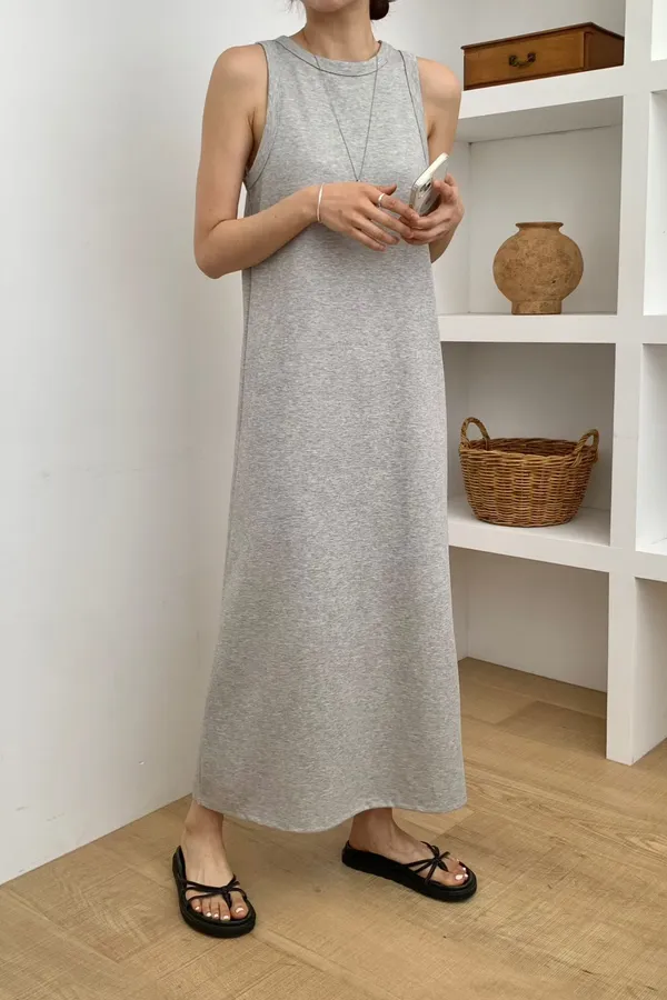 A64 0316CP日常家寬肩帶圓領背心洋裝2色