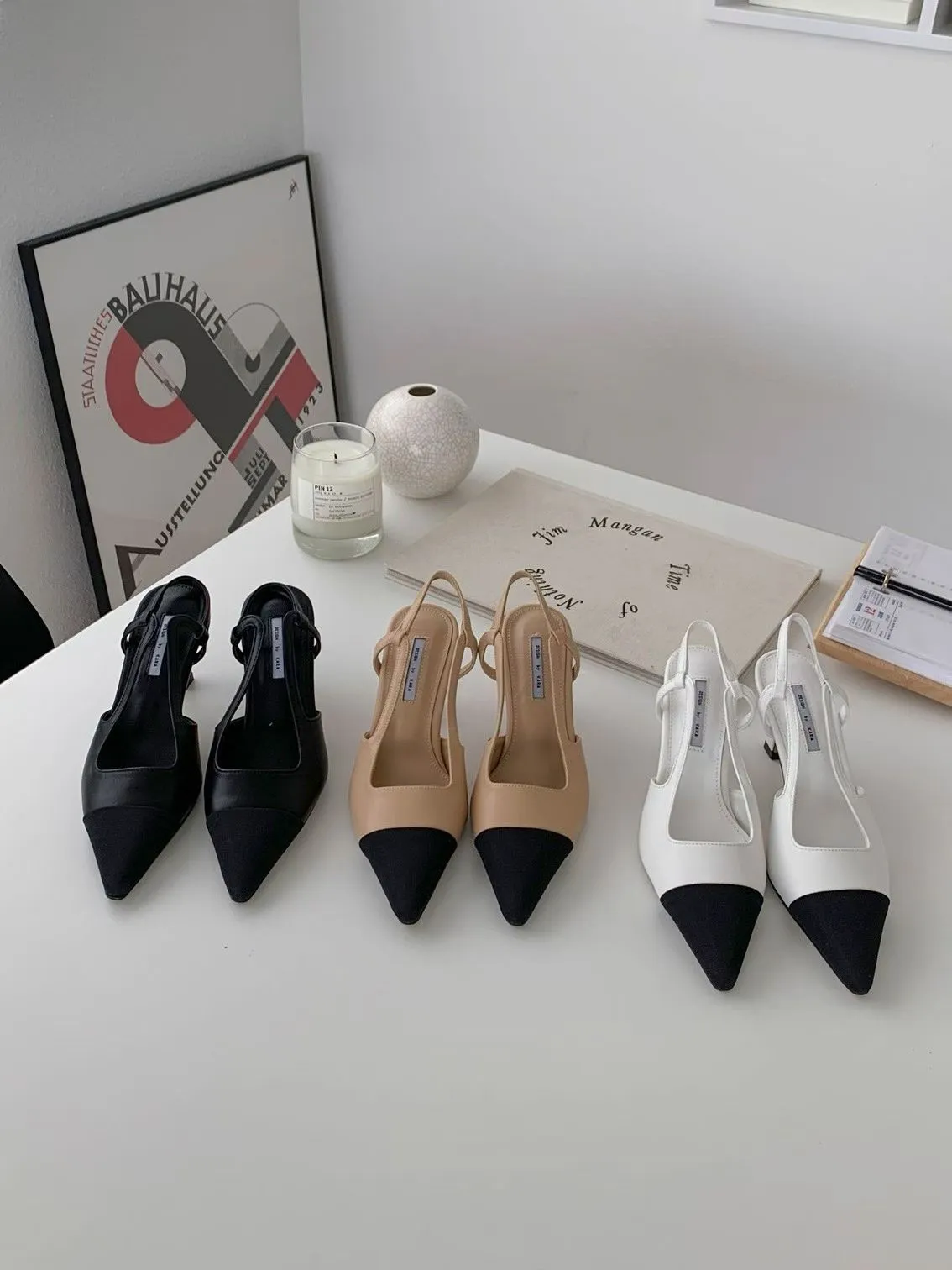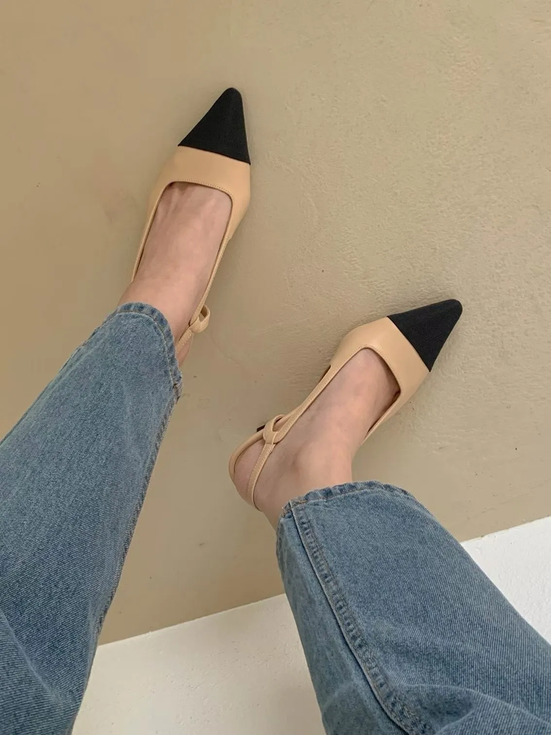 B78尖頭拼接小香中跟鞋(230-250)