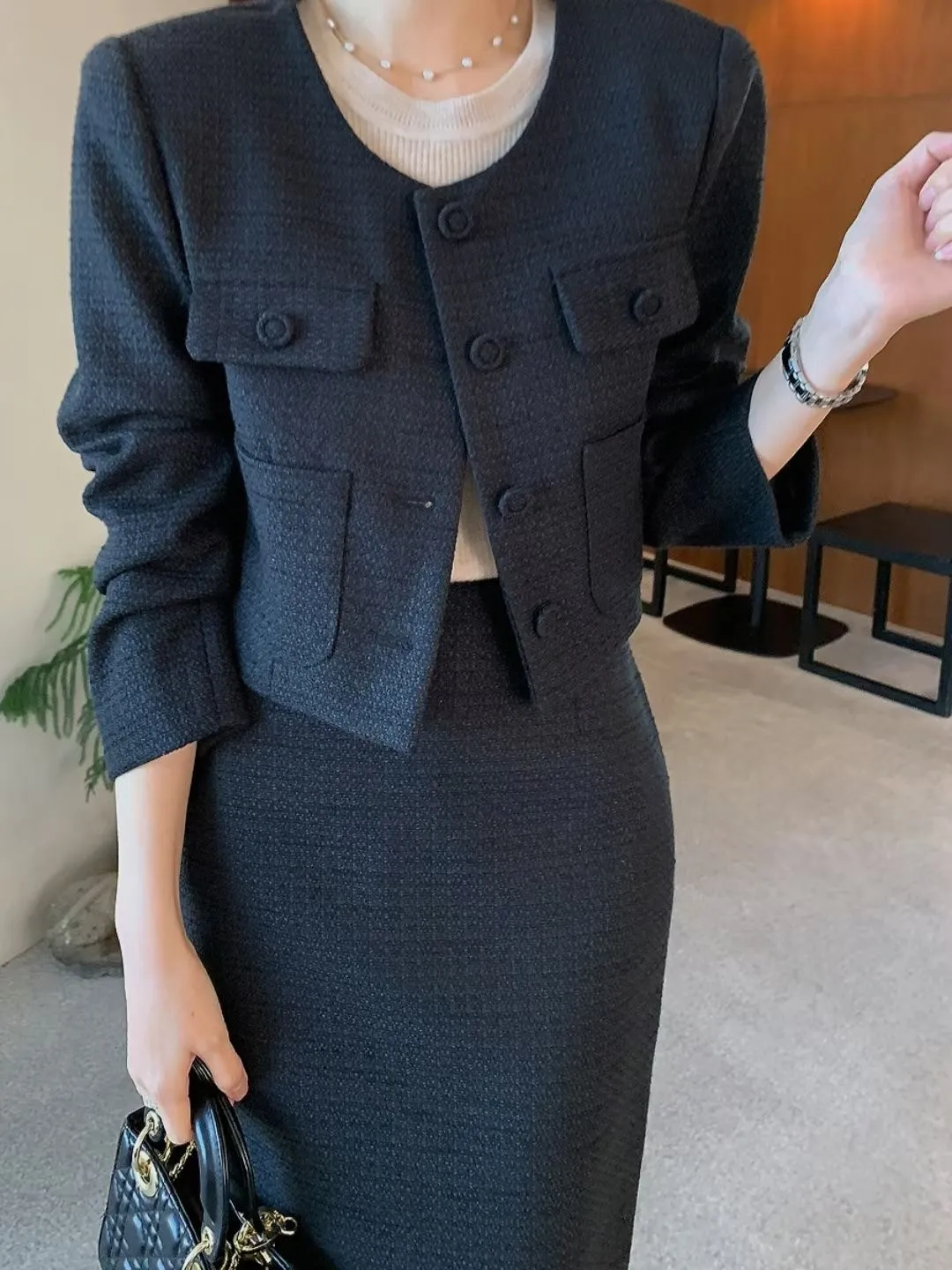 A29 0318薄款小香口袋外套