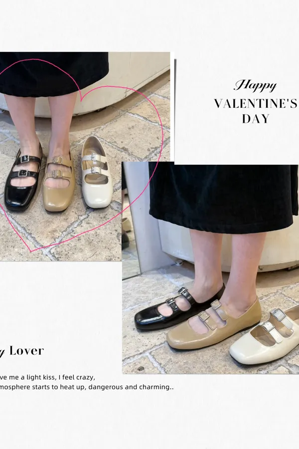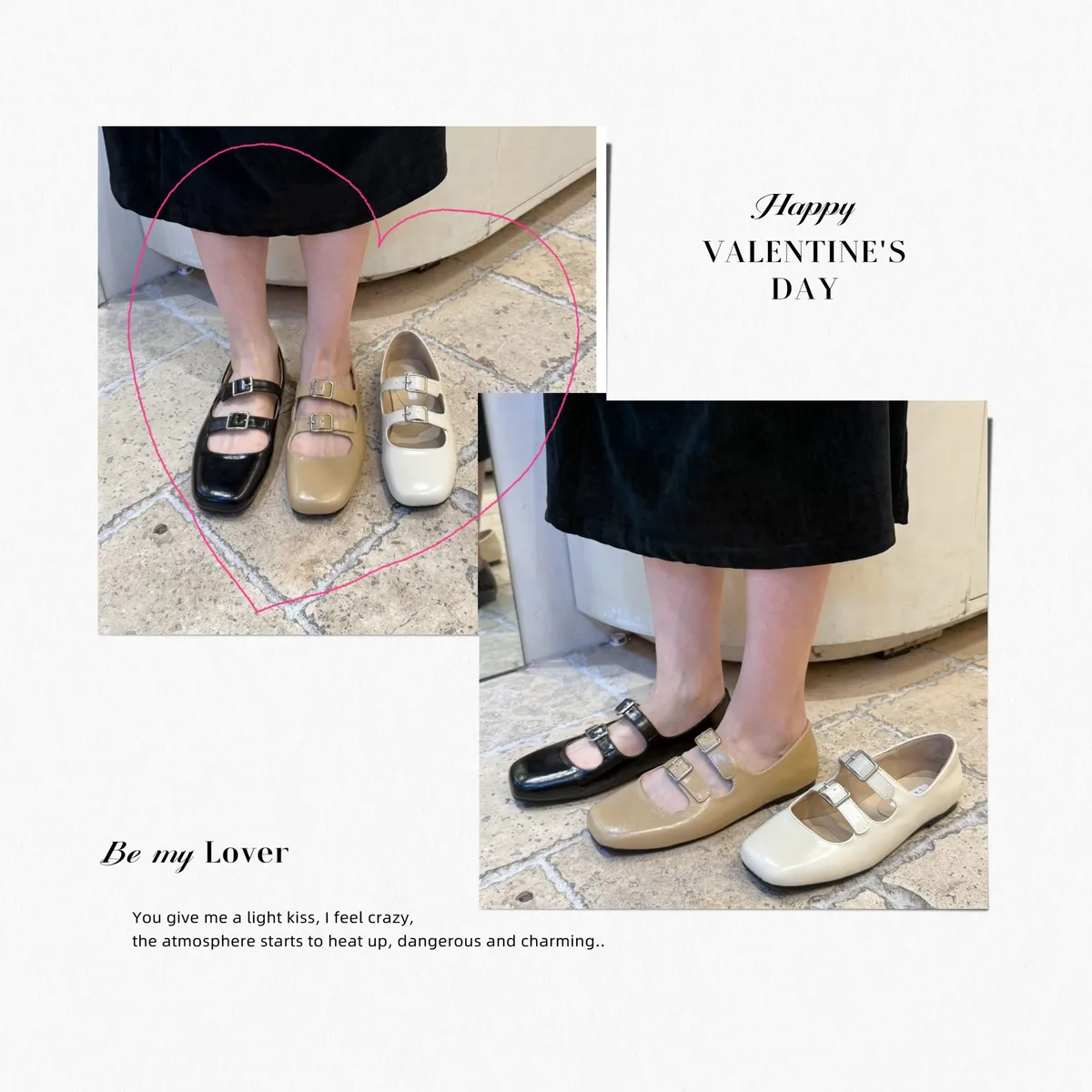 A8 0318設計感寬帶扣環平底鞋(230-250)