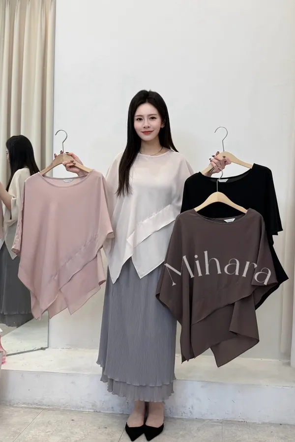 A8 0319好穿家交疊圓領雪紡上衣4色