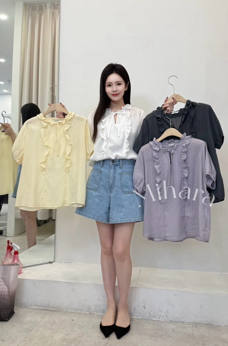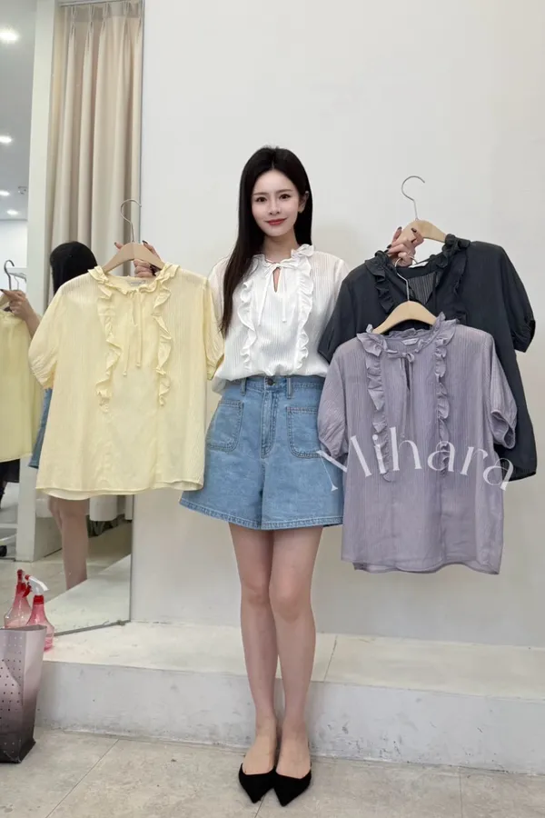 A11 0319好穿家荷葉邊綁帶小V領天絲上衣4色